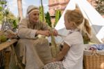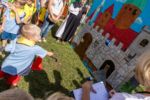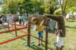 Dla najmłodszych był też historyczny plac z zabaw z średniowieczną karuzelą, polem walki na miecze, stanowiskiem strzeleckim, rzutem włócznią do niedźwiedzia, makietą zamku do burzenia oraz drugim zamkiem do ćwiczenia celności rzutów. Była też mini katapulta.