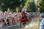 Na VIII Średniowieczny Jarmarku Cysterskim w Przemęcie (8.09) nie zabrakło oczywiście pokazów konnych. Tym razem obok akrobacji jeźdźcy z Grupy Apolinarski, zaprezentowali swoje umiejętności fechtunkowe i to w pełnym galopie. Ciarki przechodziły!