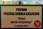 W dniu 8 czerwca 2019 r. na boisku sportowym w Kaszczorze odbył się festyn rodzinny „Dzień sportu wiejskiego”. Podczas imprezy wszystkim uczestnikom zapewniono moc atrakcji. Na początku został rozegrany turniej piłki nożnej Żaka i Skrzata. Następnie odbył się konkurs rzutów karnych dla wszystkich dzieci. O godzinie 15:00 został przeprowadzony turniej rodzinno-zakładowy. Atrakcjami imprezy były również pokazy judo, karate, surfingu, fitnessu, jazdy konnej oraz strzelectwa. Zwieńczeniem festynu rodzinnego była zabawa taneczna. Organizatorem wydarzenia był Uczniowski Klub Sportowy „Sokół” Kaszczor.