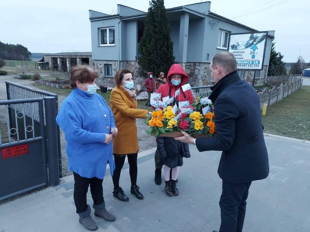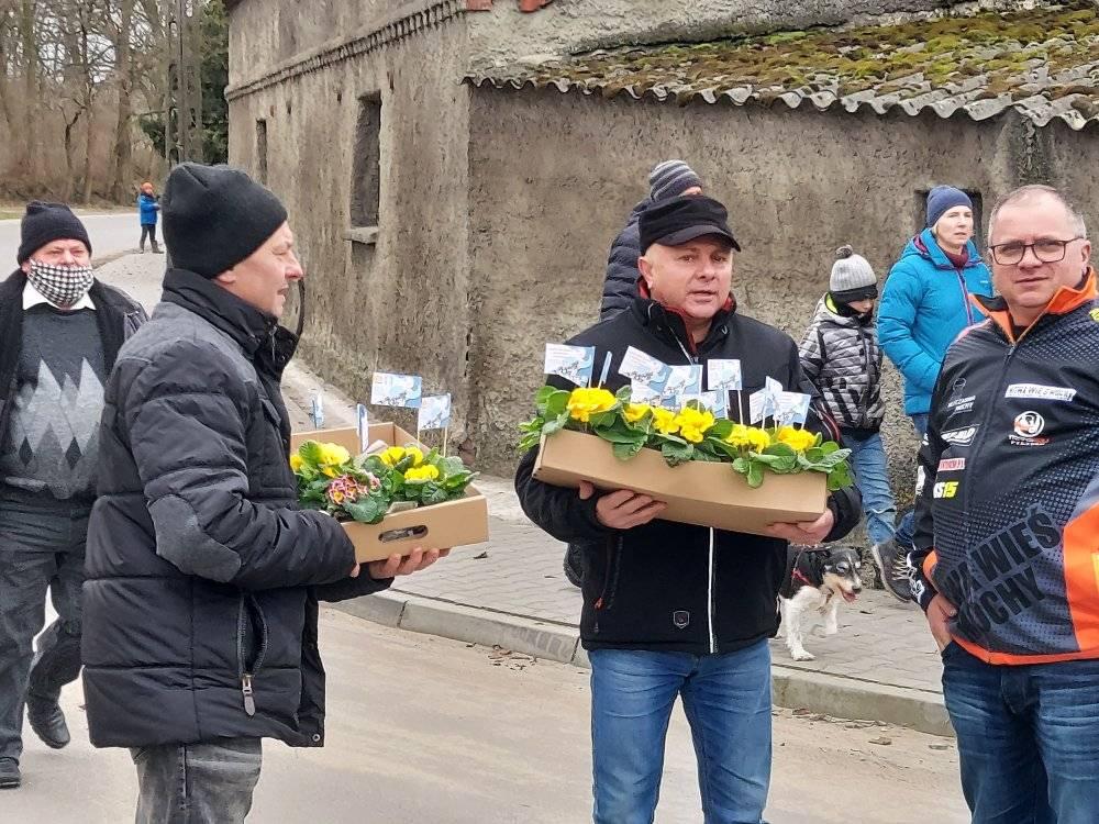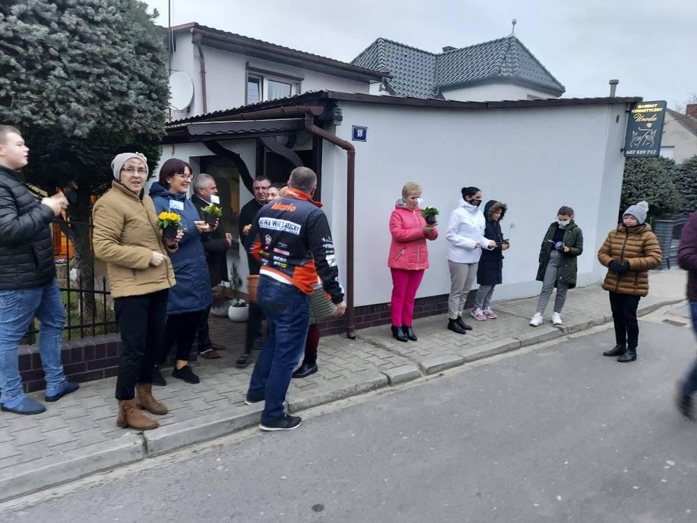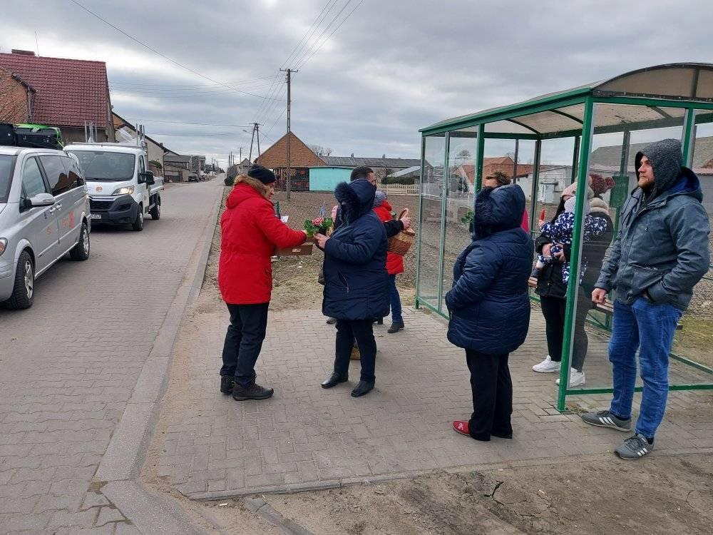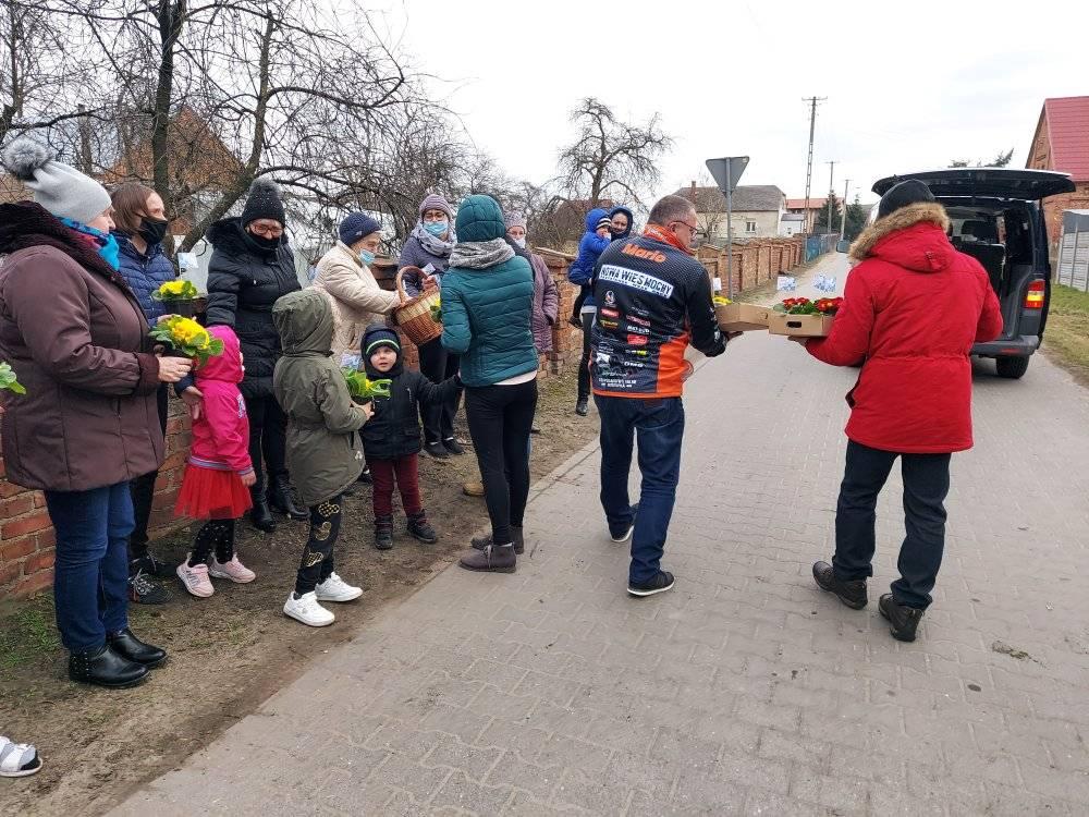 ODJAZDOWY DZIEŃ KOBIET w Gminie Przemęt już za nami! Dziękujemy za obecność i udział w naszej akcji. Razem można wiele! I tak przyszedł czas podziękowań za udział w kwiatowym konwoju. Nieocenieni okazali się być WRAK RACE NOWA WIEŚ-MOCHY – sołtys Mariusz oraz Kasia i Marcin z synem Kubą oraz „Sołtysem Juniorem” fenomenalnymi chłopakami, którzy zaangażowali się w akcję. Na duże uznanie zasługuje też Pan Eugeniusz z PPK Przemęt, który dzielnie znosił znoje zaopatrzenia. Dziękujemy przedstawicielom sołectw – sołtysom, członkom rad sołeckim oraz strażakom OSP za zaangażowanie się w rozdawanie kwiatów na terenie swoich miejscowości. Odzew mieszkańców Gminy Przemęt na ODJAZDOWY DZIEŃ KOBIET przeszedł nasze najśmielsze oczekiwania! Rozdaliśmy kilka tysięcy kwiatów. I choć po godzinie 14:00 zaczęliśmy być w „niedoczasie” to dziękujemy za wyrozumiałość i za to, że Panie chciały na nas zaczekać. Finałową miejscowością naszego konwoju była Nowa Wieś i tu z inicjatywy KGW Nowa Wieś mogliśmy liczyć na ciepłą strawę za co serdecznie dziękujemy! W imieniu pracowników GCKiB w Przemęcie dziękuję za miłe przyjęcie, miłe słowa i uśmiech obdarowywanych Pań! Marcowa aura okazała się w niedzielę 7 marca niezbyt łaskawa, ale… gorąca i życzliwa atmosfera podczas konwoju, rozgrzewała nas i motywowała do działania! W imieniu organizatorów: Gminy Przemęt – z Wójtem Januszem Frąckowiakiem na czele oraz całego zespołu GCKiB raz jeszcze SERDECZNIE DZIĘKUJEMY!!!