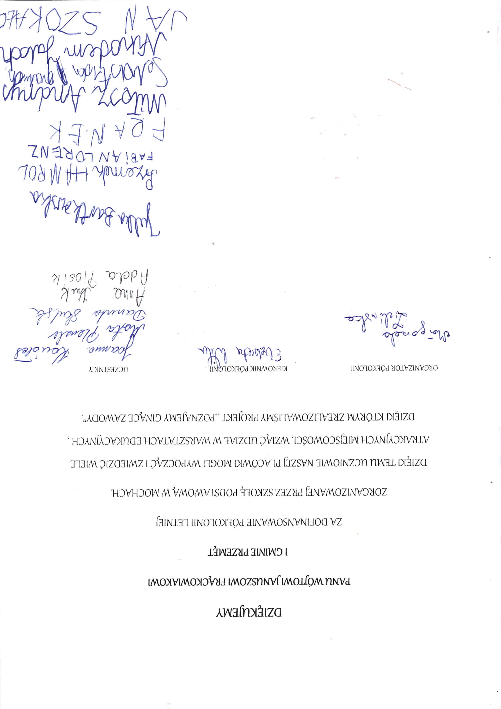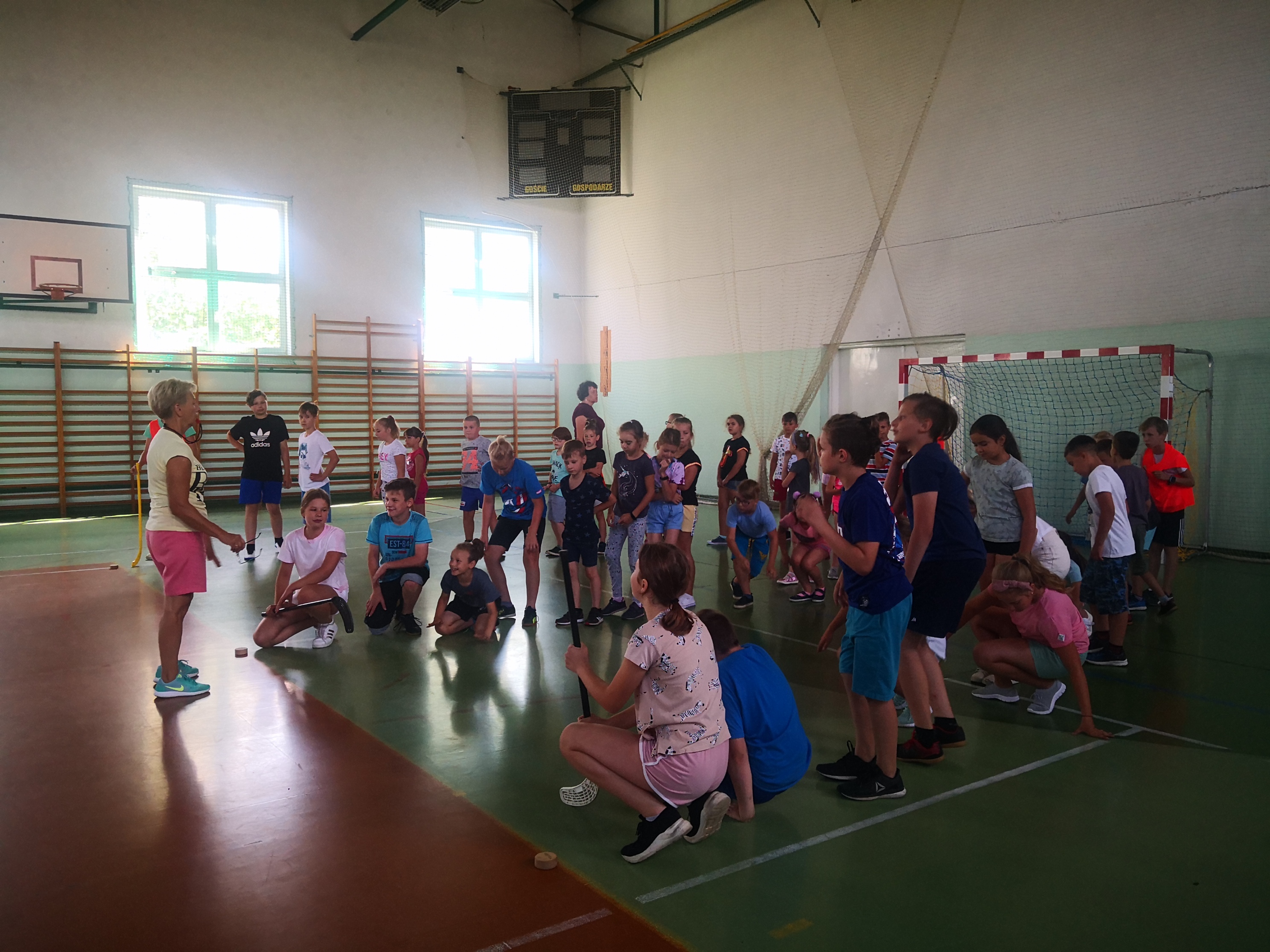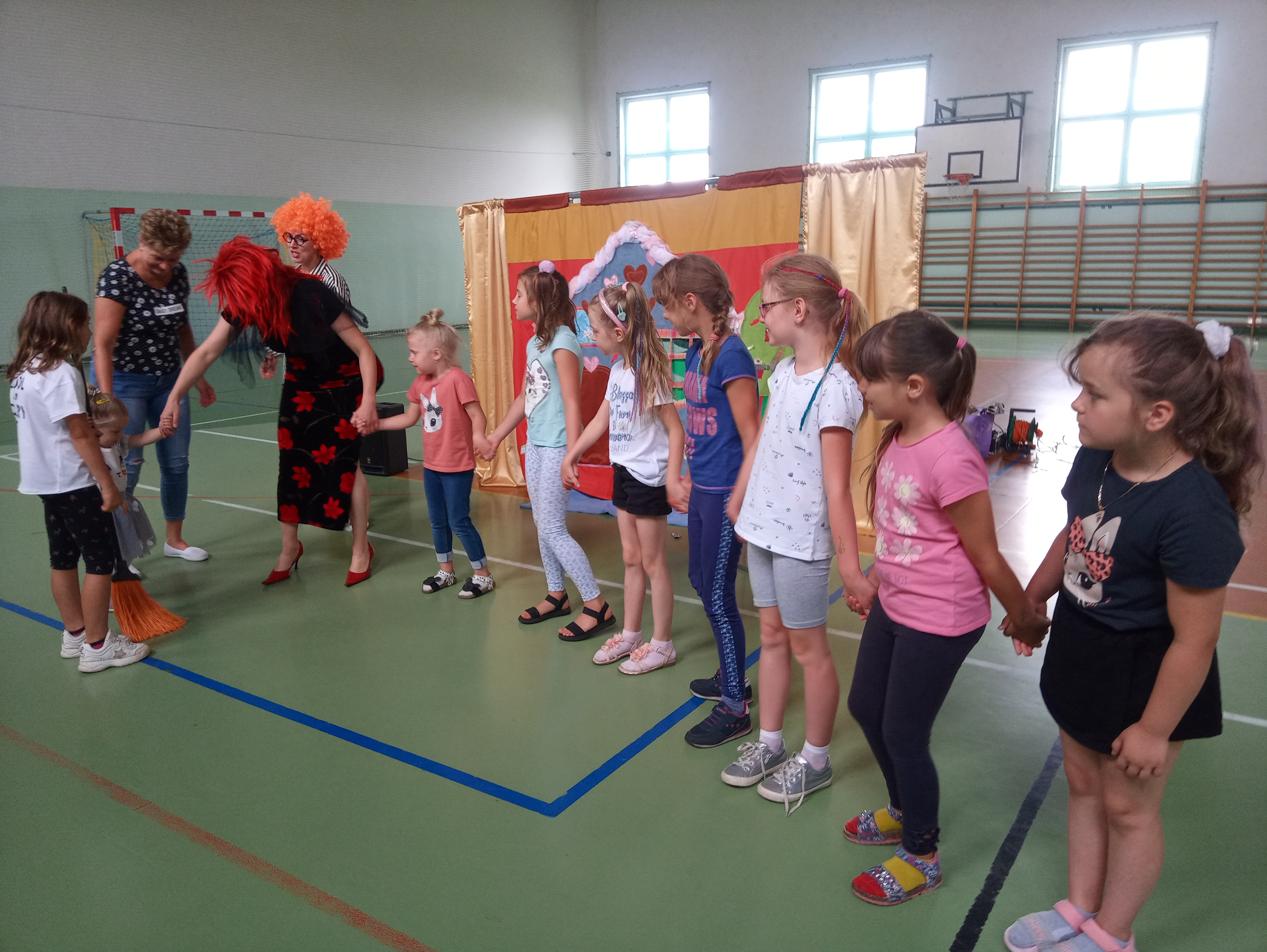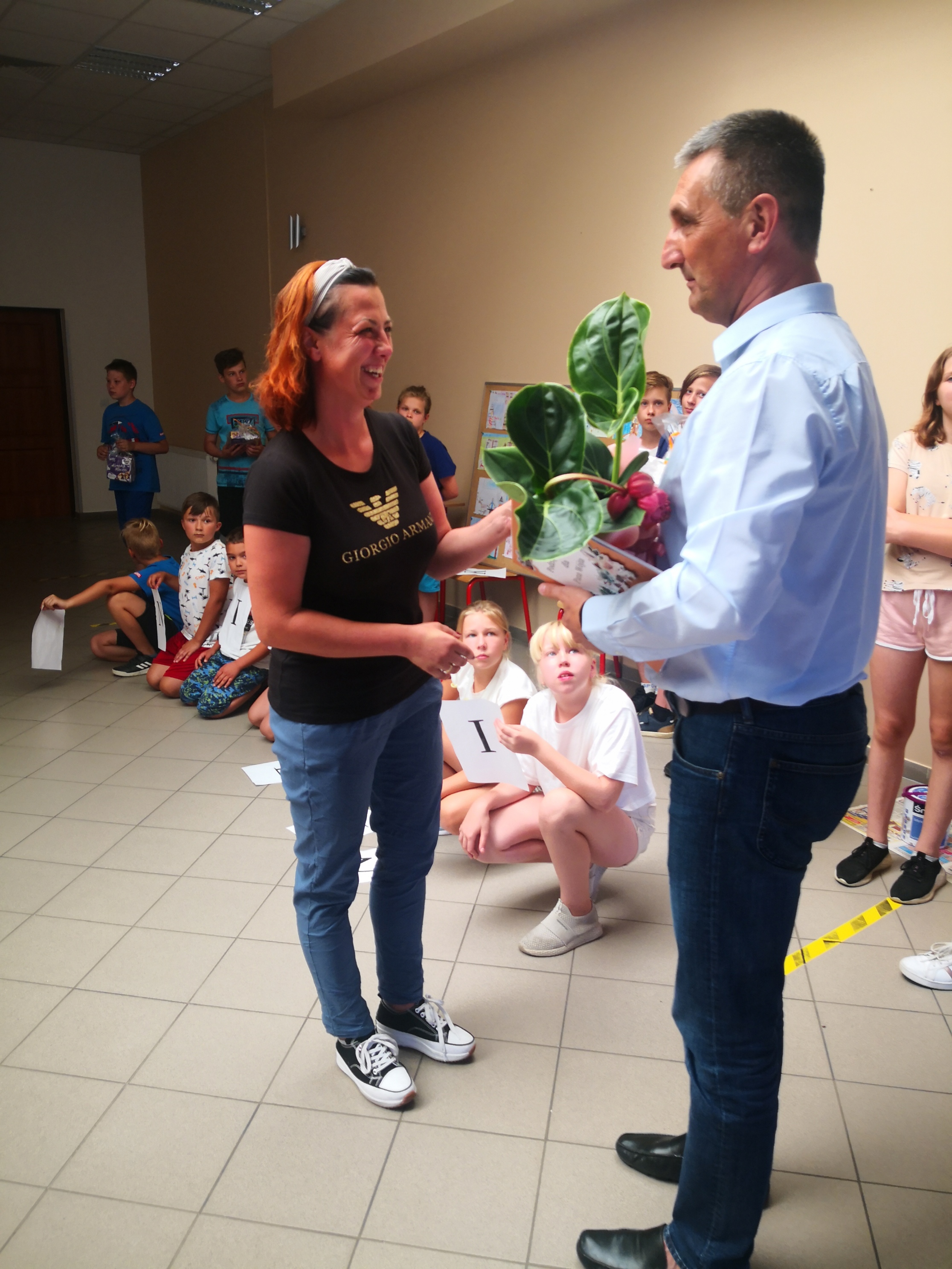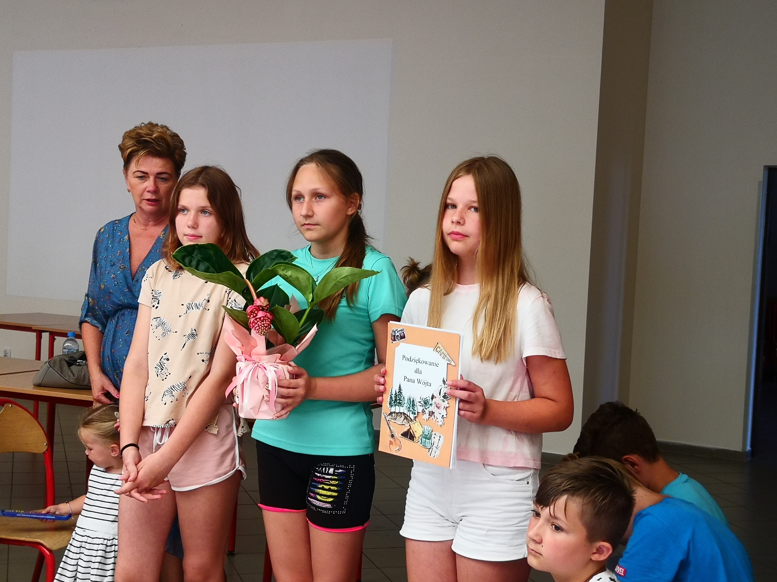 Półkolonistów odwiedził też teatr „Pompon” z Leszna, który w swoim spektaklu przestrzegał młodzież i dzieci przed szkodliwym działaniem alkoholu i nikotyny. W ostatnim dniu wypoczynku odbyła się olimpiada sportowa, quiz z wiadomości o ginących zawodach dla młodzieży i konkurs rysunkowy dla najmłodszych. Zwycięzcy otrzymali nagrody, a inni upominki, za które dziękujemy Gminie Przemęt. W tym dniu odwiedził nas pan Wójt Janusz Frąckowiak, który pogratulował organizatorom tej wspaniałej inicjatywy, jaką jest półkolonia oraz podziękował wszystkim wolontariuszom, którzy poświęcili swój czas wolny, aby opiekować się uczestnikami półkolonii. Rodzice i dzieci podziękowali wychowawcom oraz władzom Gminy Przemęt za przychylność oraz duże wsparcie finansowe wypoczynku letniego dla dzieci .