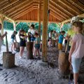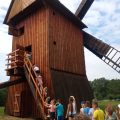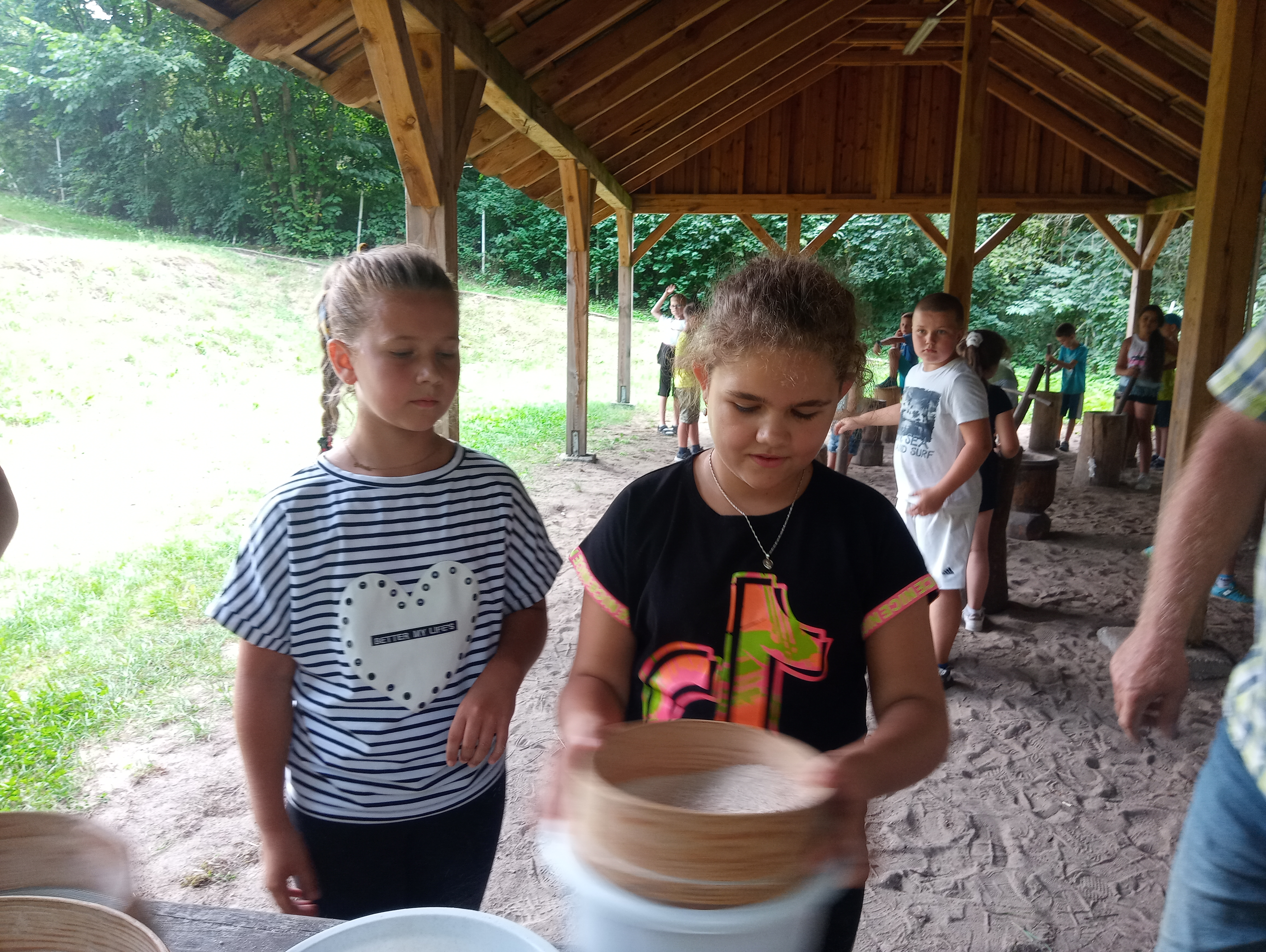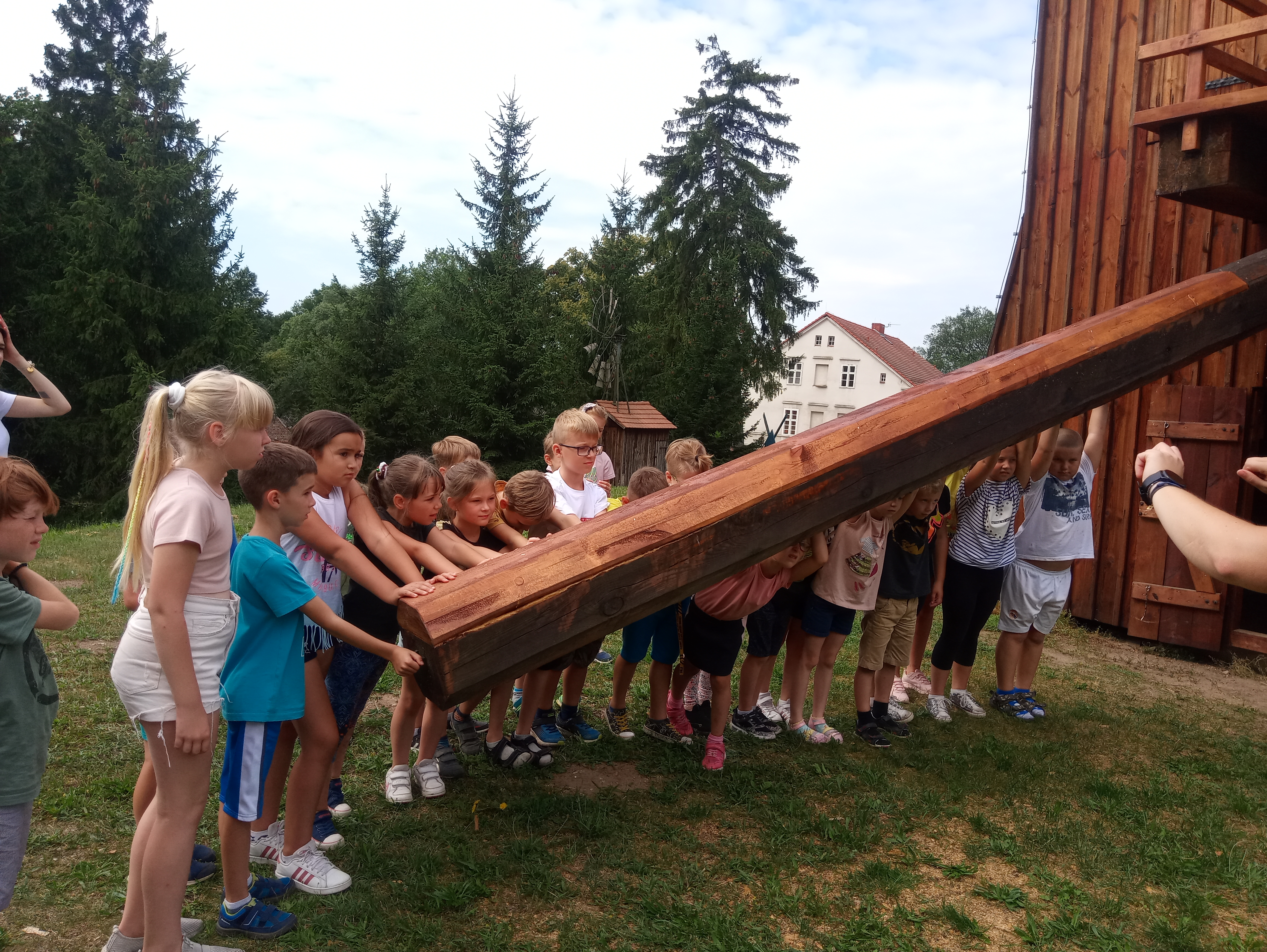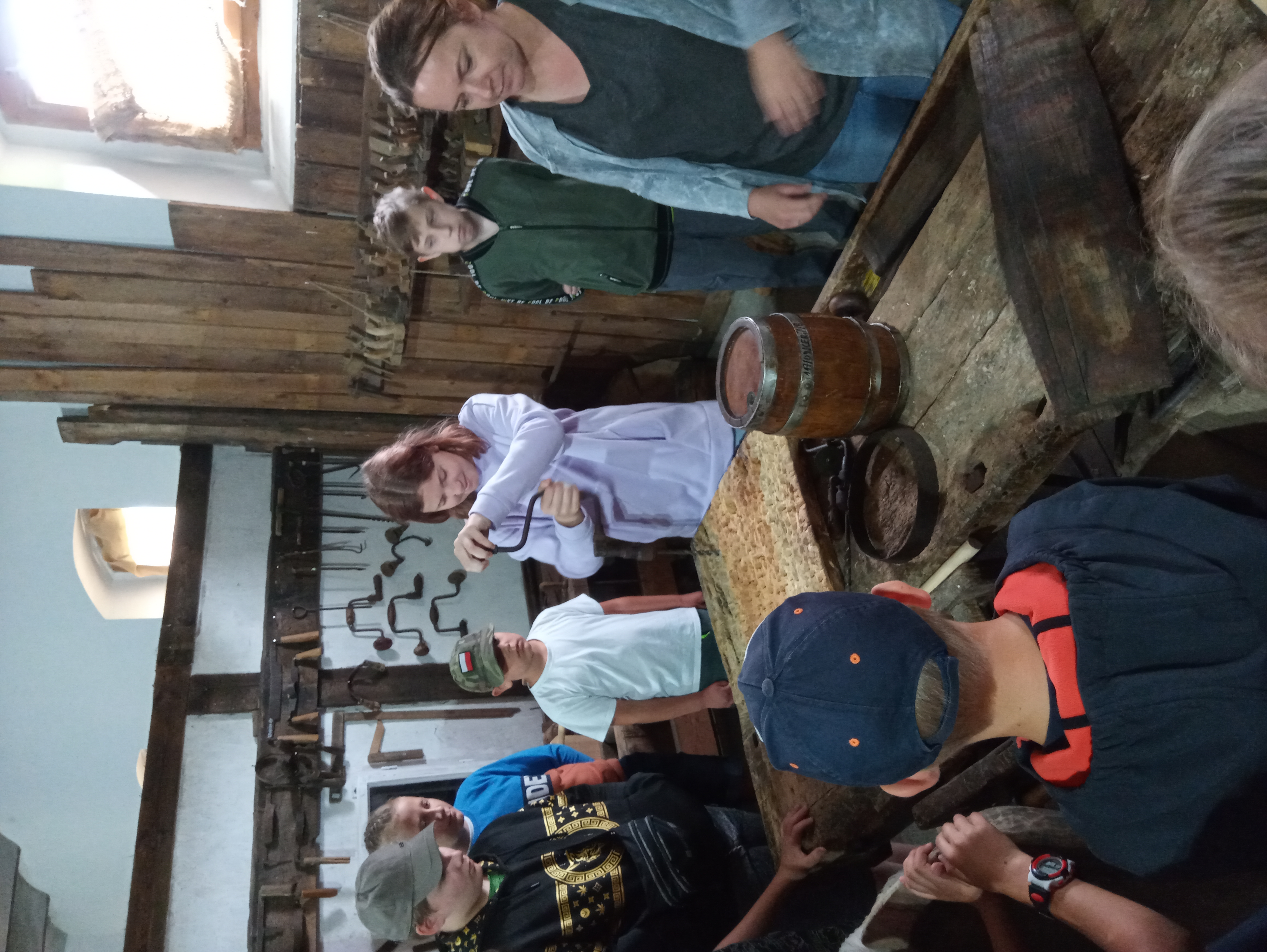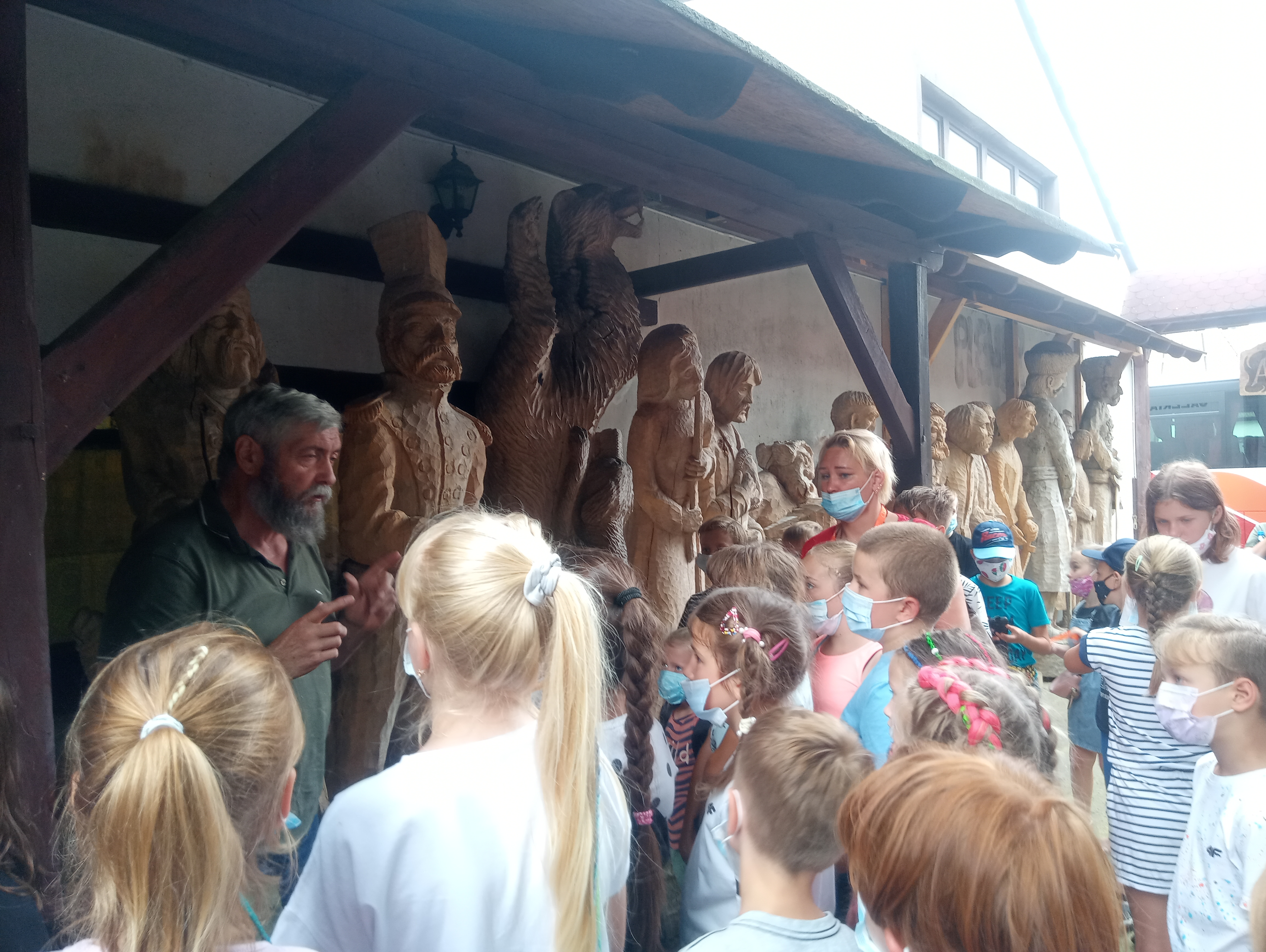 Podczas półkolonii letniej zorganizowanej przez Szkołę Podstawową w Mochach dzieci i młodzież zrealizowały projekt pt. ”Poznajemy ginące zawody”. Wypoczynek trwał od 19-30 lipca 2021r.Uczestnicy zwiedzili wiele ciekawych miejsc i brali udział w warsztatach edukacyjnych, które pozwoliły im lepiej poznać tzw. ginące zawody. W Centrum Edukacji Regionalnej i Przyrodniczej w Mniszkach poznali miejsca pracy oraz narzędzia, których używali kowal, bednarz, kołodziej, szewc, fotograf,rybak,pszczelarz,praczka,zegarmistrz,krawiec,fryzjer,drukarz. Tam obejrzeli też wyposażenie dawnej klasy szkolnej i składu kolonialnego. Mogli spróbować pisania gęsim piórem, pobierając atrament z kałamarza. W Centrum również brali udział w warsztatach stolarskich, podczas których wykonali „ryczkę’’.Każdy swój stołek mógł zabrać do domu. W Nowym Tomyślu poznali zawód wikliniarza i plecionkarza. Z dużym zaciekawieniem obejrzeli pokaz gotowania, parzenia i korowania wikliny. Każde chętne dziecko mogło własnoręcznie okorować wiklinową witkę. Po zwiedzeniu Muzeum Wikliniarstwa był spacer w mini zoo, a następnie czas na lody. Kolejny zawód, który nas interesował to młynarz, aby obejrzeć młyn wodny i wiatraki półkoloniści udali się w daleką podróż, bo aż do Muzeum Młynarstwa w Jaraczu. Tam zwiedzili stary wiatrak oraz młyn wodny z pełnym wyposażeniem. Po zwiedzaniu brali udział w warsztatach ręcznego mielenia ziarna na mąkę i przesiewania mąki. Uczestnicy wypoczynku stwierdzili, że to była trudna praca. Z Jaracza udali się do Klotyldzina, gdzie jest gospodarstwo agroturystyczne ”Alpakoland” , gdzie dowiedzieli się o hodowli alpak, których tam było ok.60, poznali ich upodobania, a nawet mogli pójść z alpaką na smyczy na spacer. Kto chciał mógł udać się na przejażdżkę konną. W Muzeum Etnograficznym w Ochli uczestnicy obejrzeli wyposażenie chat wiejskich, zobaczyli budynki gospodarcze kryte strzechą, poznali dawne maszyny rolnicze oraz wzięli udział w warsztatach obróbki śmietany, podczas których wytworzyli masło i maślankę. Następnie zjedli pajdę chleba i popili maślanką.