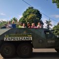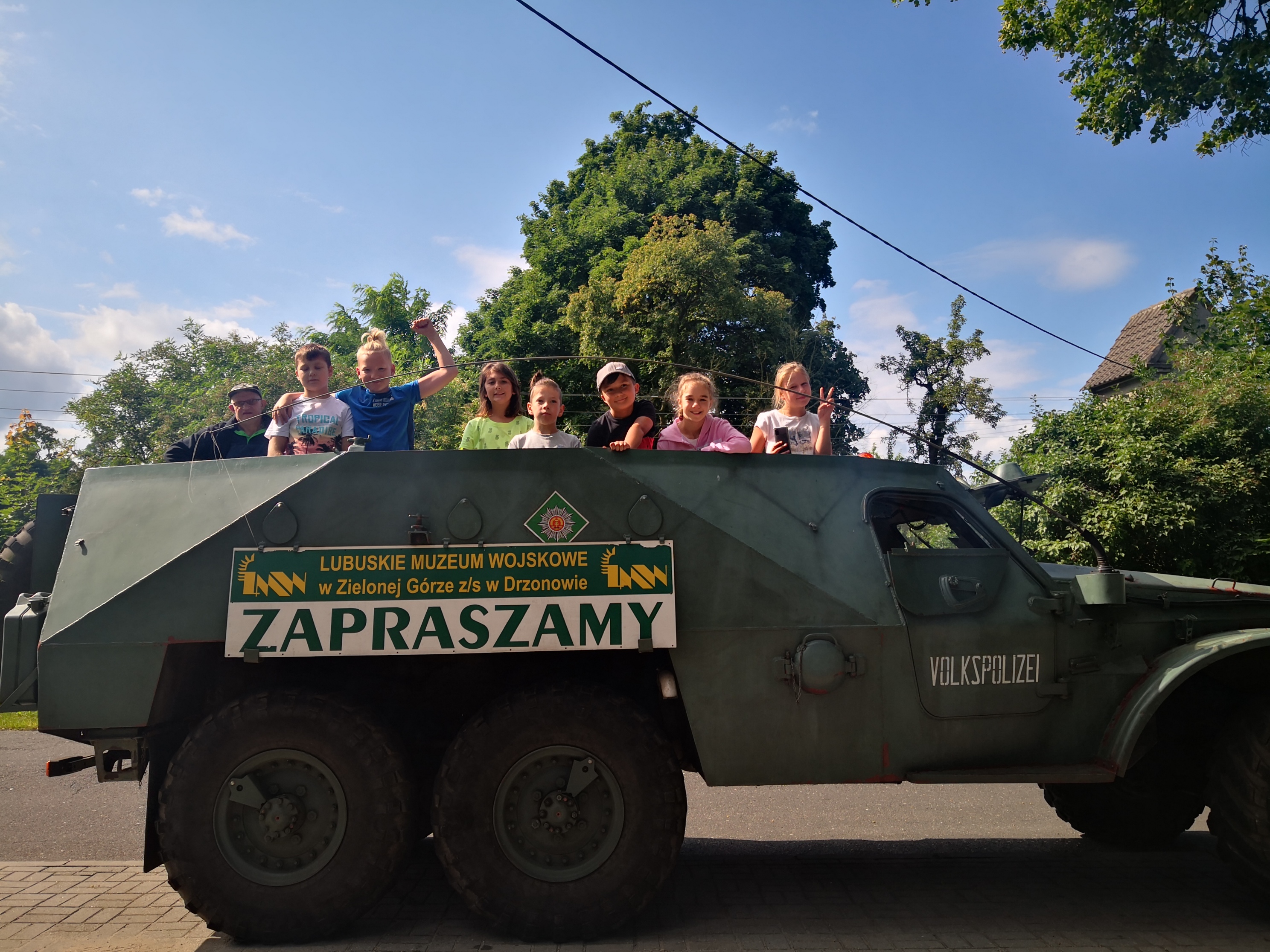 W Drzonowie zwiedziliśmy Muzeum Wojska Polskiego. Jest to miejsce godne polecenia nie tylko ze względu na ogromny zbiór wojskowych środków transportu, broni, mundurów i innych pamiątek, ale też oprowadzają tam przewodnicy , którzy z wielką pasją opowiadają o tych eksponatach. Można odpocząć pod wiatą dla turystów, zwiedzić hangary i pojazdy na zewnątrz, a do niektórych można wejść. Dla dzieci wielką frajdą była przejażdżka transporterem opancerzonym BTR-152 po okolicznym lasach.