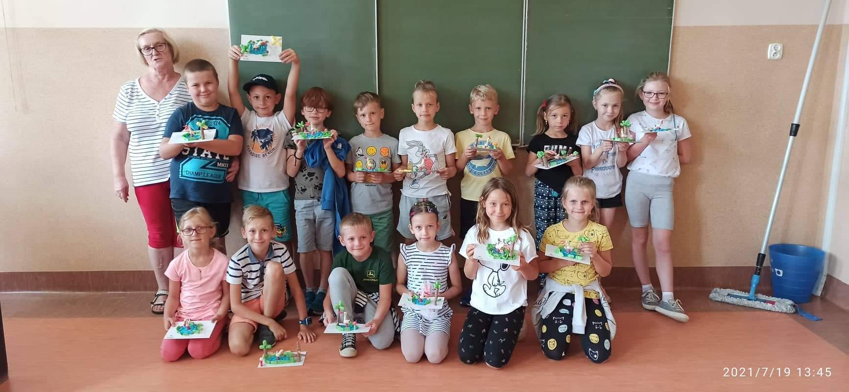 W piątek 23 lipca dzieci i młodzież odwiedziły Urząd Gminy, a następnie na przemęckich łąkach brały udział w akcji liczenia motyli zorganizowanej przez Zespół Parków Krajobrazowych Województwa Wielkopolskiego z okazji Tygodnia Liczenia Motyli. Otrzymali specjalne karty obserwacji, na których zaznaczali zauważone motyle. Fotografie wypełnionych kart przesłano do ZPKWW w Poznaniu. Po tym udali się do Górska, gdzie spotkali się z rzeźbiarzem p. Marianem Murkiem, który opowiedział im o swojej pracy, a następnie obejrzeli Galerię Ptaków i inne rzeźby. W końcu dotarli na plażę w Osłoninie, gdzie pod opieką wychowawczyń i ratowników mogli zażyć kąpieli. Zmęczeni, ale zadowoleni udali się na obiad i lody zorganizowany w Wieleniu. Oprócz wyjazdów edukacyjnych było też wiele zabawy i rekreacji. Zawsze z wielką niecierpliwością oczekiwany jest wyjazd do Parku Rozrywki Majaland w Kownatach, chociaż nazwa kojarzy się z pszczółką Mają, to jest on dla wszystkich. Atrakcje zadowolą i młodych i starszych. Świetnie bawią się całe rodziny. Półkoloniści byli też w kinie w Galerii Leszno, gdzie obejrzeli film o prawdziwej przyjaźni pt. ”Luka”, a następnie udali się do Włoszakowic, gdzie w parku obejrzeli rzeźby zwierząt autorstwa p. Sowijaka z Bukówca. Wiele wrażeń i radości dała wycieczka do Klubu Nenufar w Kościanie. Tam tak spodobało się dzieciom, że trzeba było przedłużyć pobyt o godzinę, bo nie zdążyli skorzystać ze wszystkich atrakcji.