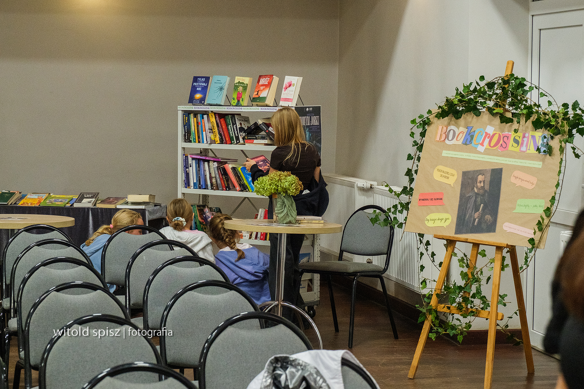 Po części oficjalnej przyszedł czas na rozmowy przy lipowej herbacie i słodkim poczęstunku. Była również możliwość wymiany książek w specjalnie przygotowanej strefie bookcrossingu oraz zrobienie pamiątkowych zdjęć na ściance z postacią Jana Kochanowskiego oraz w towarzystwie pani Laury Samojłowicz, co cieszyło się dużym zainteresowaniem.