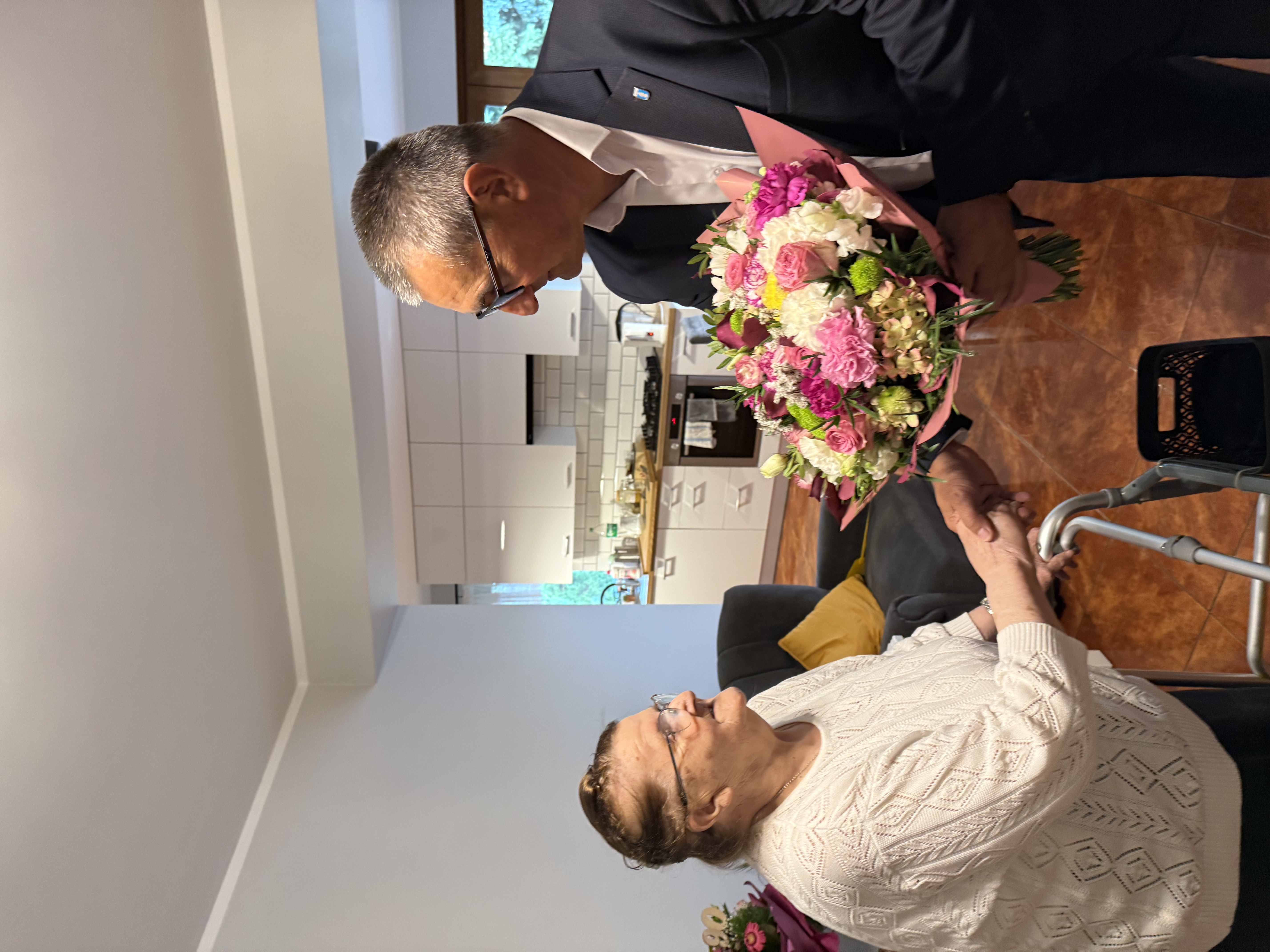 Tym razem powody do świętowania mieli Pan Alfons Zboralski z Moch, który ukończył 91 lat, oraz Pani Jadwiga Ciesielska z Osłonina, obchodząca swoje 90. urodziny. Wójt wraz z zastępcą kierownika USC Ireną Mikołajczak odwiedzili jubilatów w ich domach, przekazując im kwiaty, upominki oraz serdeczne życzenia zdrowia, pogody ducha i długich lat życia w otoczeniu najbliższych. Jak zawsze, wizycie towarzyszyła ciepła, rodzinna atmosfera i wiele wspomnień z dawnych lat.