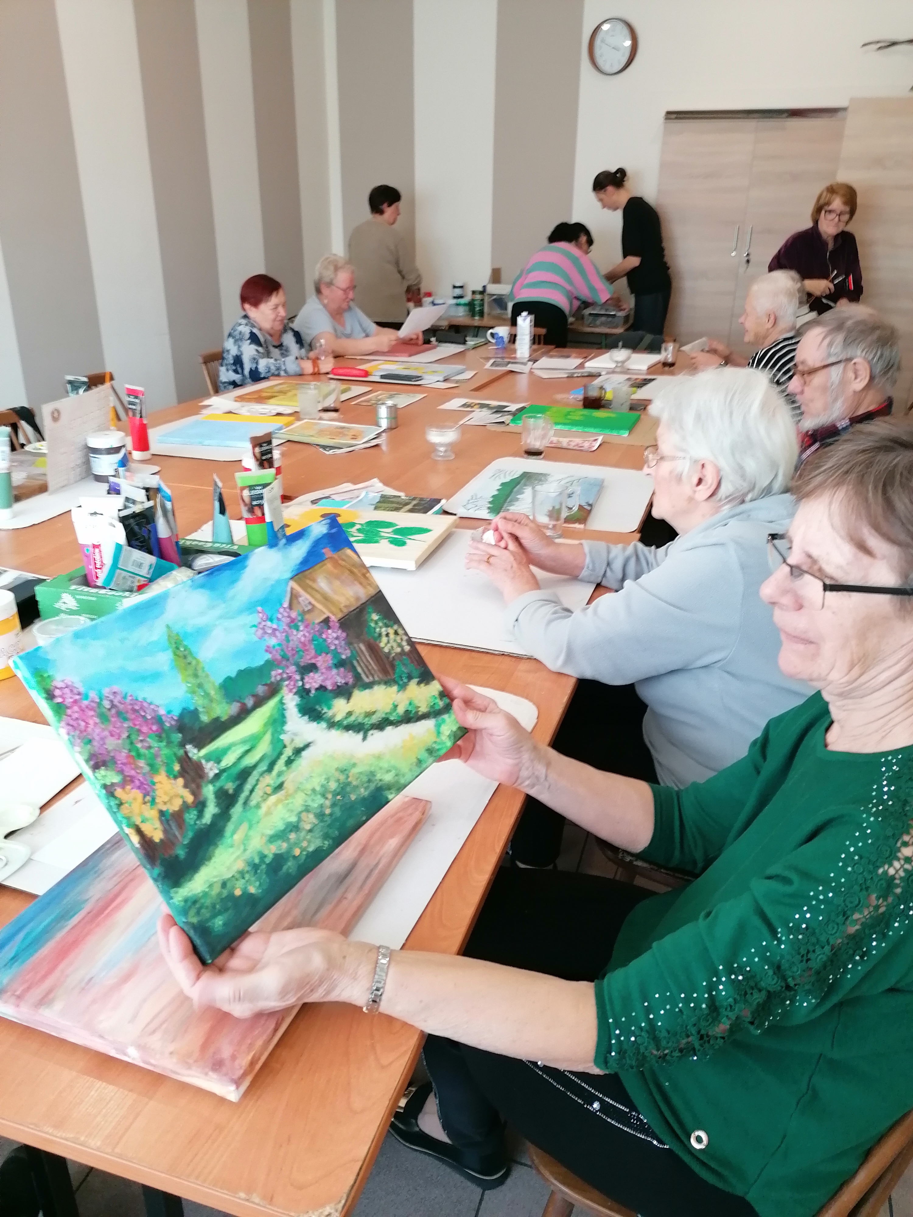 Podczas regularnych zajęć seniorzy z energią i zaangażowaniem uczestniczą w różnorodnych warsztatach. Malowanie ceramiki, ozdabianie lnianych toreb według własnych pomysłów, tworzenie obrazów czy szydełkowanie – to tylko część aktywności, które cieszą się dużą popularnością. Szeroki wybór zajęć sprzyja temu, by każdy mógł spróbować czegoś nowego i odkryć w sobie ukryte talenty.