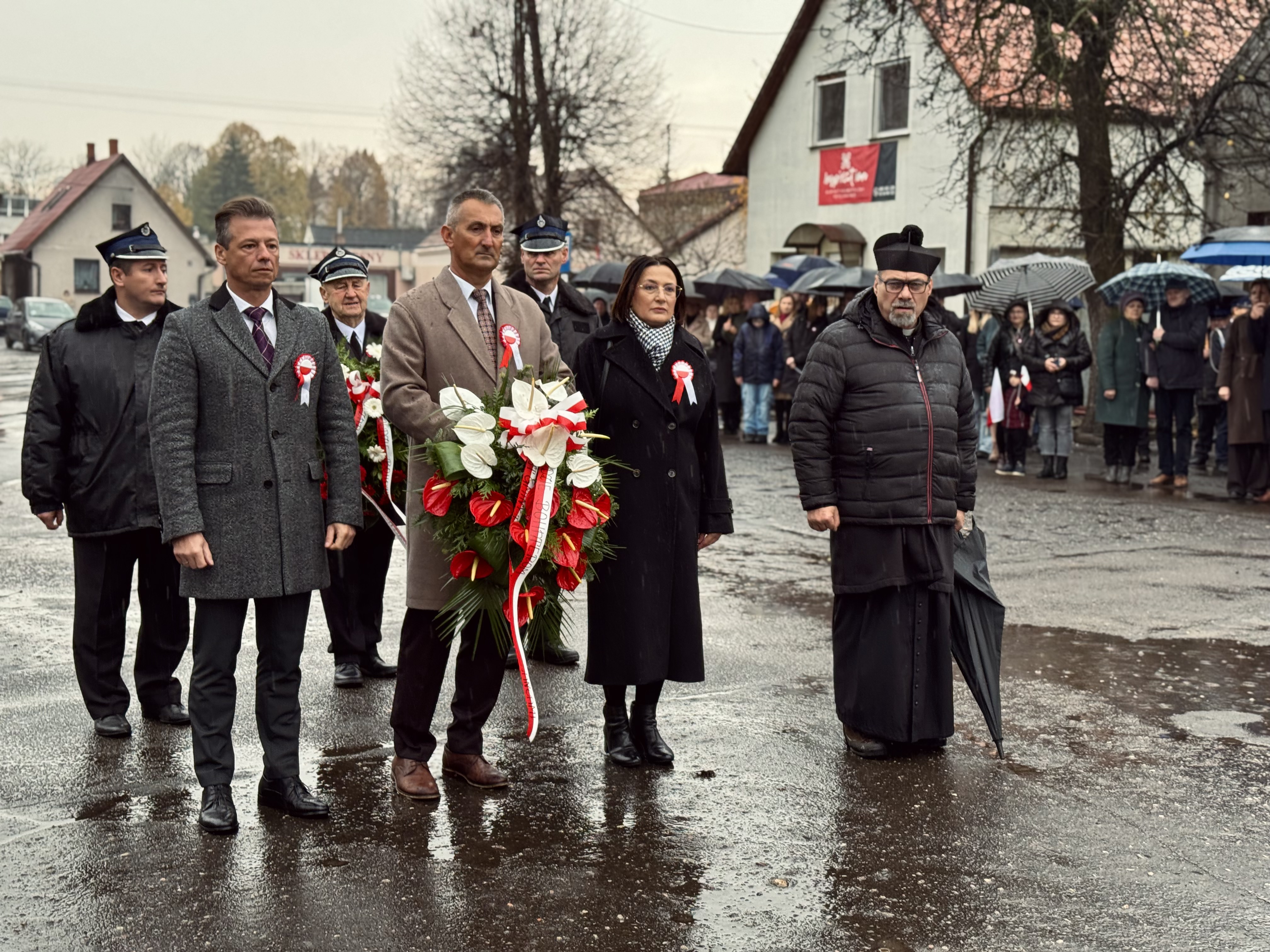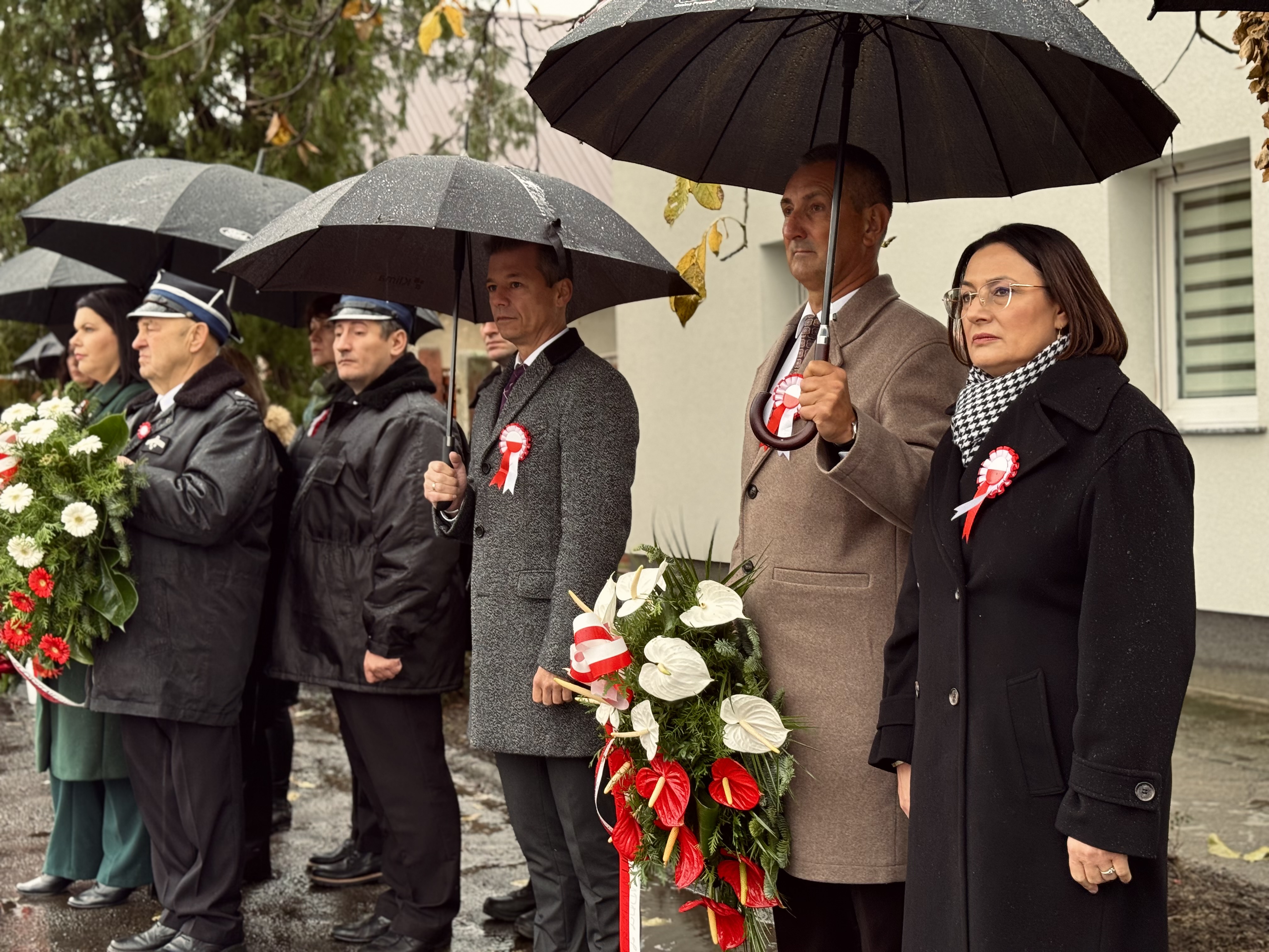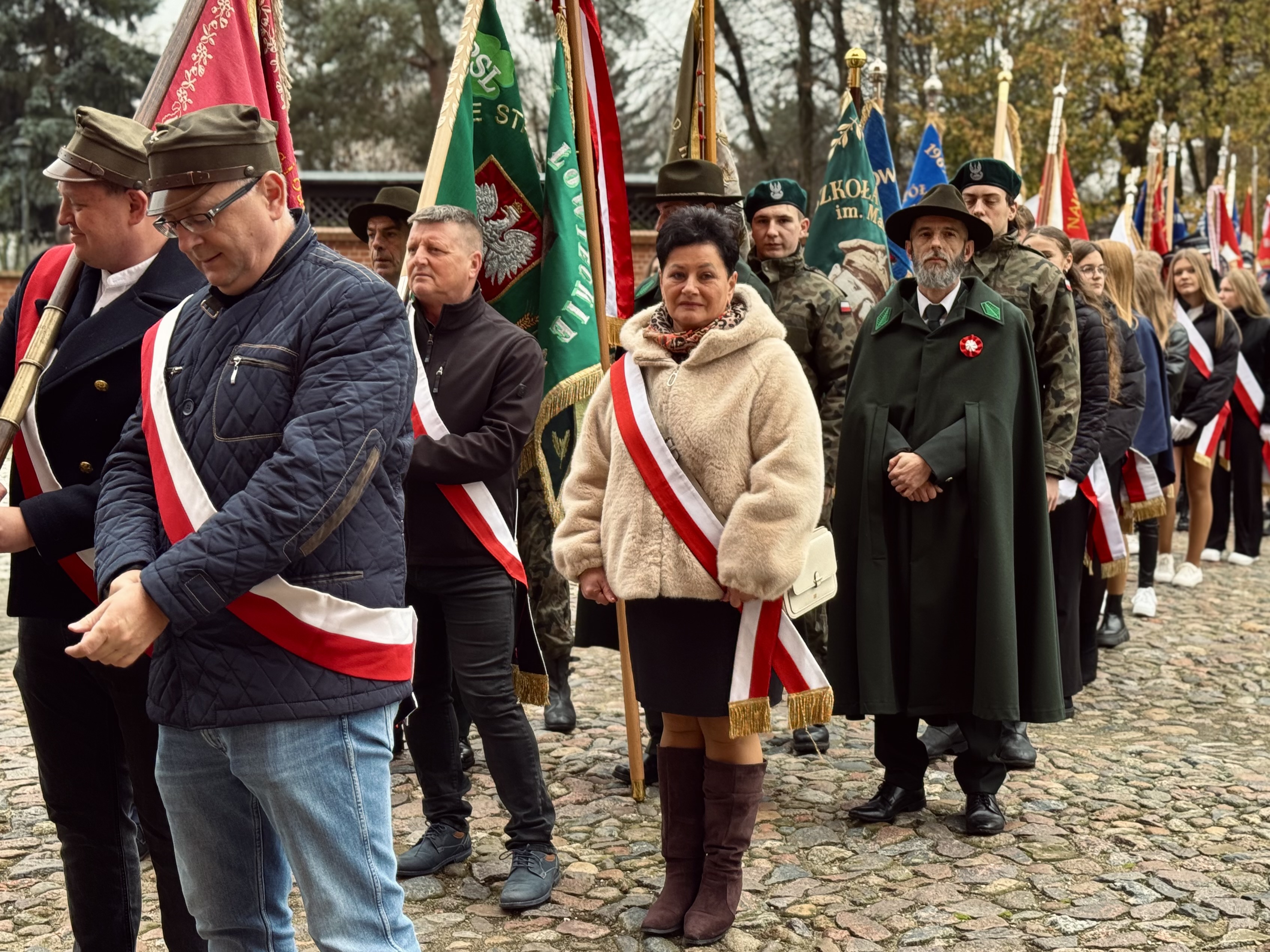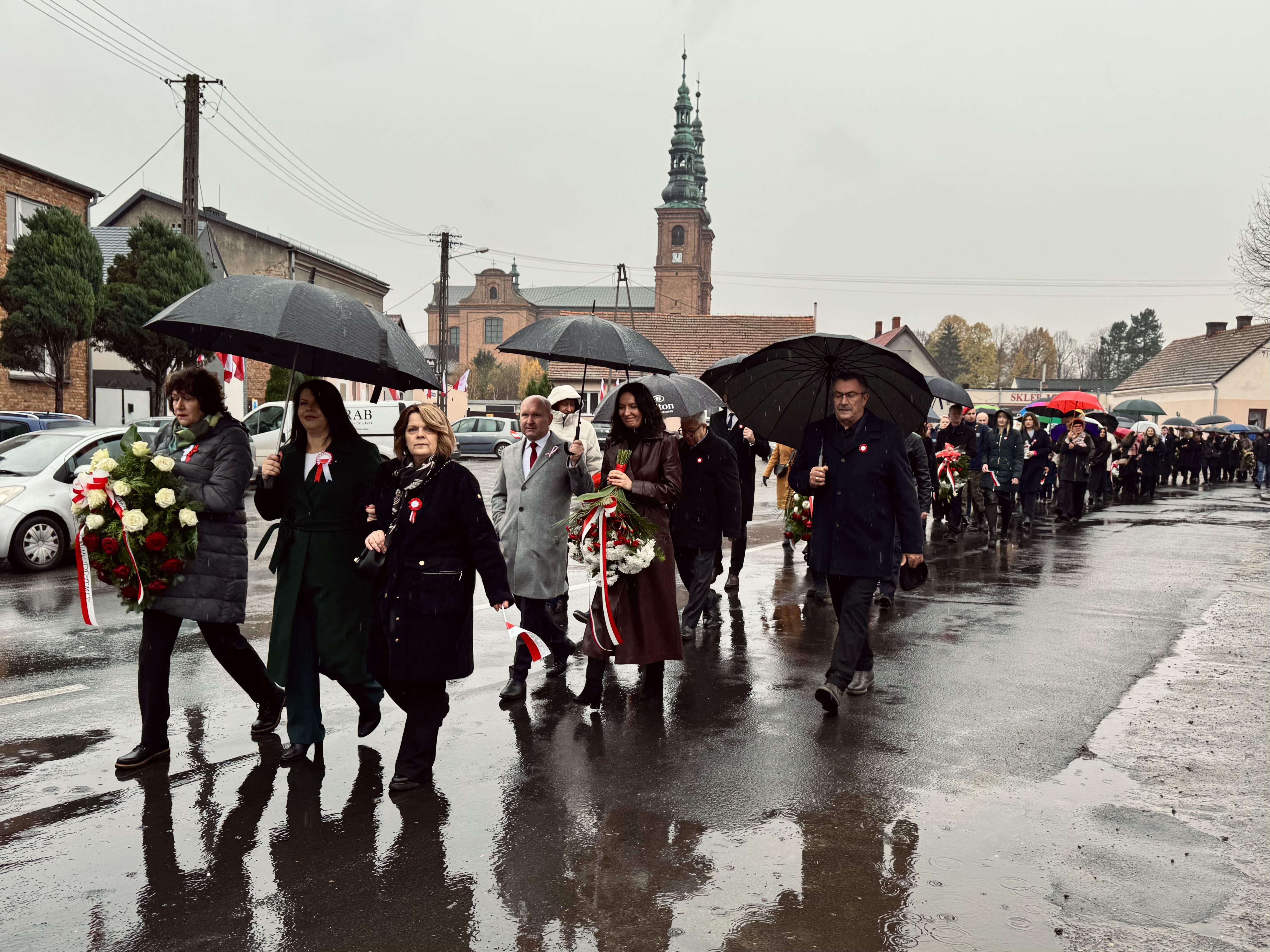 Przy pomniku poświęconym bohaterom walk o wolność Polski zgromadzonych powitała prowadząca uroczystość Agnieszka Klugiewicz. Następnie wspólnie odśpiewano Hymn Państwowy, a delegacje samorządowe, szkolne i społeczne złożyły wieńce i zapaliły znicze pamięci. W tle rozbrzmiewały patriotyczne utwory w wykonaniu orkiestry – „Mazurek Dąbrowskiego”, „Rota” oraz wiązanka pieśni ułańskich, które nadały wydarzeniu wyjątkowo podniosły charakter.