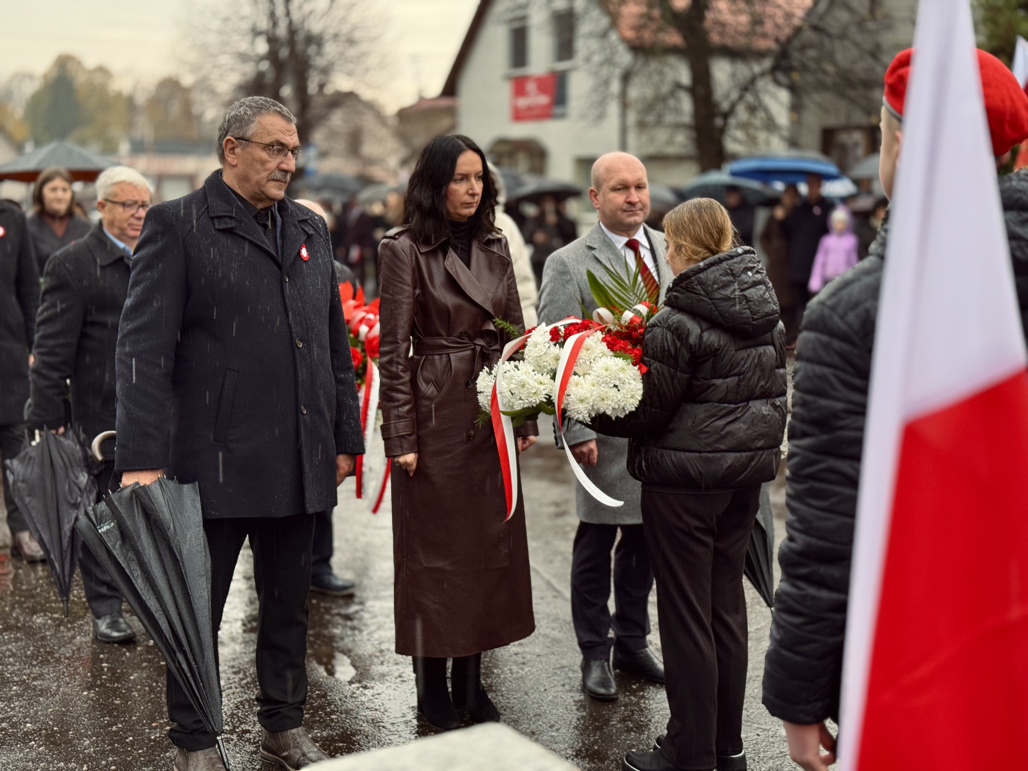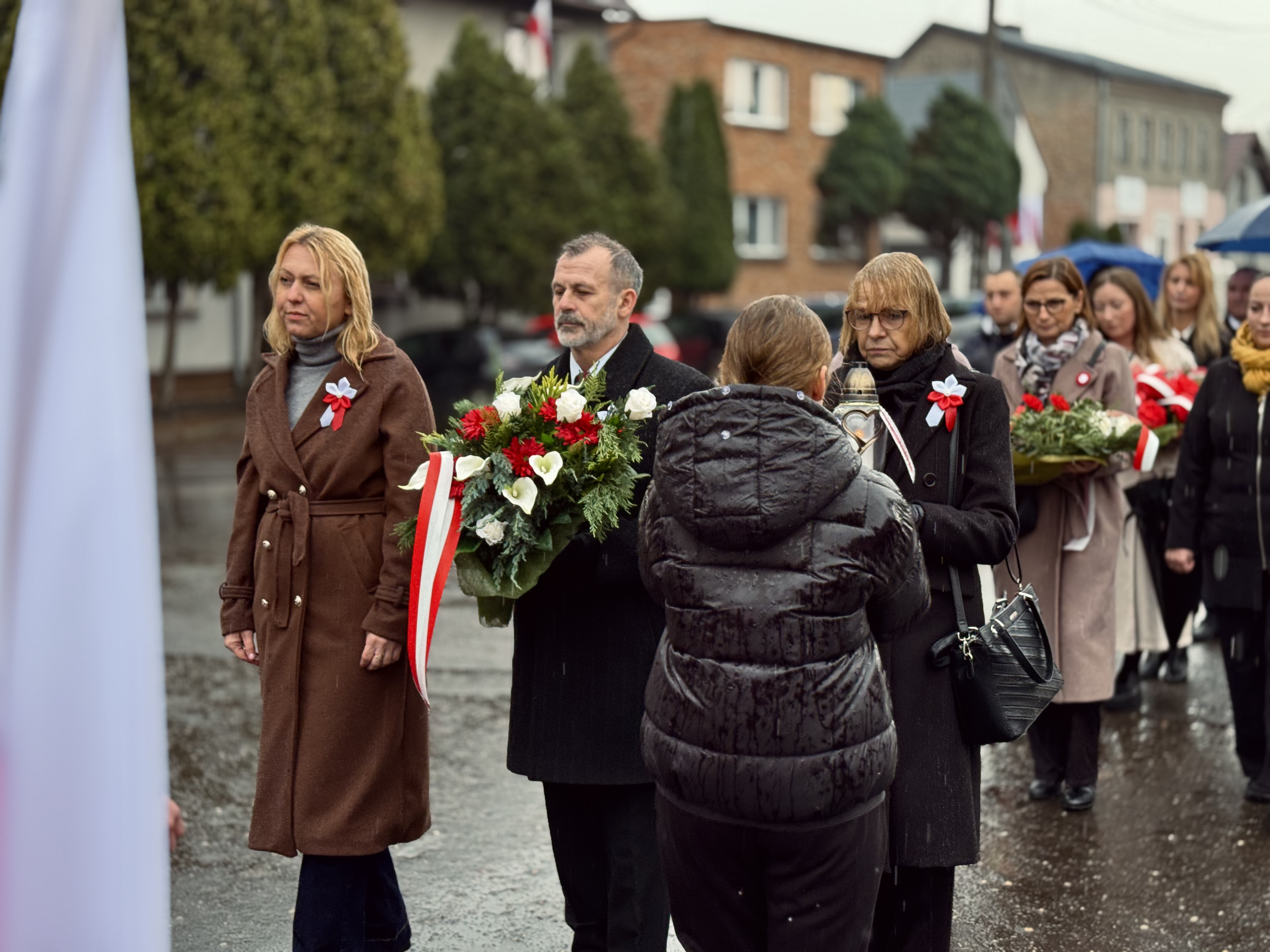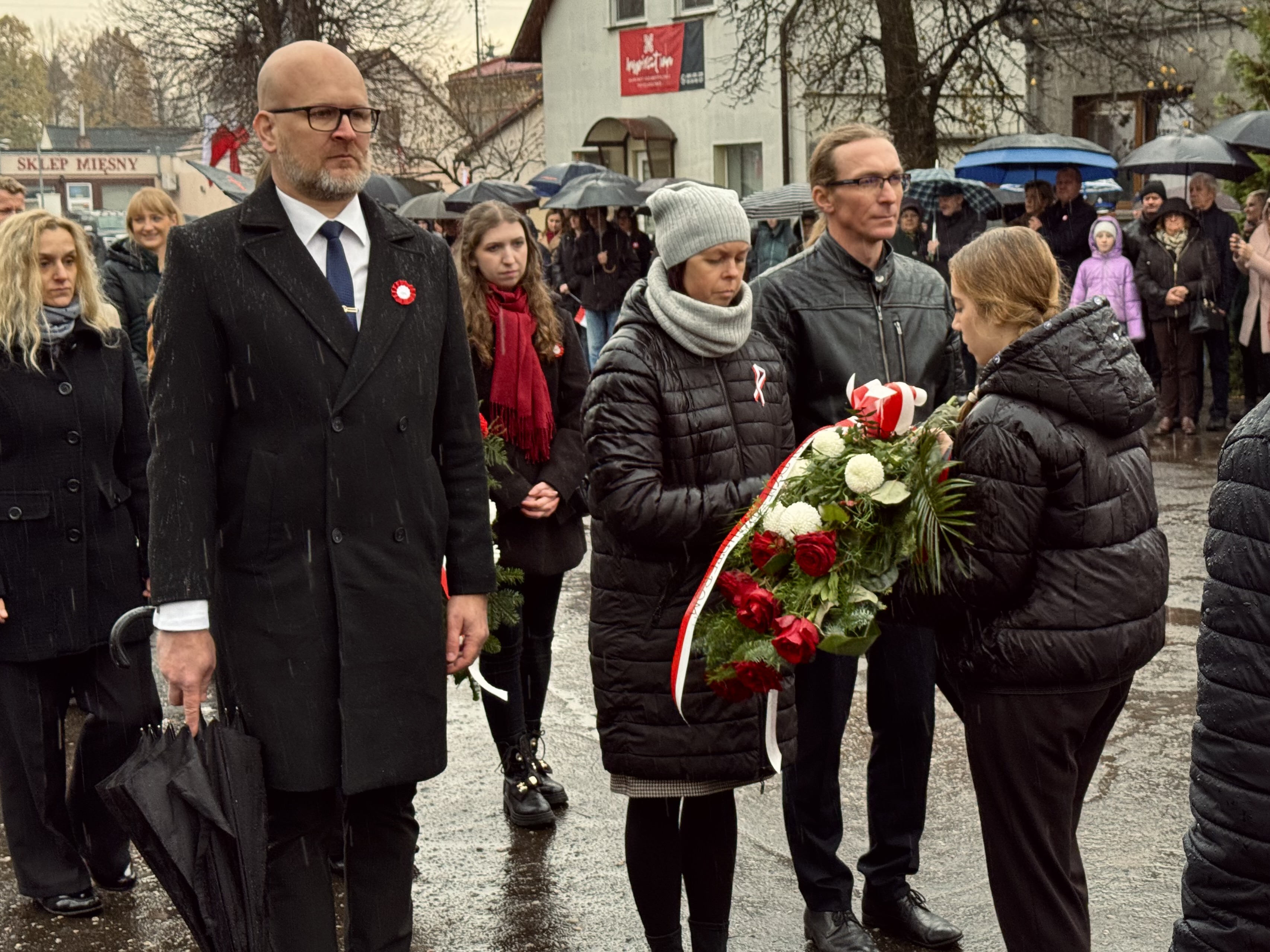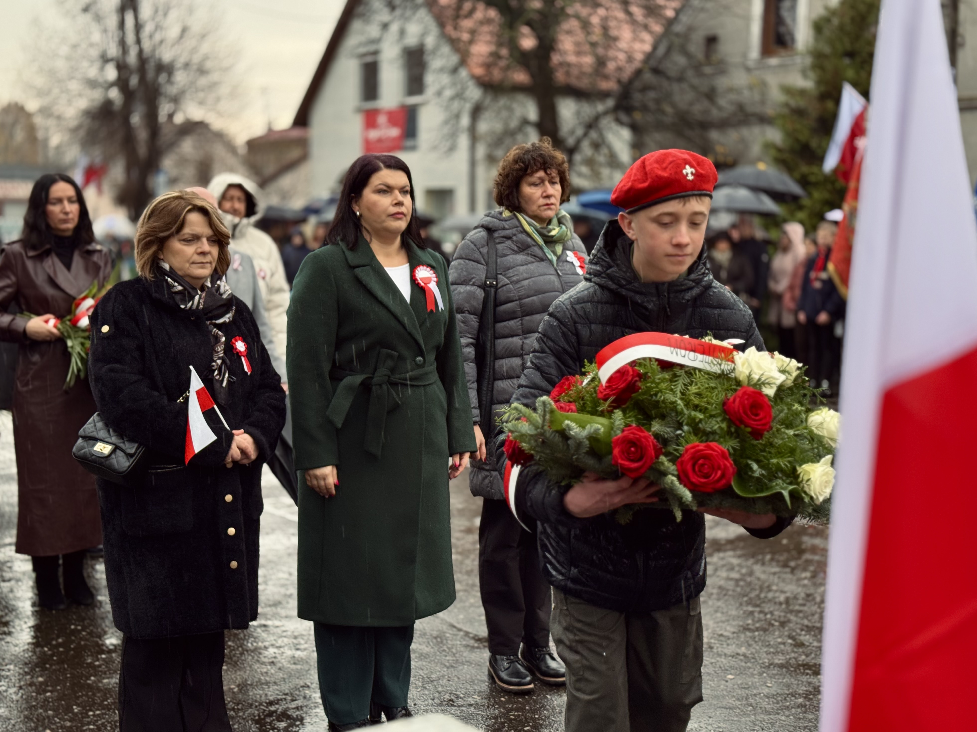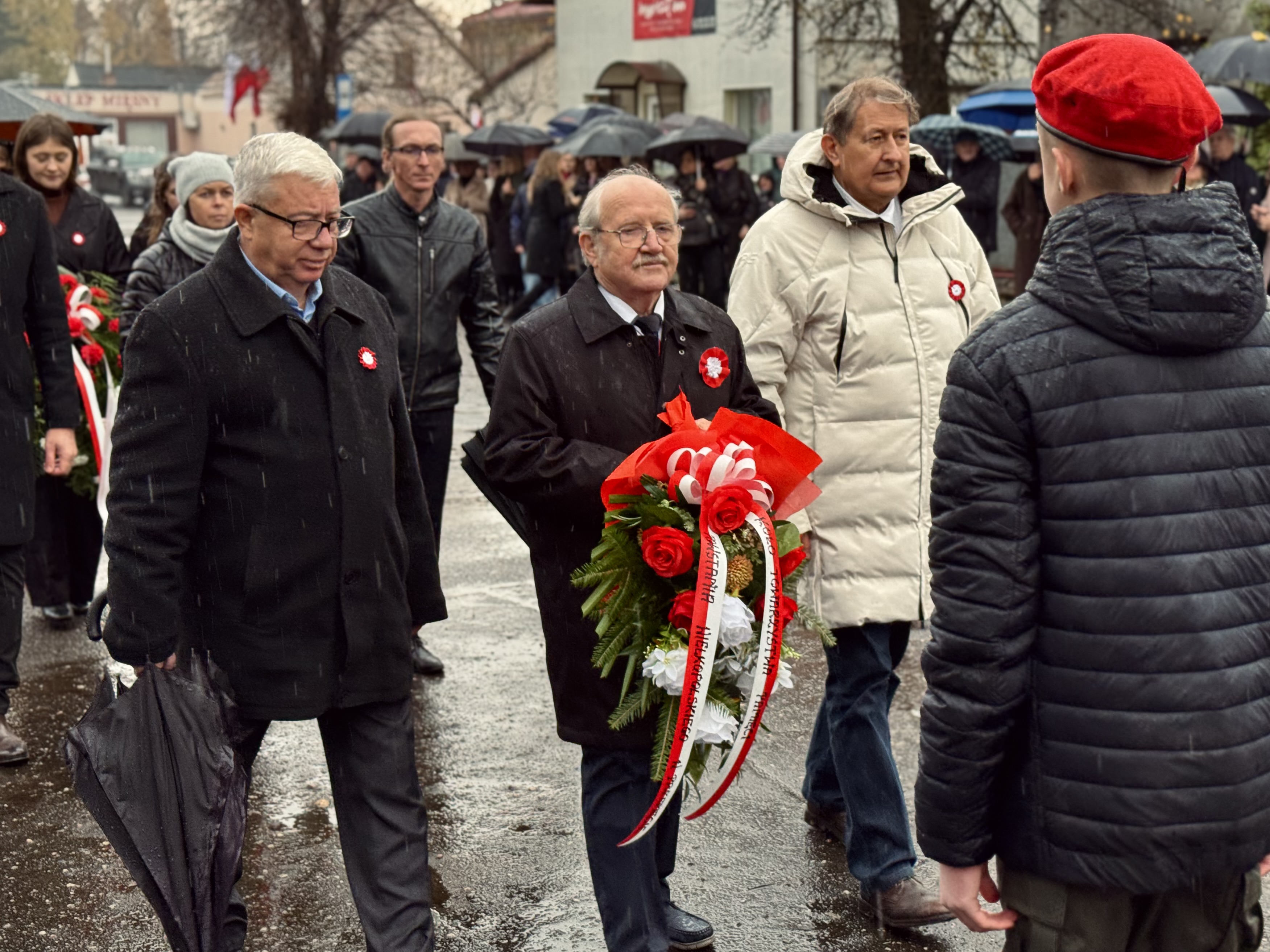 Przy pomniku poświęconym bohaterom walk o wolność Polski zgromadzonych powitała prowadząca uroczystość Agnieszka Klugiewicz. Następnie wspólnie odśpiewano Hymn Państwowy, a delegacje samorządowe, szkolne i społeczne złożyły wieńce i zapaliły znicze pamięci. W tle rozbrzmiewały patriotyczne utwory w wykonaniu orkiestry – „Mazurek Dąbrowskiego”, „Rota” oraz wiązanka pieśni ułańskich, które nadały wydarzeniu wyjątkowo podniosły charakter.