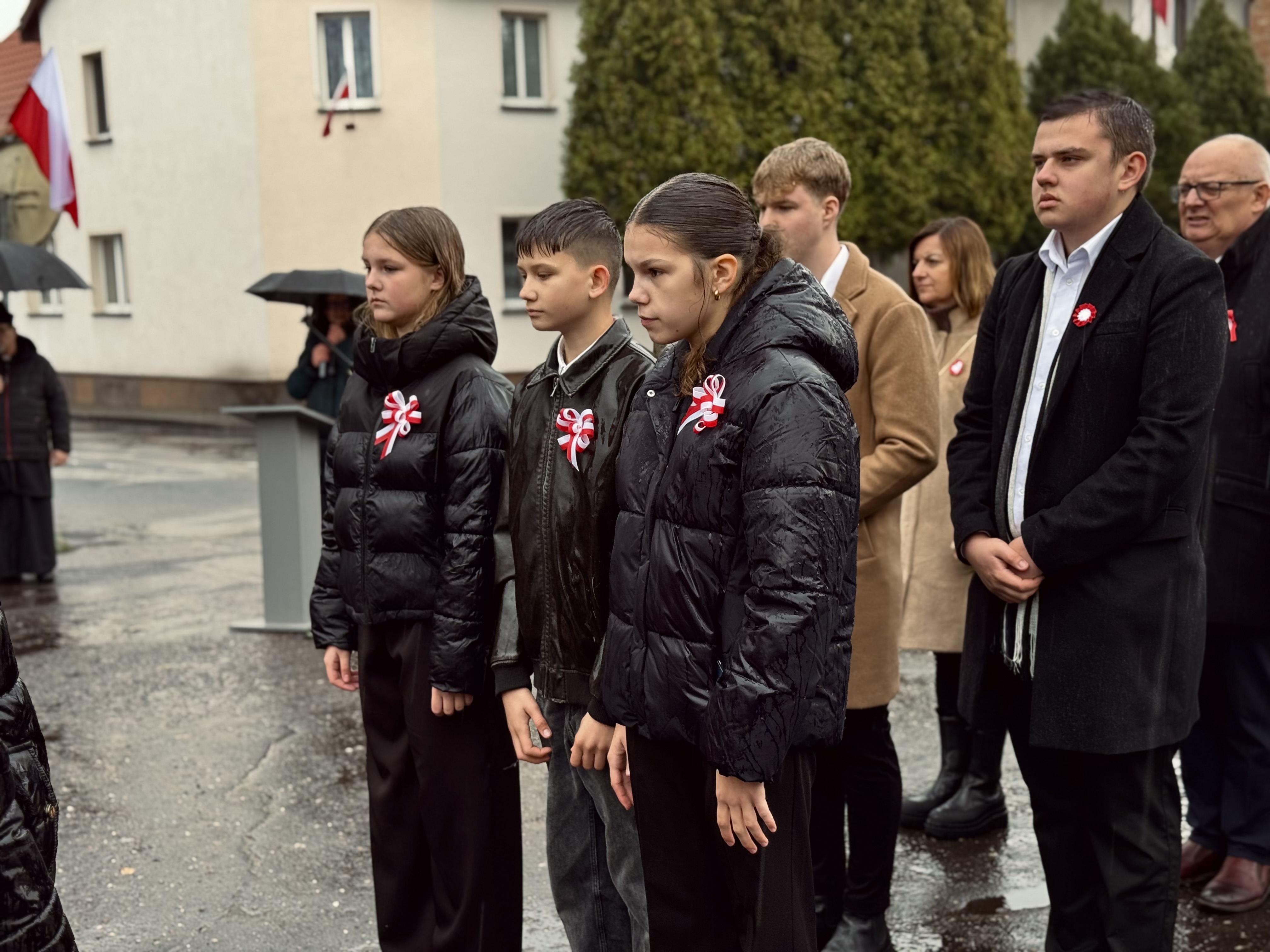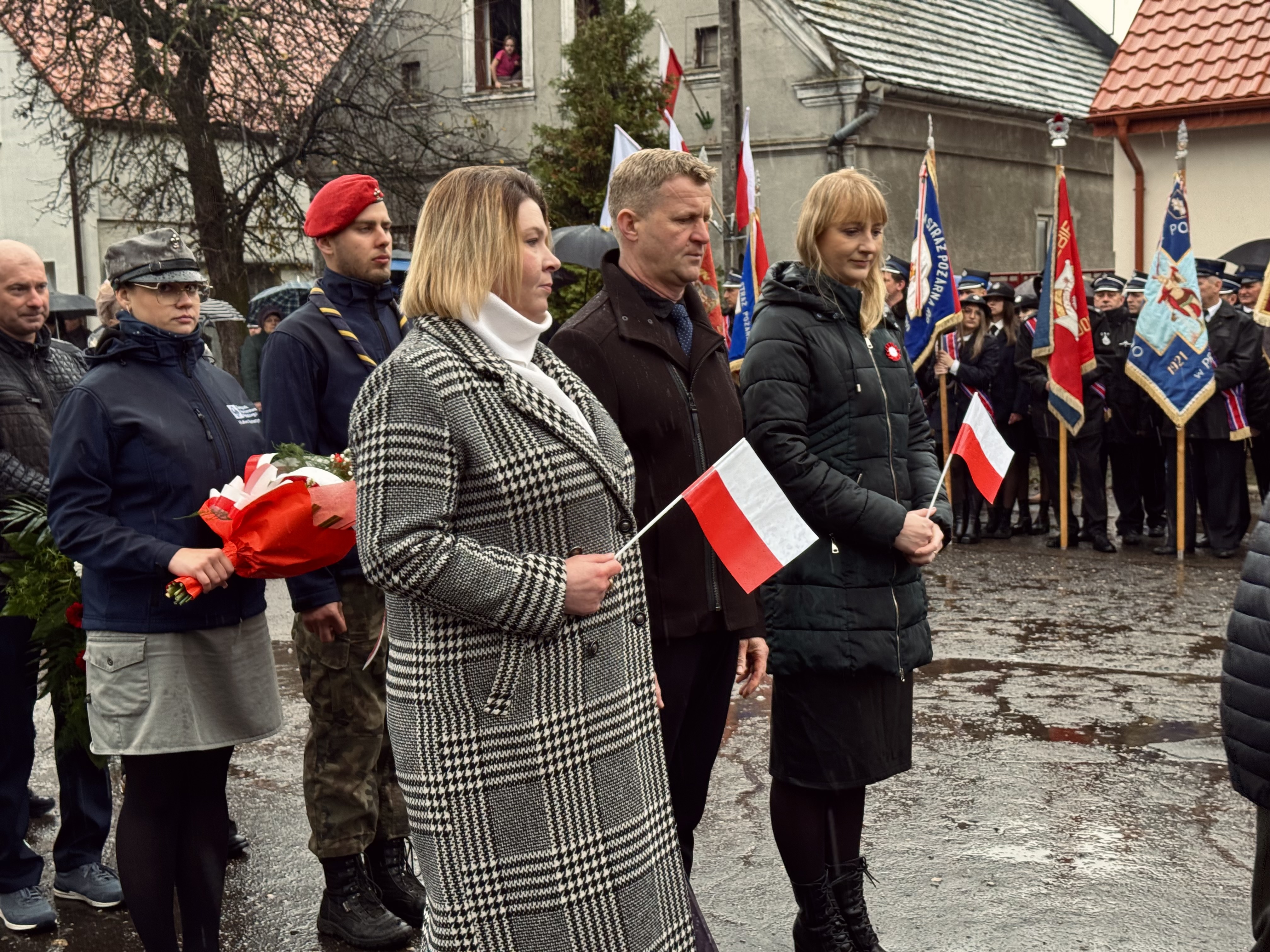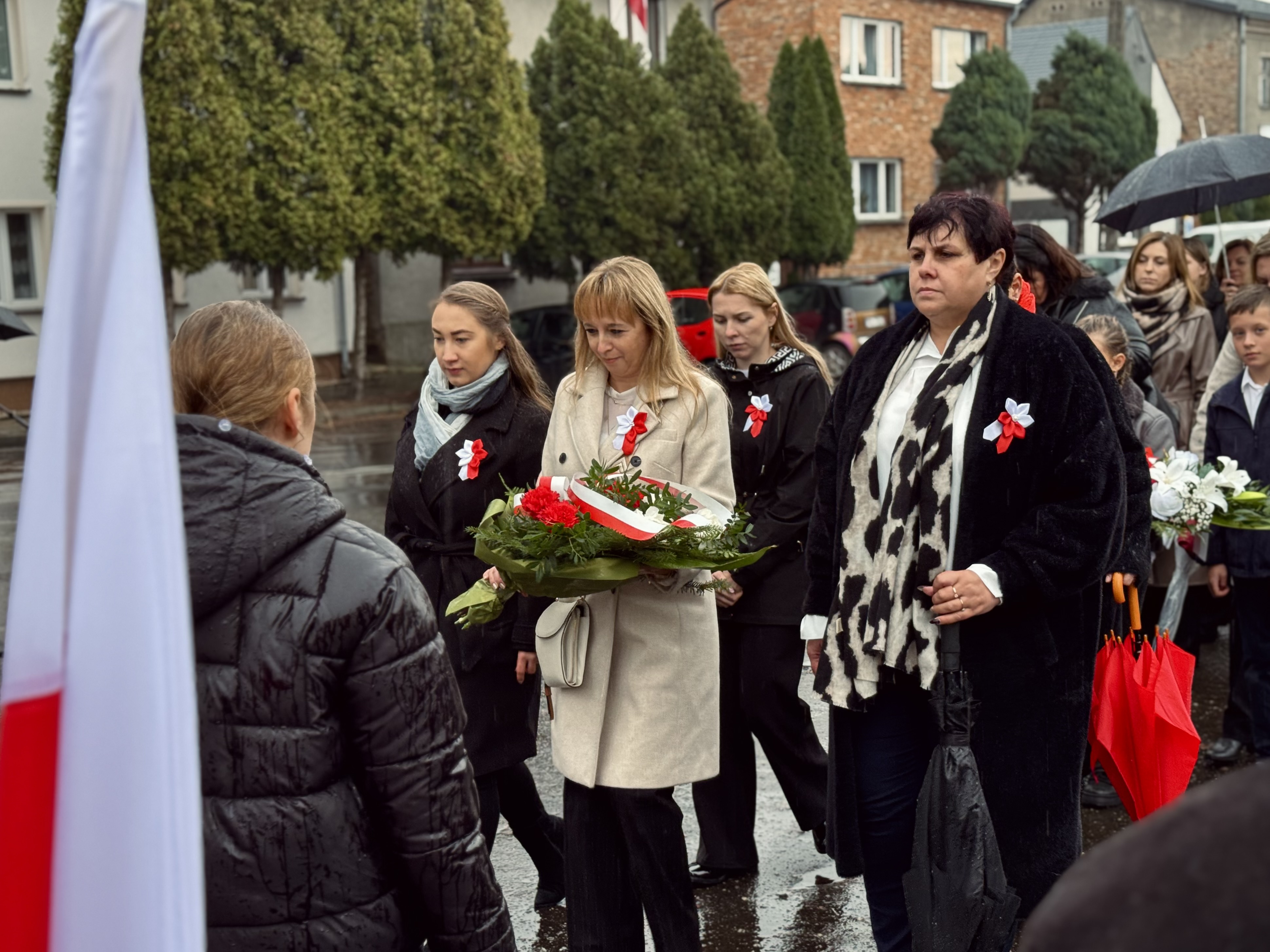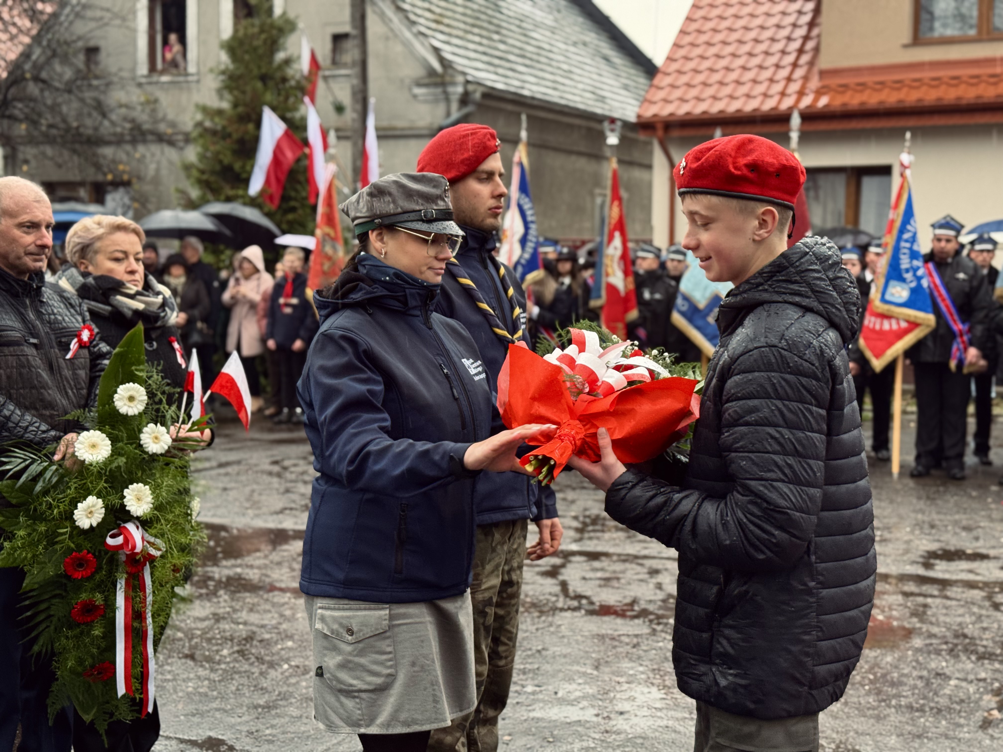 Przy pomniku poświęconym bohaterom walk o wolność Polski zgromadzonych powitała prowadząca uroczystość Agnieszka Klugiewicz. Następnie wspólnie odśpiewano Hymn Państwowy, a delegacje samorządowe, szkolne i społeczne złożyły wieńce i zapaliły znicze pamięci. W tle rozbrzmiewały patriotyczne utwory w wykonaniu orkiestry – „Mazurek Dąbrowskiego”, „Rota” oraz wiązanka pieśni ułańskich, które nadały wydarzeniu wyjątkowo podniosły charakter.