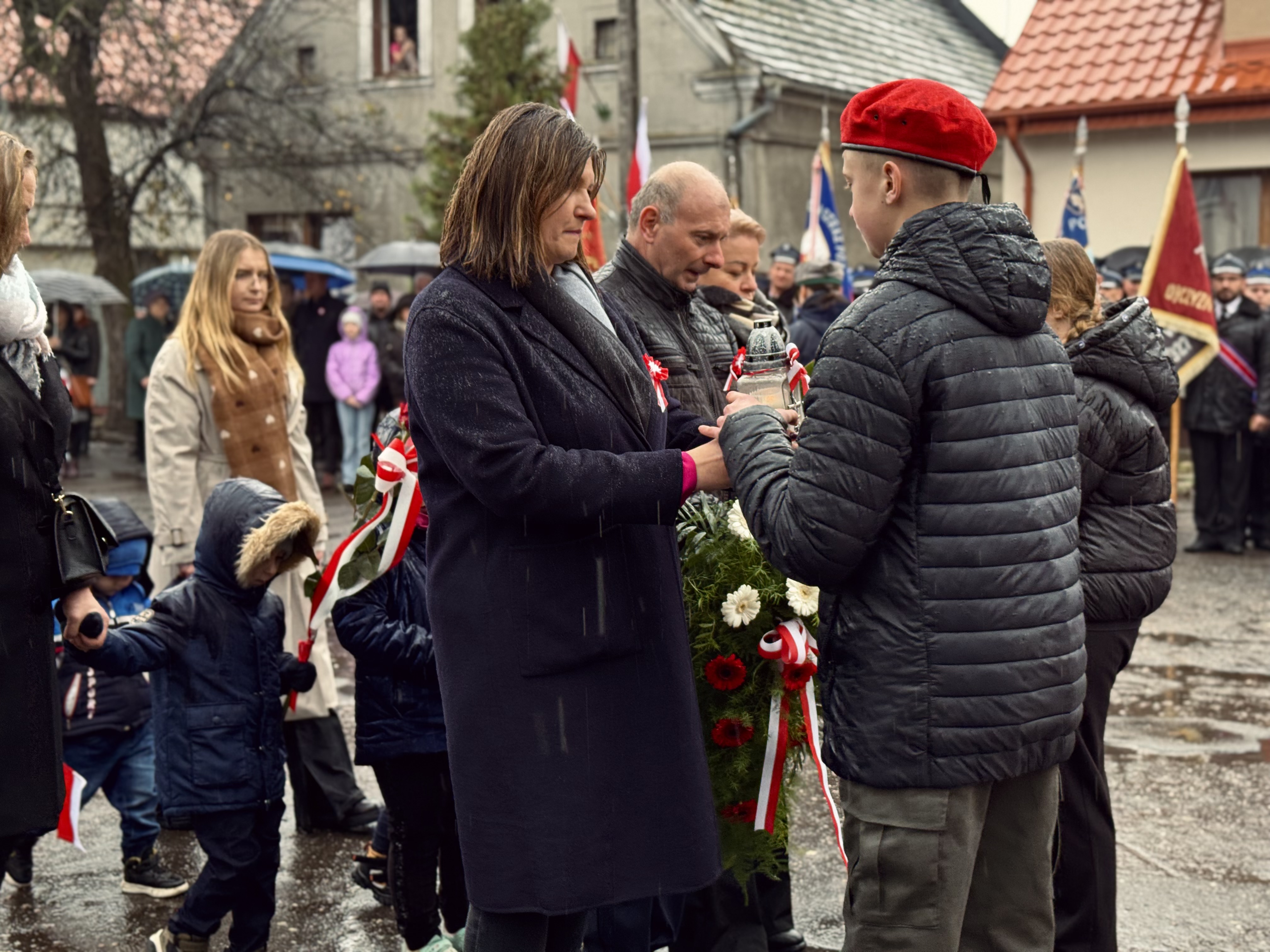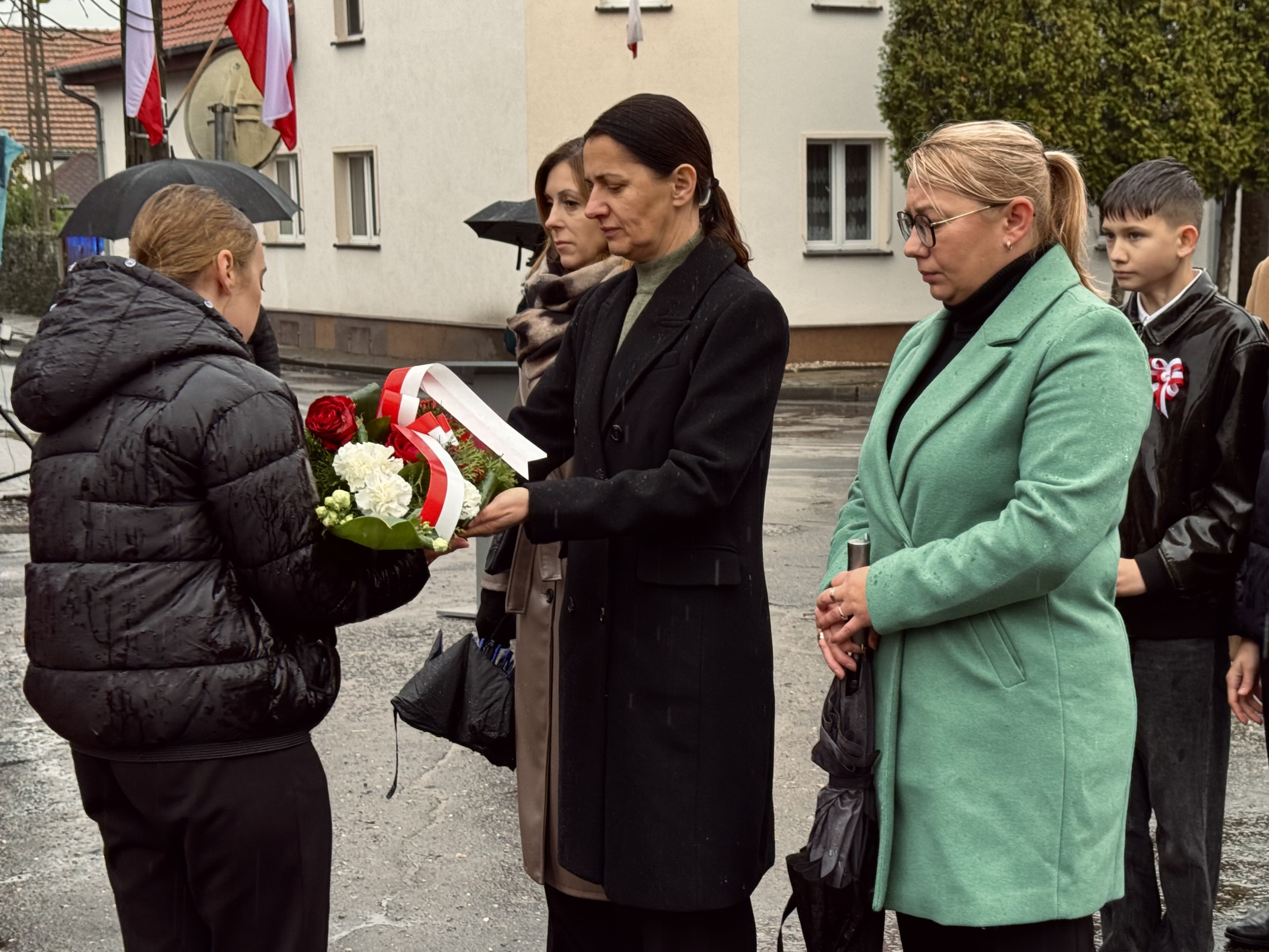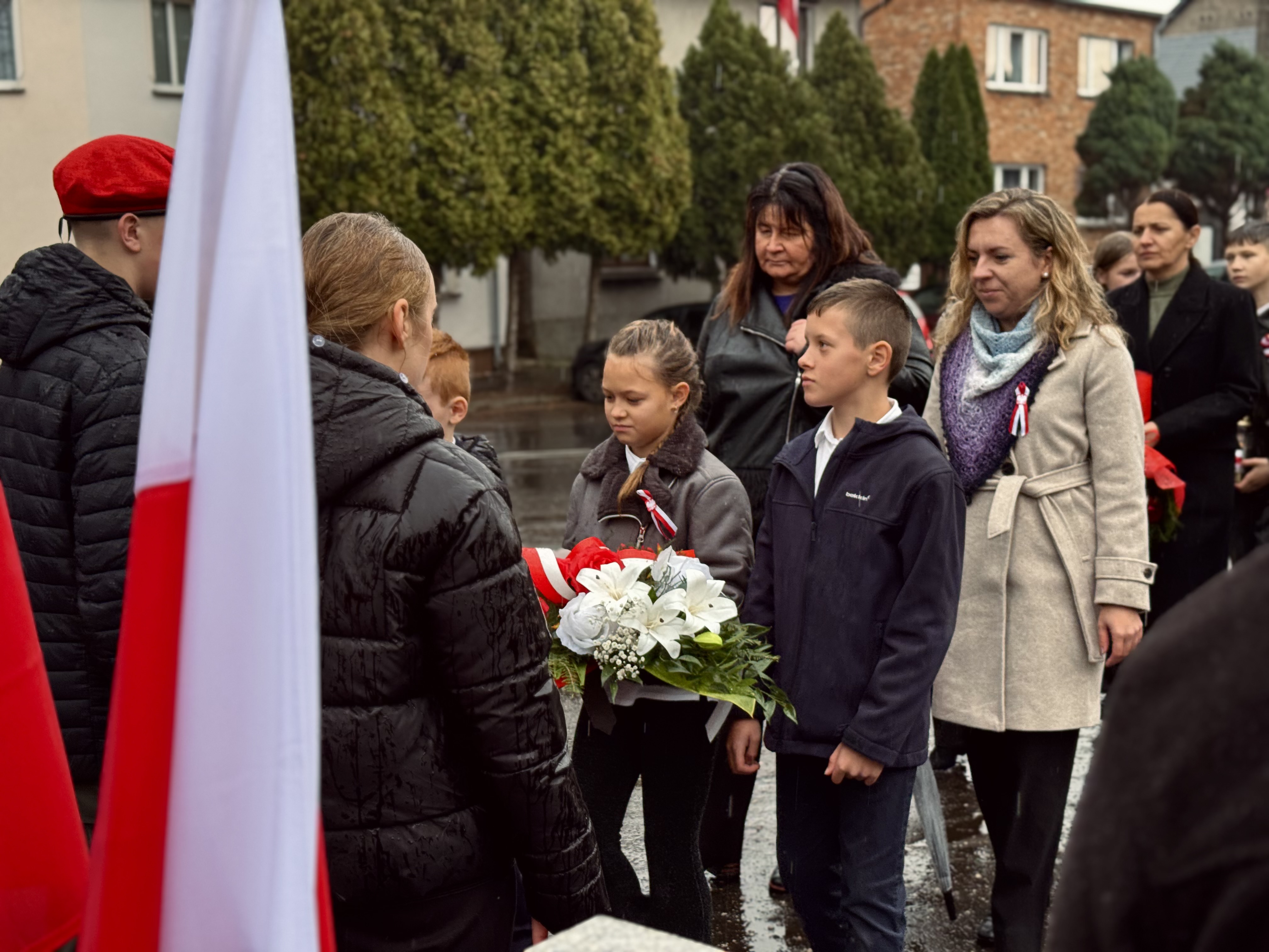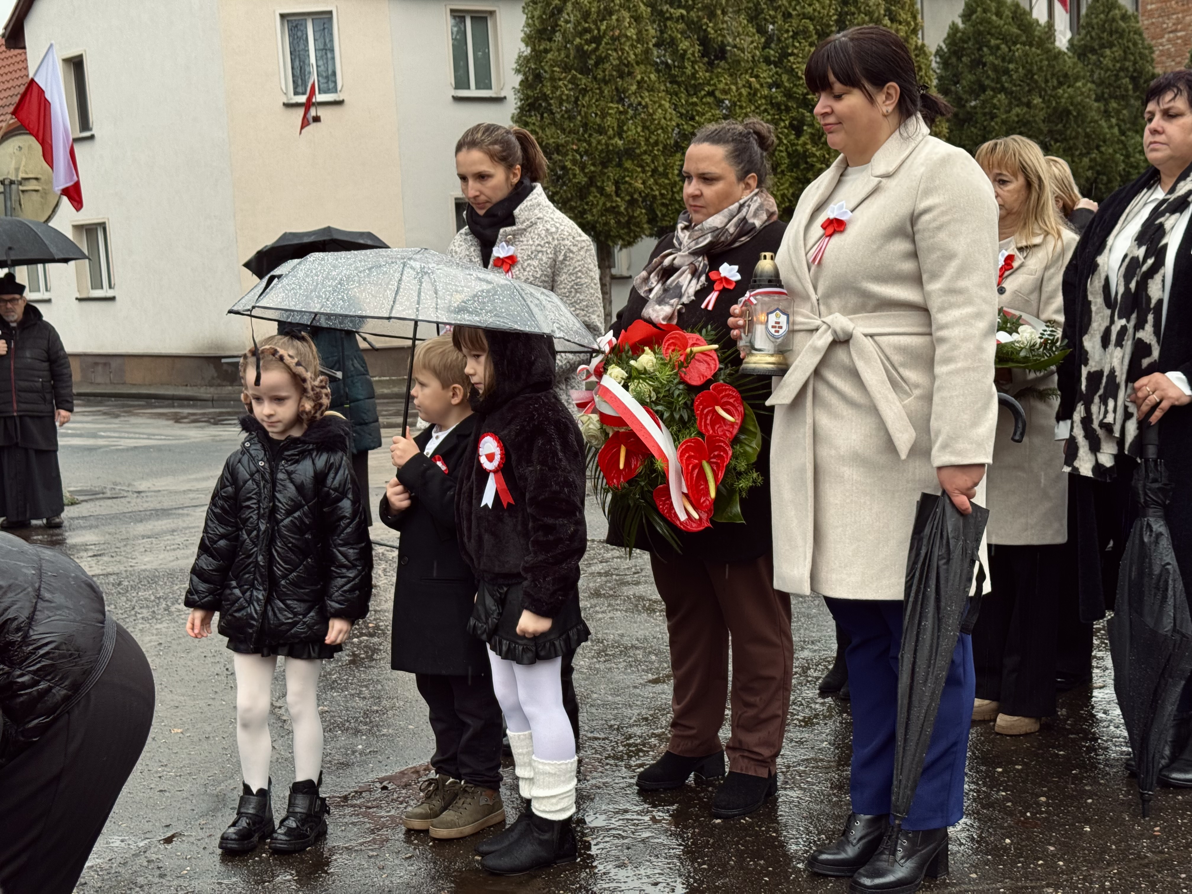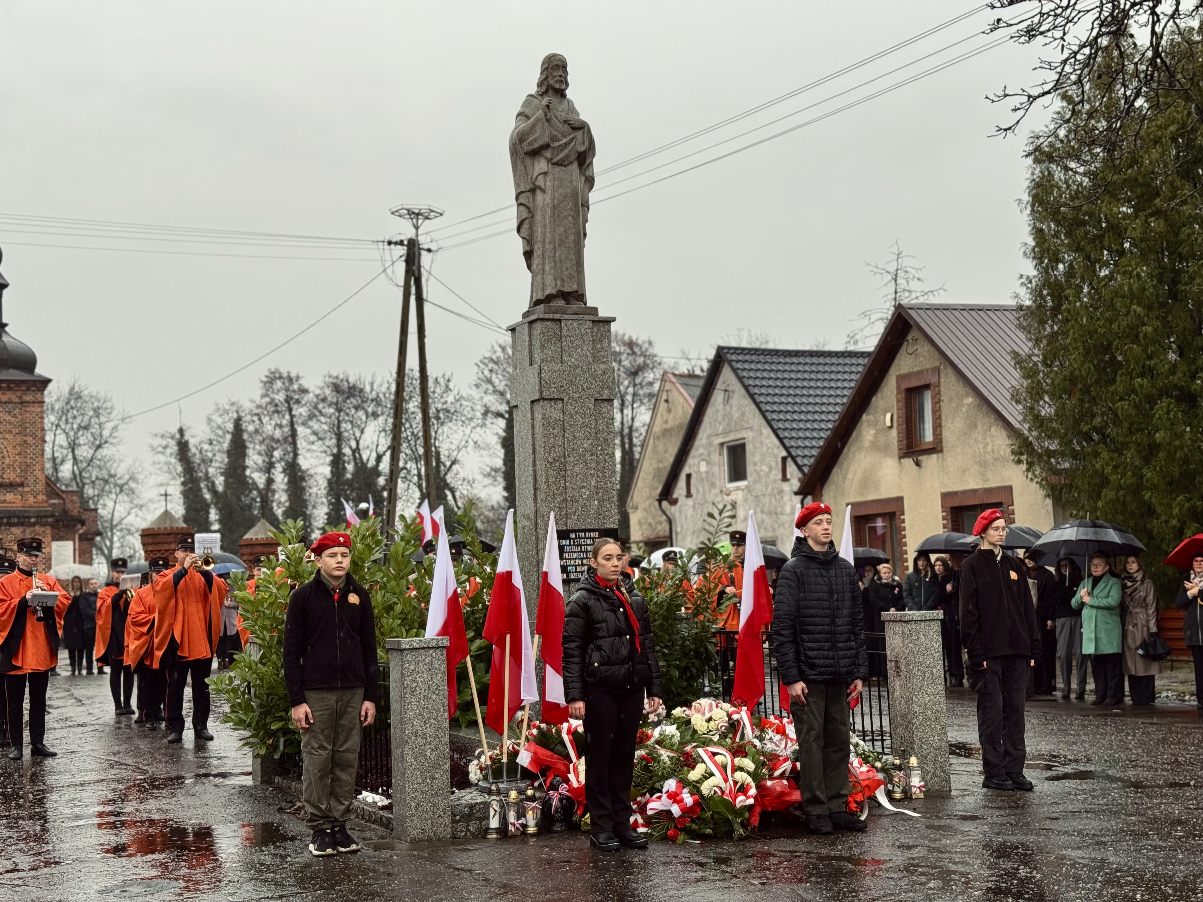 Przy pomniku poświęconym bohaterom walk o wolność Polski zgromadzonych powitała prowadząca uroczystość Agnieszka Klugiewicz. Następnie wspólnie odśpiewano Hymn Państwowy, a delegacje samorządowe, szkolne i społeczne złożyły wieńce i zapaliły znicze pamięci. W tle rozbrzmiewały patriotyczne utwory w wykonaniu orkiestry – „Mazurek Dąbrowskiego”, „Rota” oraz wiązanka pieśni ułańskich, które nadały wydarzeniu wyjątkowo podniosły charakter.