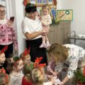 Wyjątkowym i wzruszającym momentem spotkania była także wizyta dzieci ze żłobka, które odwiedziły seniorów, wnosząc do sali radość i uśmiech.