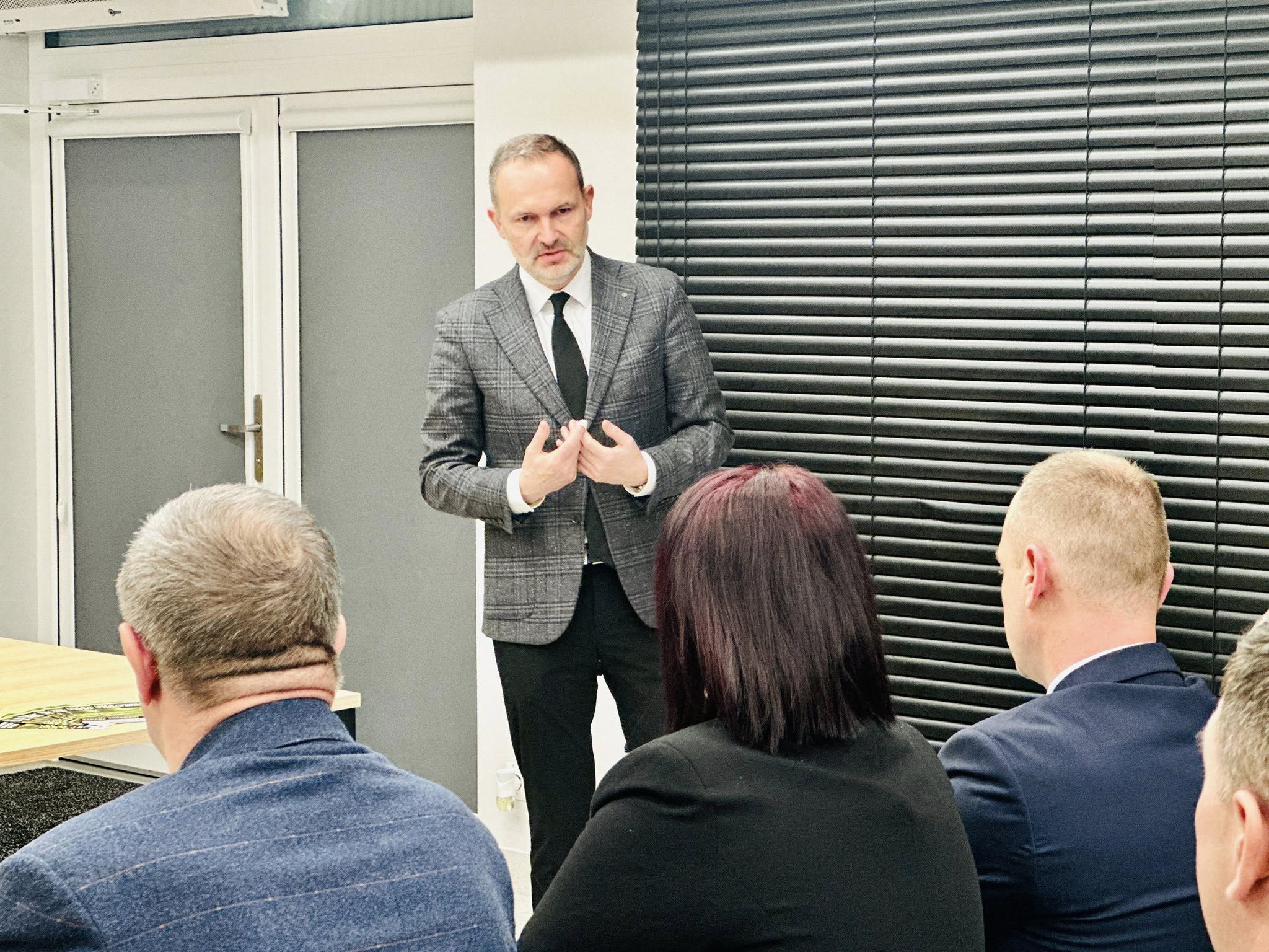 Głównym tematem spotkania była nowa perspektywa finansowa Unii Europejskiej na lata 2028–2034. Poseł Krzysztof Hetman omówił najważniejsze programy i instrumenty wsparcia, które w nadchodzących latach będą dostępne dla przedsiębiorców. Przybliżył także zasady ubiegania się o dotacje oraz kierunki, na które Unia Europejska kładzie szczególny nacisk – m.in. rozwój innowacji, cyfryzację oraz działania proekologiczne.