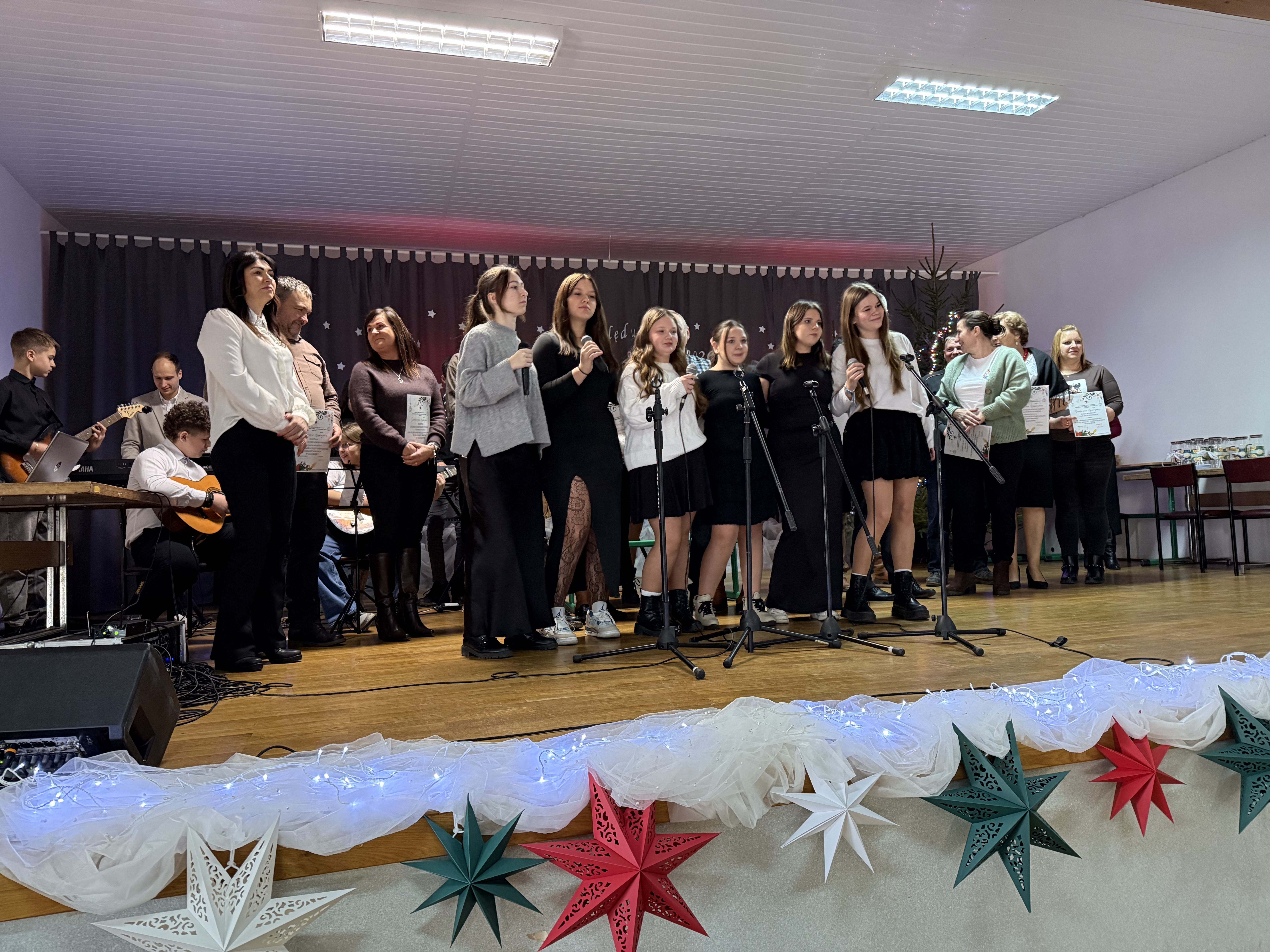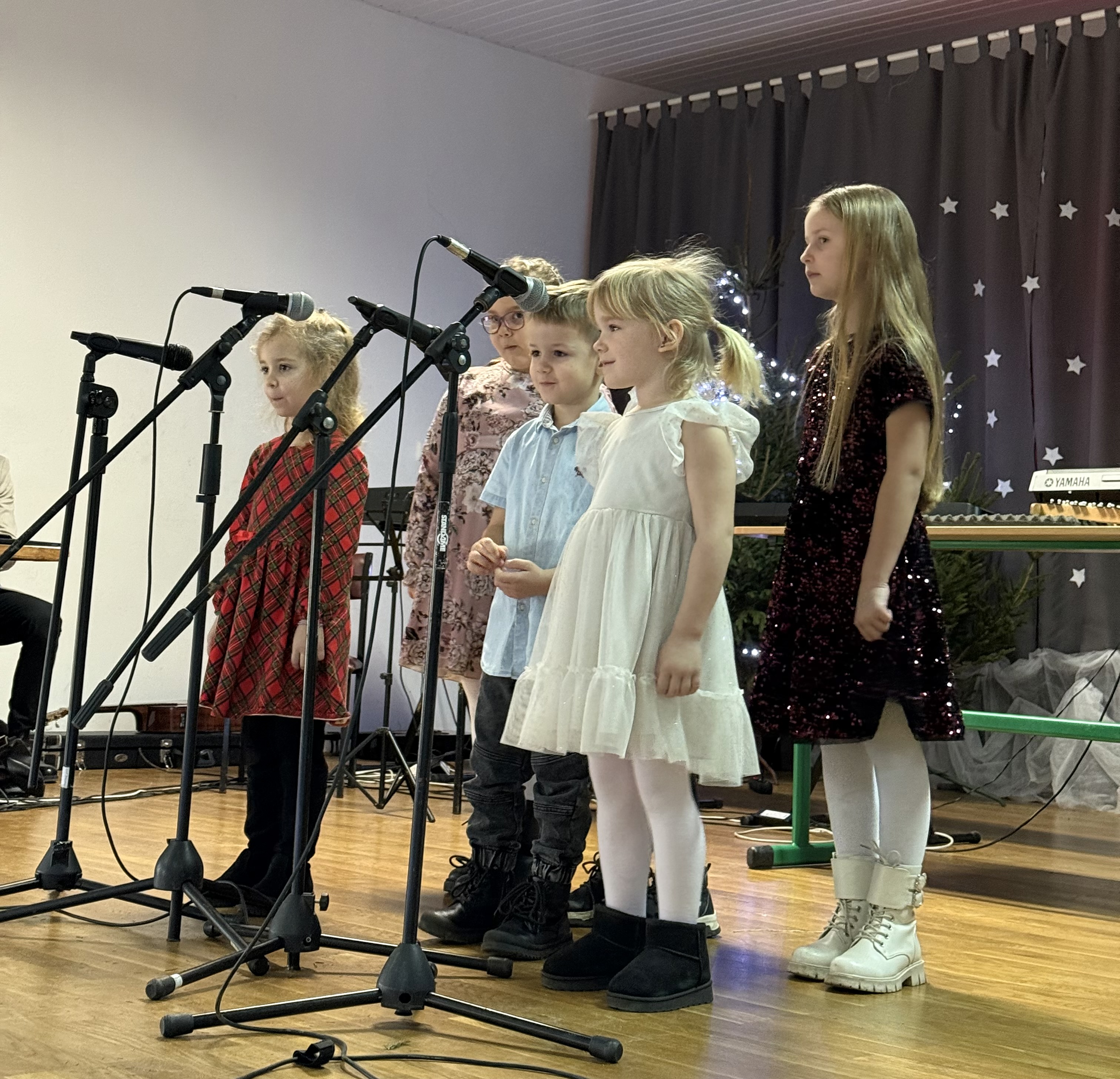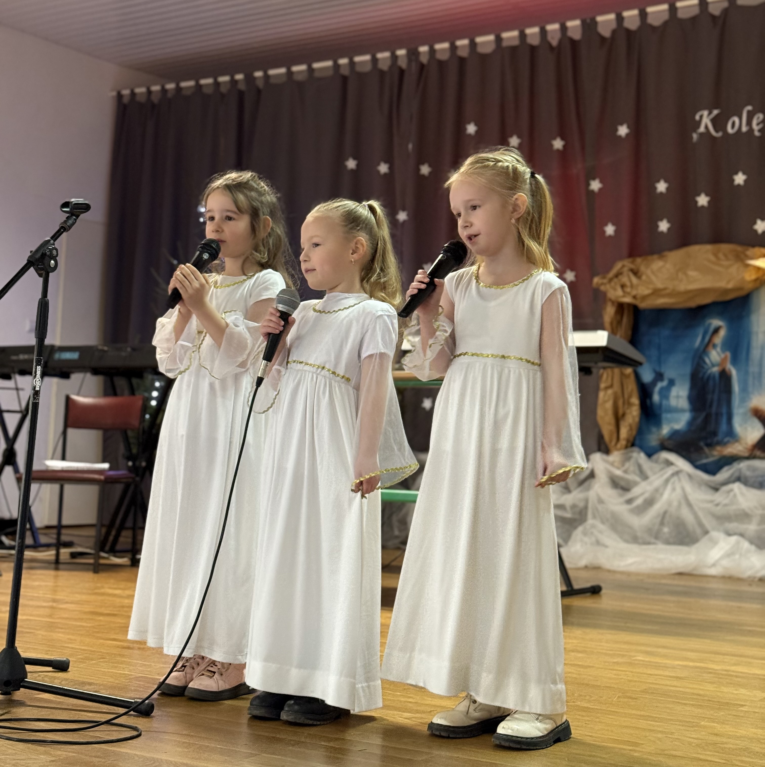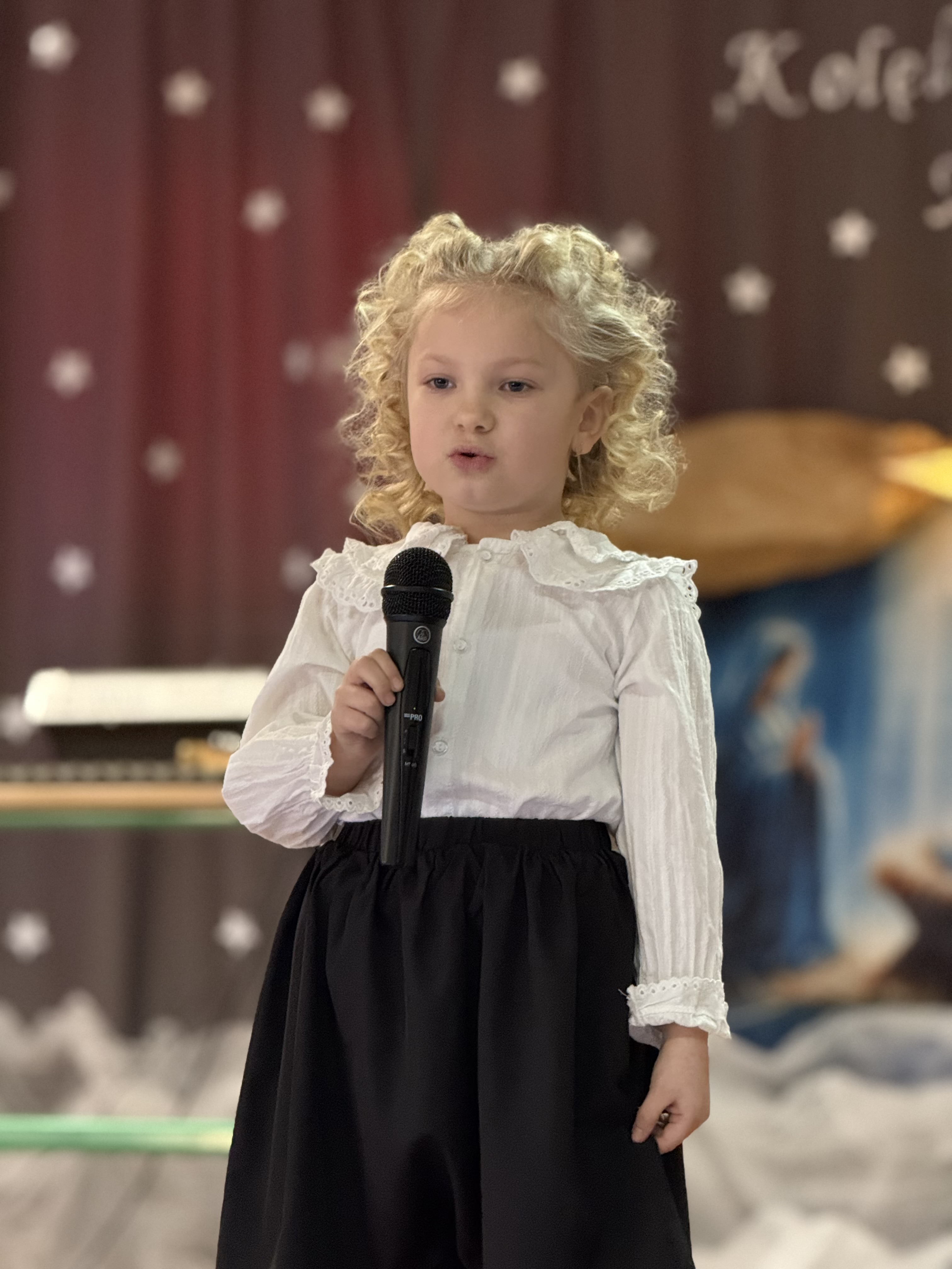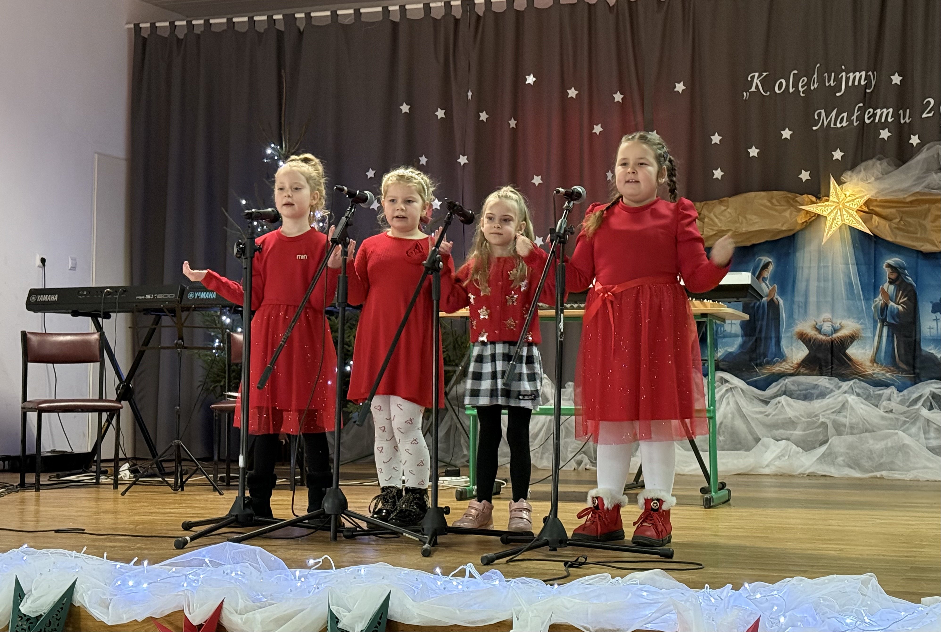 Jako pierwsi na scenie zaprezentowali się najmłodsi uczestnicy. Przedszkolacy swoją naturalną radością, szczerością i dziecięcym entuzjazmem szybko zdobyli sympatię publiczności. Następnie wystąpiły starsze klasy, prezentując dopracowane aranżacje oraz umiejętności wokalne i instrumentalne, będące efektem wielu tygodni prób i przygotowań. Na scenie zaprezentowali się również seniorzy, którzy wykonali piękną kolędę „Józefie, stajenki nie szukaj”.