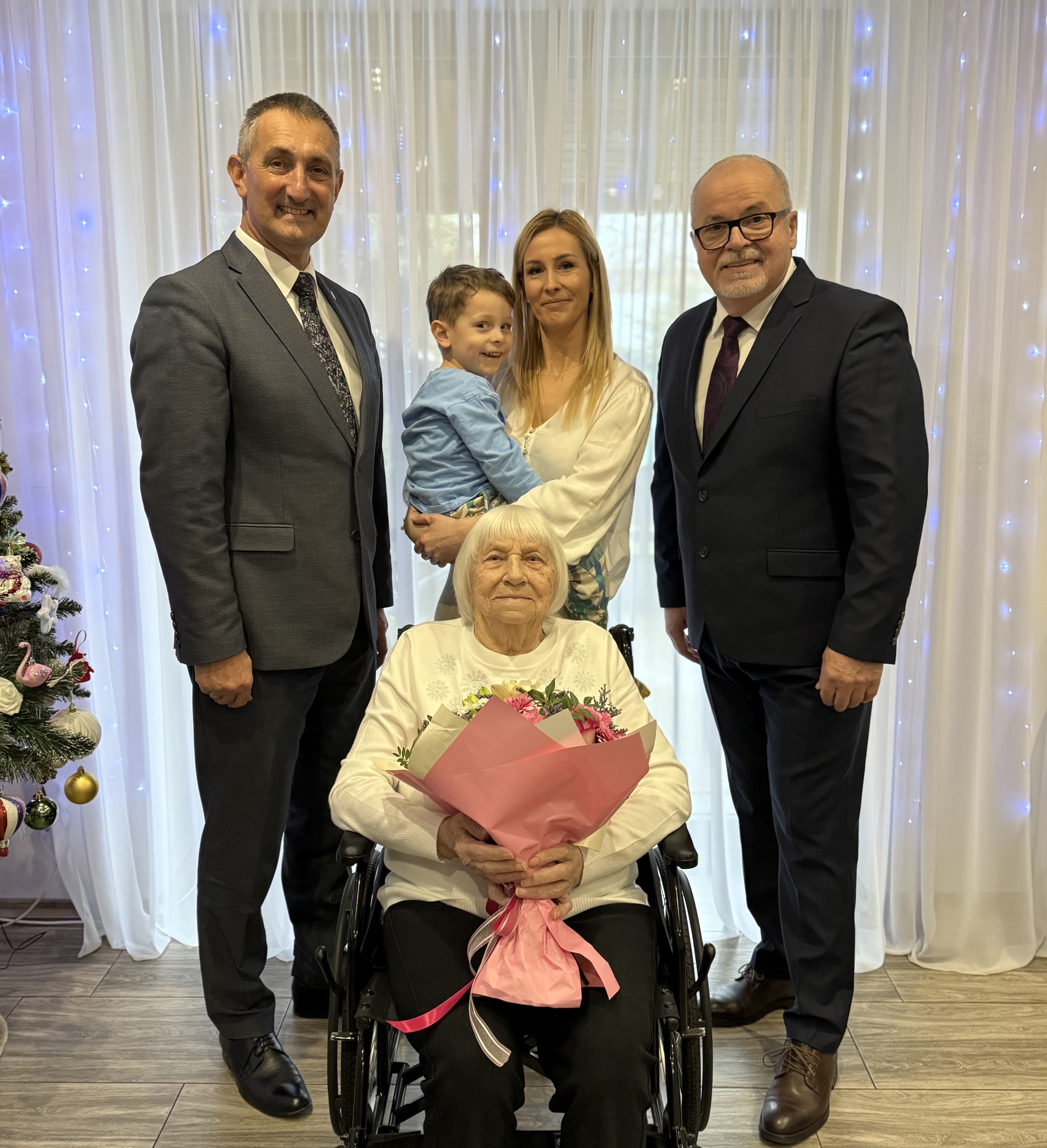 Z tej okazji w czwartek, 15 stycznia, Jubilatkę odwiedził wójt gminy Przemęt Janusz Frąckowiak. Tradycyjnie przybył z bukietem kwiatów, życzeniami oraz upominkiem. Wizyta przebiegała w ciepłej, rodzinnej atmosferze i była okazją do rozmów o bogatym życiu Pani Jadwigi, jej doświadczeniach oraz codziennych radościach.