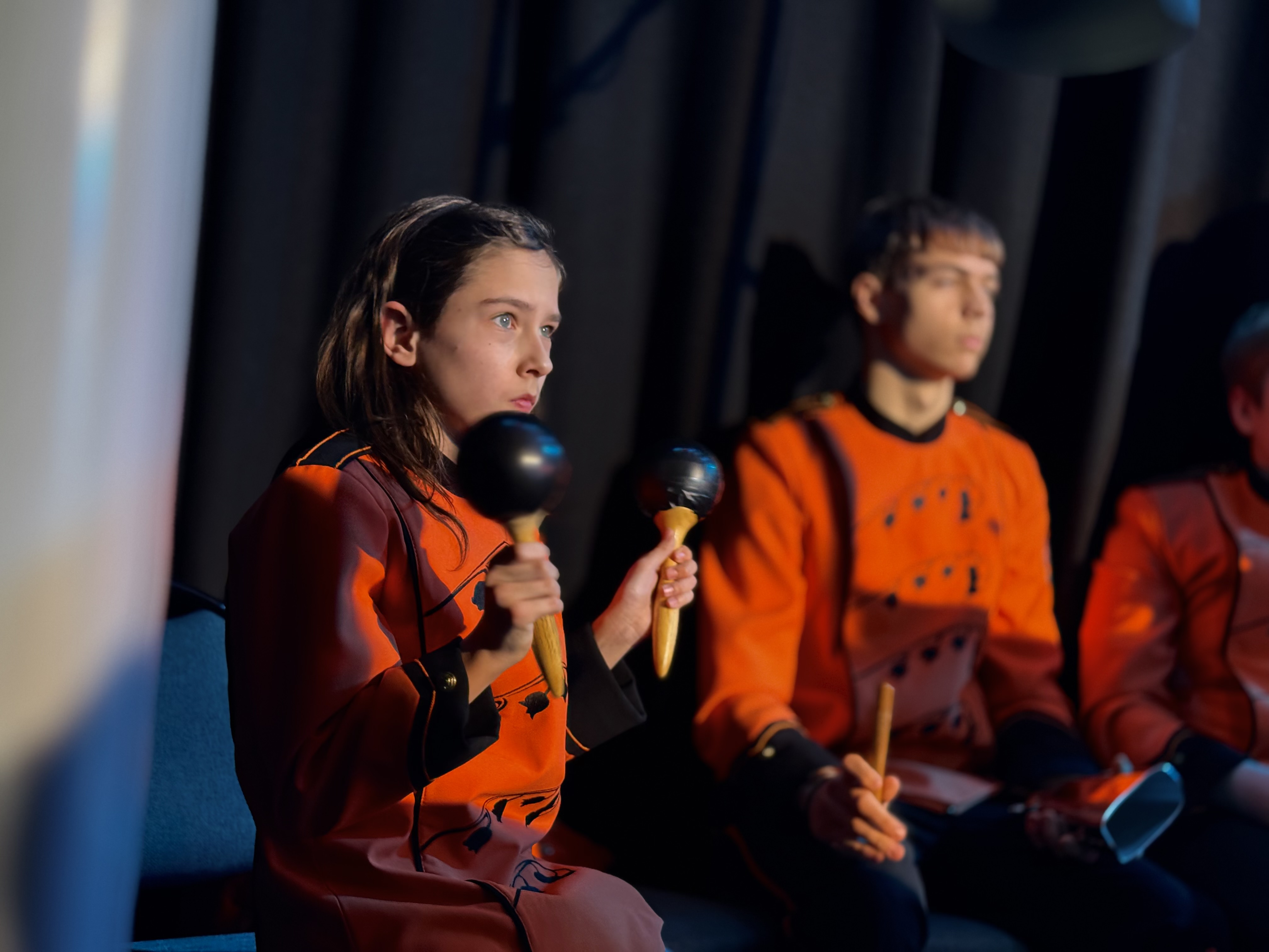 Na samym początku na scenie pojawili się najmłodsi muzycy, którzy niedawno rozpoczęli swoją przygodę z orkiestrą. Wspólnie z całym zespołem wykonali utwór „Mah na mah na”, otwierając koncert i symbolicznie rozpoczynając muzyczną podróż od prehistorii.