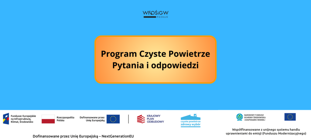 Program „Czyste Powietrze” budzi wiele pytań i wątpliwości wśród osób planujących złożenie wniosku o dofinansowanie. Aby ułatwić Beneficjentom przejście przez cały proces oraz rozwiać najczęściej pojawiające się niejasności, specjaliści z Wojewódzkiego Funduszu Ochrony Środowiska i Gospodarki Wodnej w Poznaniu przygotowali zestaw najważniejszych pytań i odpowiedzi. Mamy nadzieję, że poniższe wyjaśnienia pomogą sprawnie przygotować wniosek i skorzystać z dostępnego wsparcia.