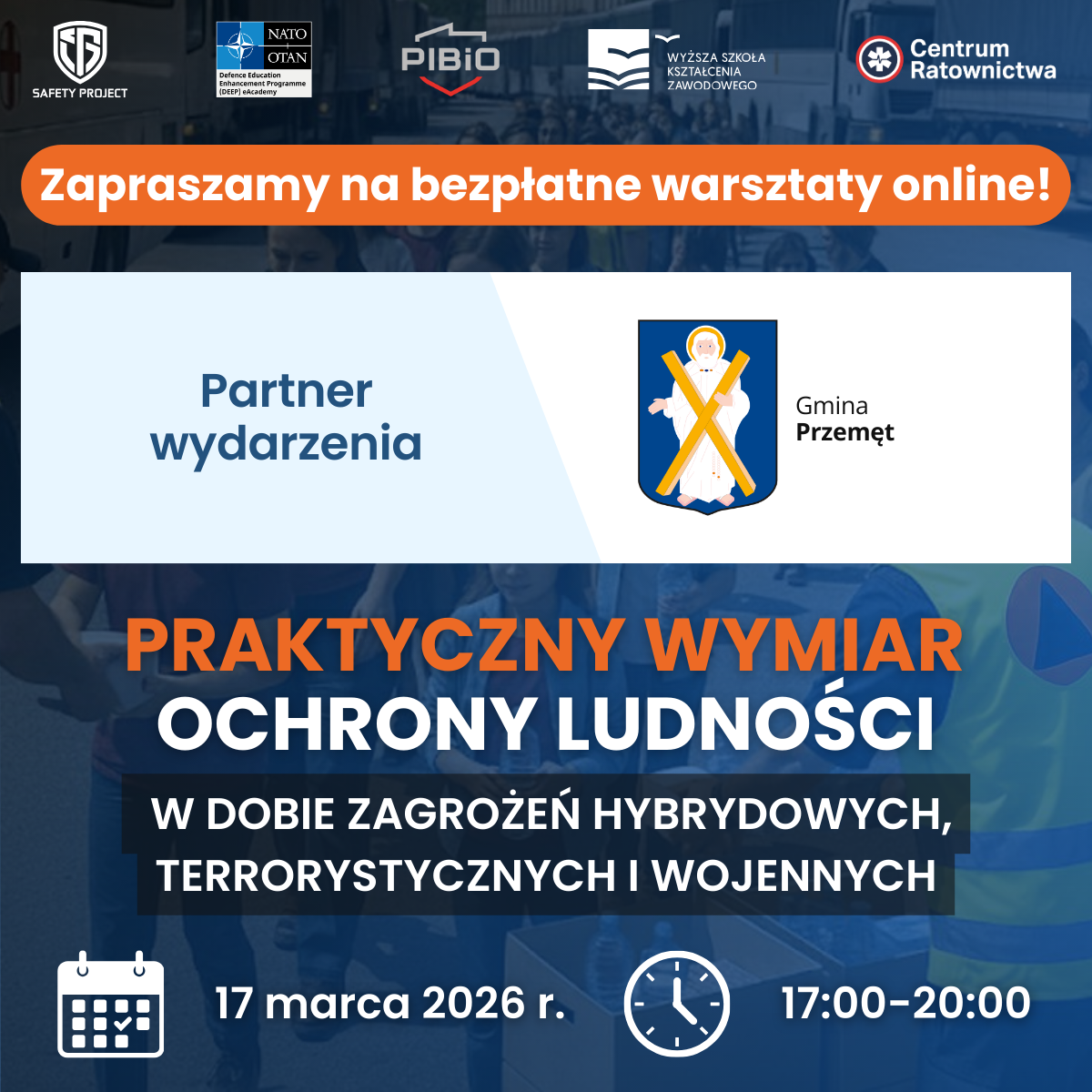 Już 17 marca 2026 r. w godzinach 17:00–20:00 odbędą się bezpłatne i certyfikowane warsztaty online pt. „Praktyczny wymiar ochrony ludności w dobie zagrożeń hybrydowych, terrorystycznych i wojennych”. Zachęcamy do rejestracji poprzez stronę: