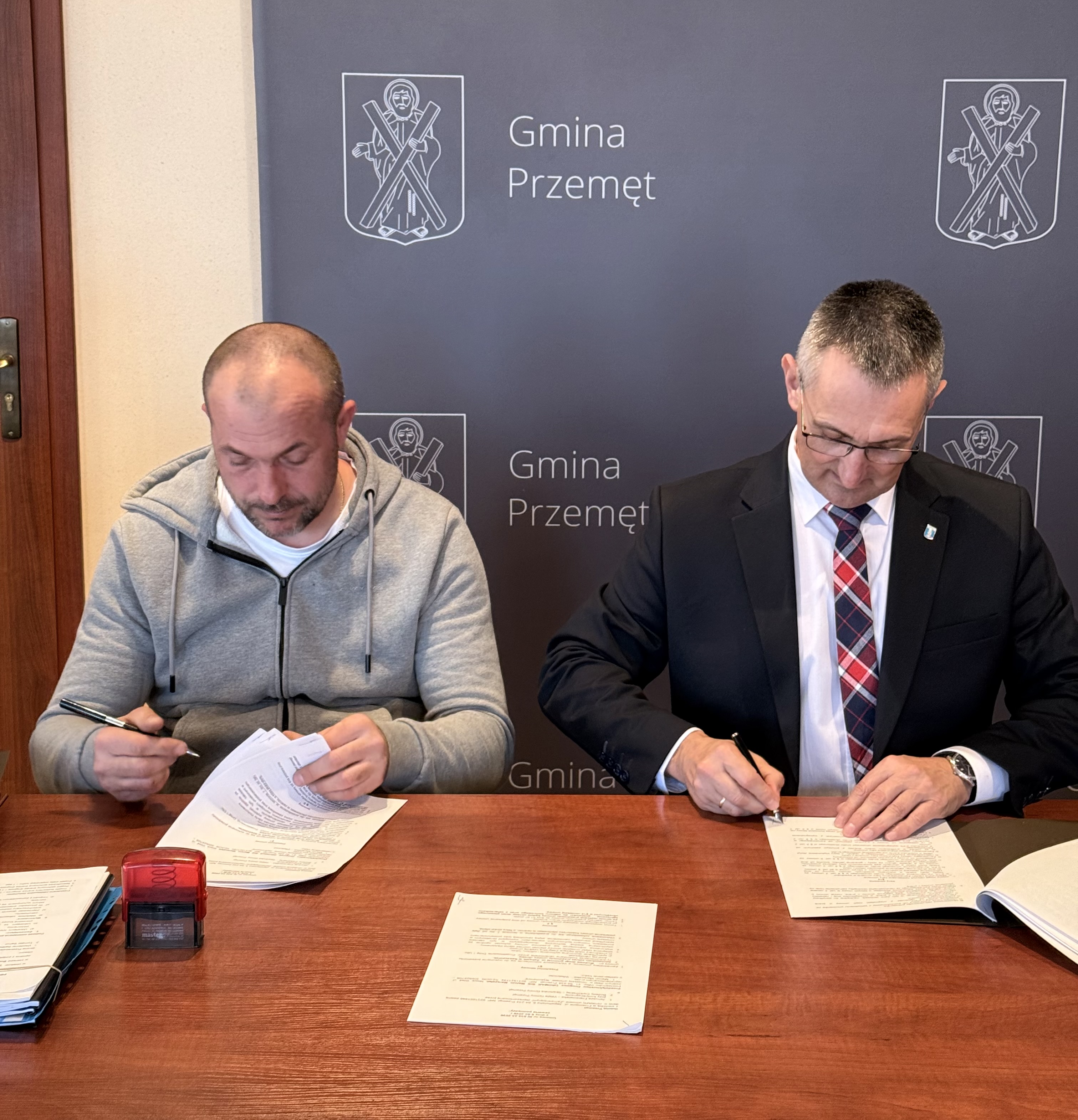 Dwie z zaplanowanych inwestycji zostaną zrealizowane w Perkowie. Pierwsza z nich dotyczy budowy drogi gminnej przy ul. Krętej. Zadanie wykona firma FUH Brukarstwo-HC Henryk Cieplik z Leszna, reprezentowana przez pełnomocnik Katarzynę Mocek. Wartość zawartej umowy wynosi 49 607,13 zł brutto.
