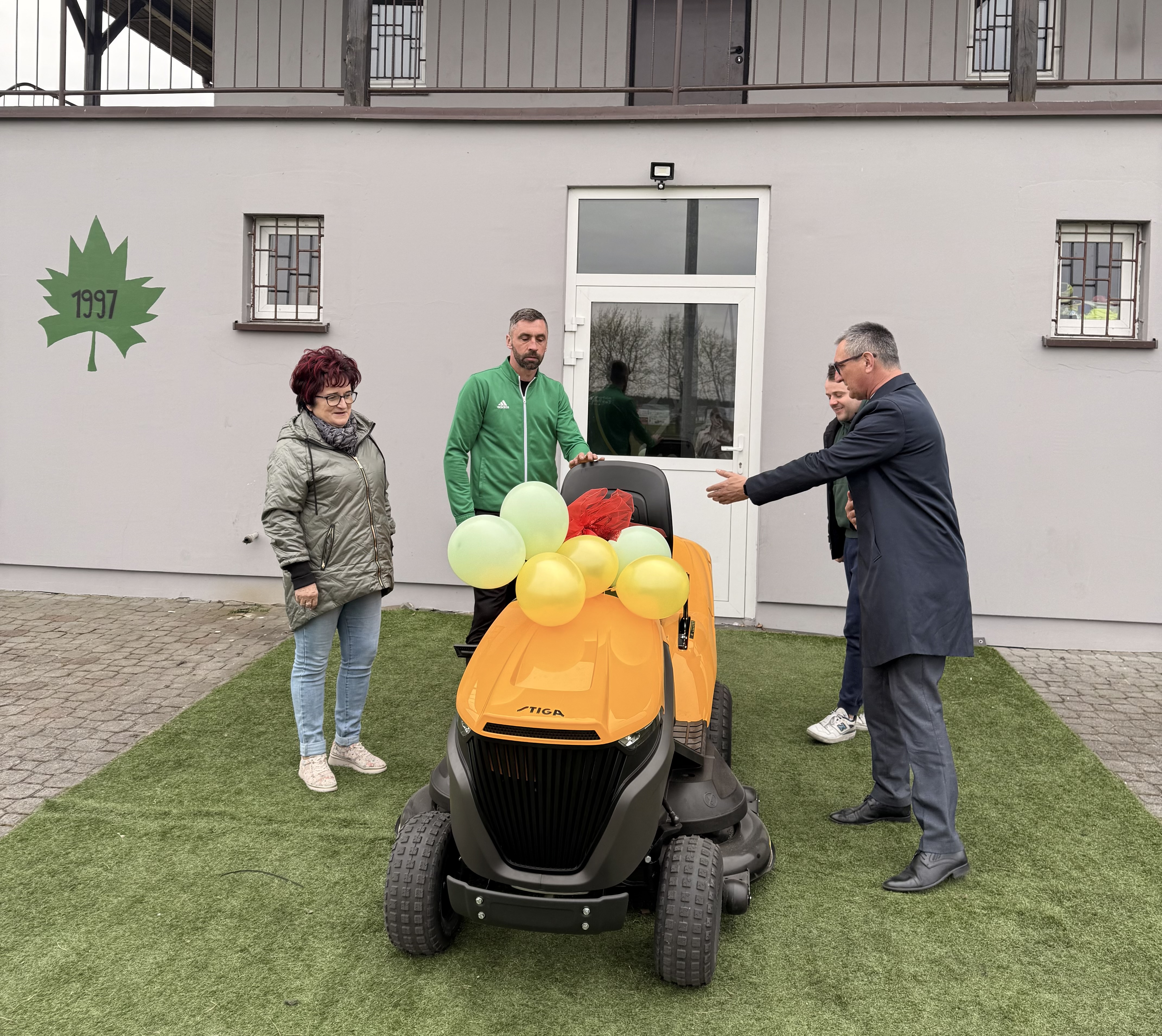 Przekazanie kosiarki miało miejsce w poniedziałek, 13 kwietnia. Wójt gminy Przemęt Janusz Frąckowiak, w towarzystwie wiceprzewodniczącej Rady Gminy Elżbiety Wity, symbolicznie wręczył sprzęt prezesowi Klubu Sportowego Rywal Klon Mochy Łukaszowi Kupczykowi.