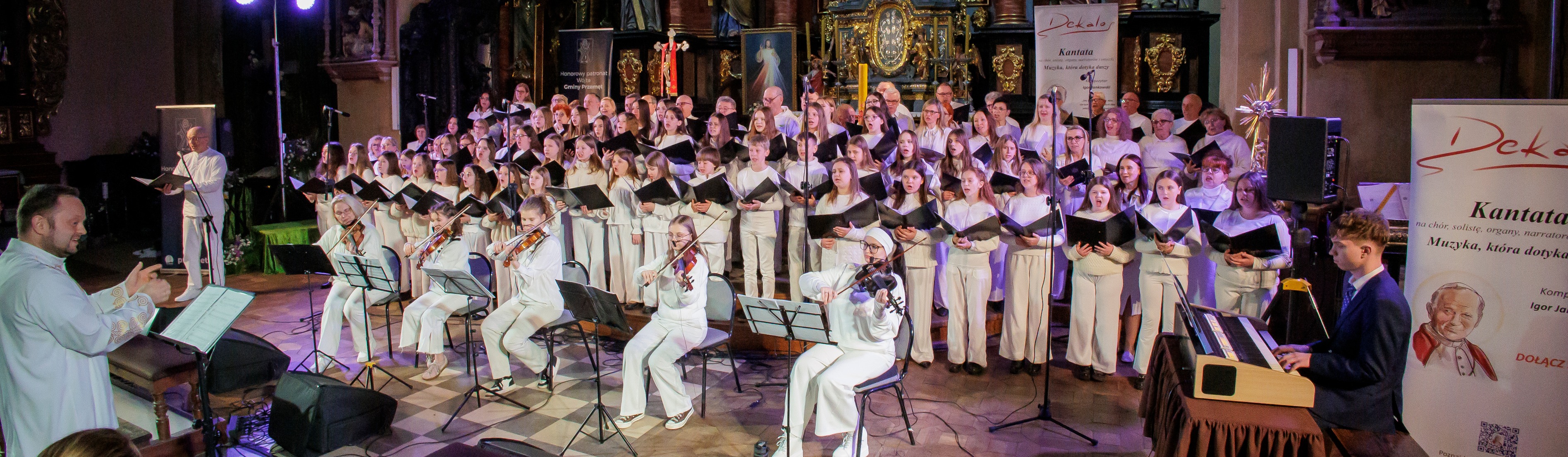 Kantata „Dekalog” to dzieło autorstwa Igora Jankowskiego, który podczas koncertu stanął również za pulpitem dyrygenckim. Utwór, skomponowany na chór, solistę, organy, smyczki i narratorów, stanowi muzyczną interpretację dziesięciu przykazań – uniwersalnych zasad będących fundamentem życia społecznego i duchowego. Wykonanie w przestrzeni świątyni dodatkowo wzmocniło jego przekaz, tworząc atmosferę skupienia i refleksji.