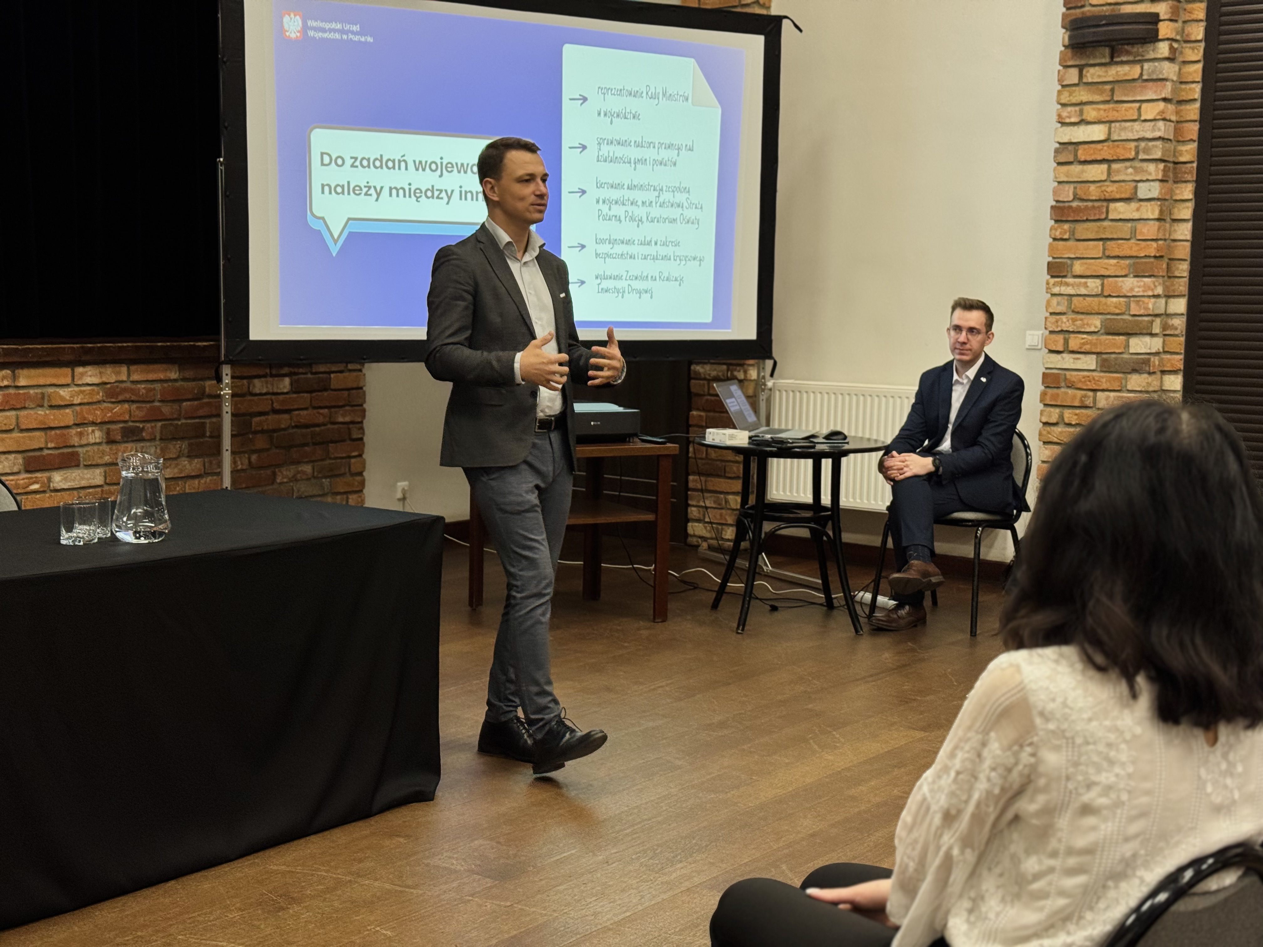 Prelegentem był dyrektor gabinetu wojewody wielkopolskiego Piotr Pałczyński. Obecny był również Dawid Murek, doradca gabinetu wojewody.