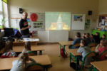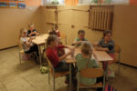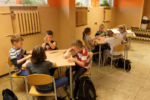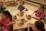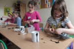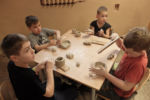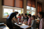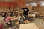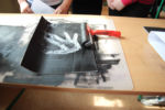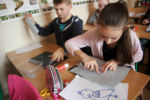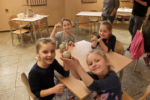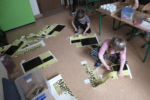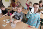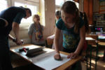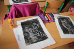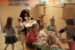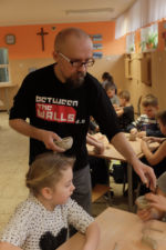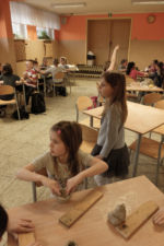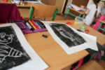 Co można zobaczyć na warsztatach? Zdecydowanie twórczą zabawę, odkrywanie świata (w tym literatury i sztuki) i jego opisywanie z perspektywy dziecka i młodzieży. To wrażenie zostaje przetransponowane na działania plastyczne. Zaplanowano realizację 14 warsztatów twórczych z ceramiki, grafiki warsztatowej – linorytu oraz malarstwa. Za nami już wiele godzin lepienia i toczenia na kole garncarskim, co sprawiało uczestnikom ogromną frajdę. Dzieci są w trakcie zdobienie porcelanowych naczyń kalkomanią ceramiczną i poznawania linorytu jako techniki druku wypukłego. Uczestnicy warsztatów bardzo żywiołowo reagują na techniki pracy twórczej, których wcześniej nie mieli możliwości poznać i doświadczać. Są dumni z swoich dokonań. Przed nami m.in. majowe międzypokoleniowe warsztaty rodzinne z malarstwa i grafiki warsztatowej. Dodatkową ciekawostką i niebagatelną atrakcją będzie wypał prac ceramicznych (lepionych, toczonych) w piecu plenerowym na terenie szkoły, na co zapraszamy wszystkich chętnych. Będzie to wielogodzinne spotkanie z możliwością wymiany doświadczeń, czy obserwowania procesów zachodzących w „wysokich temperaturach”.