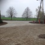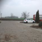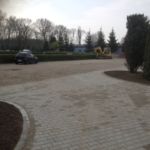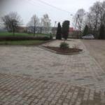Istniejący parking został przebudowany z uwagi na potrzebę wykonania miejsca zajazdowego dla autobusu dowożącego dzieci do Zespołu Szkół.