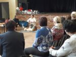 Druga część wykładu miała charakter warsztatów. Seniorzy dowiedzieli się jak udzielić pierwszej pomocy osobie, która nie oddycha i/lub ma zatrzymaną akcję serca. Każdy z uczestników miał okazję poćwiczyć resuscytację krążeniowo-oddechową na specjalnym fantomie.