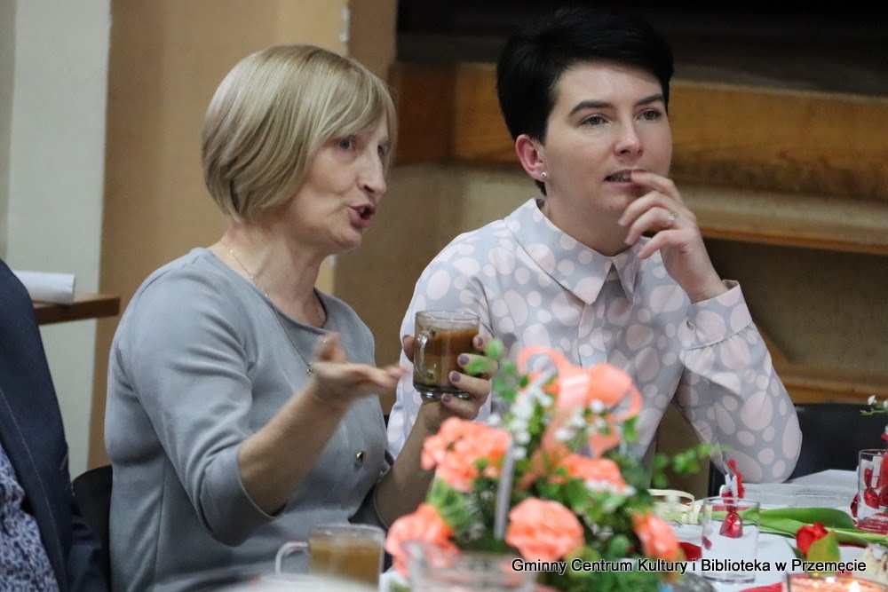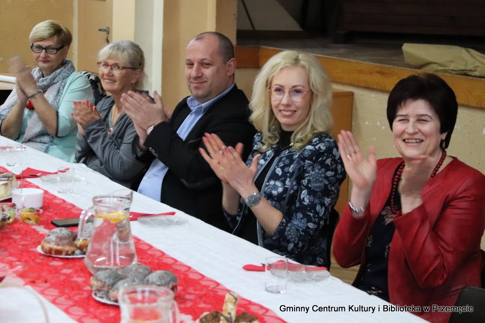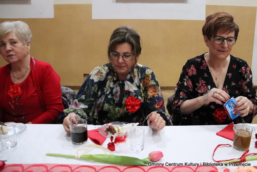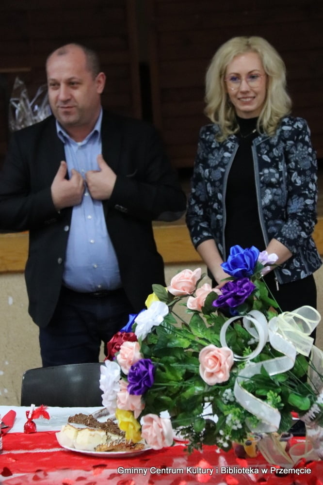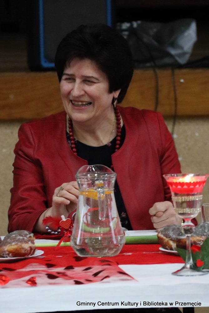 Niepowtarzalne dekoracje – dbałość o każdy szczegół, to dzieło pań z sekcji rękodzieła. Nie zabrakło muzyki, wspólnego śpiewu i tańców. W Walentynki najważniejsza była jednak obecność i możliwość spędzenia wspólnie czasu. Na uroczystość przybyli również goście – Agnieszka Kędziora – Dyrektor Gminnego Centrum Kultury i Biblioteki w Przemęcie oraz Grzegorz Aryż – Sekretarz, który reprezentował Wójta Gminy Przemęt Janusza Frąckowiaka. Nie zabrakło podziękowań, gratulacji i życzeń dalszej prężnej działalności. Władze gminy nie zapomniały o upominkach – na stołach były już słodycze, ale jak wiadomo – ich nigdy dosyć! Był więc słodki upominek oraz kwiaty dla słuchaczy UTW.