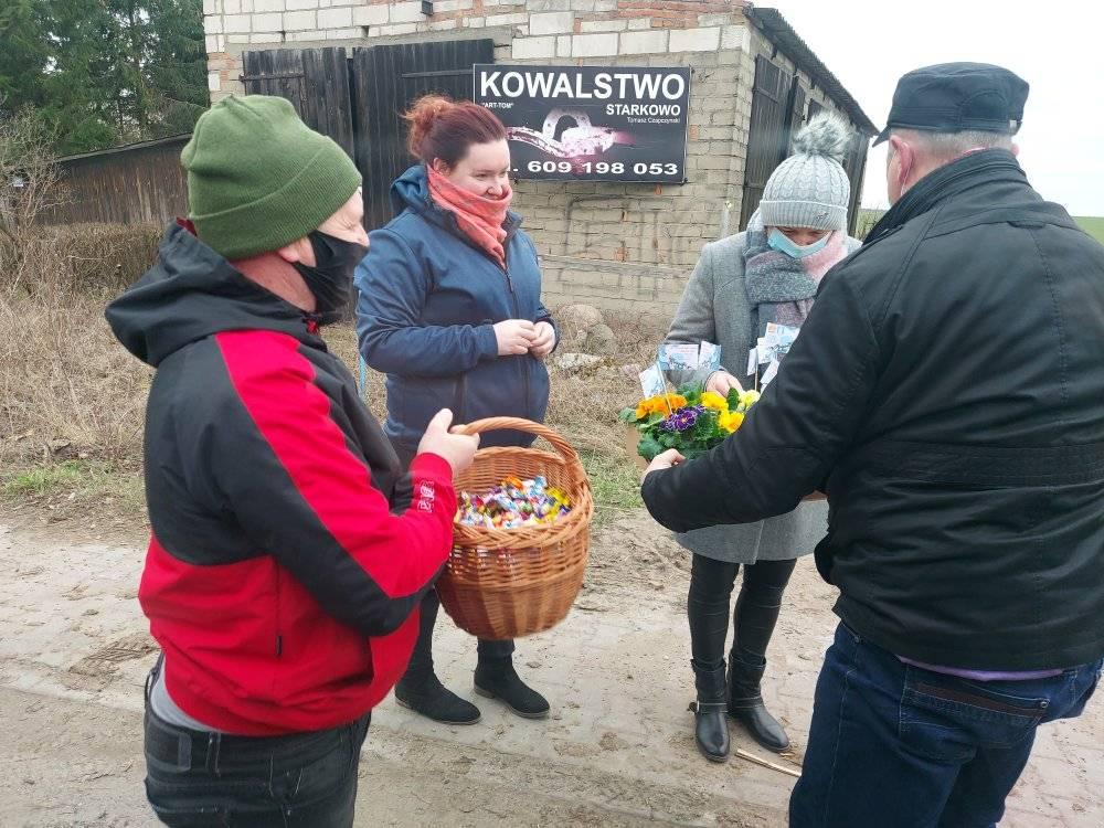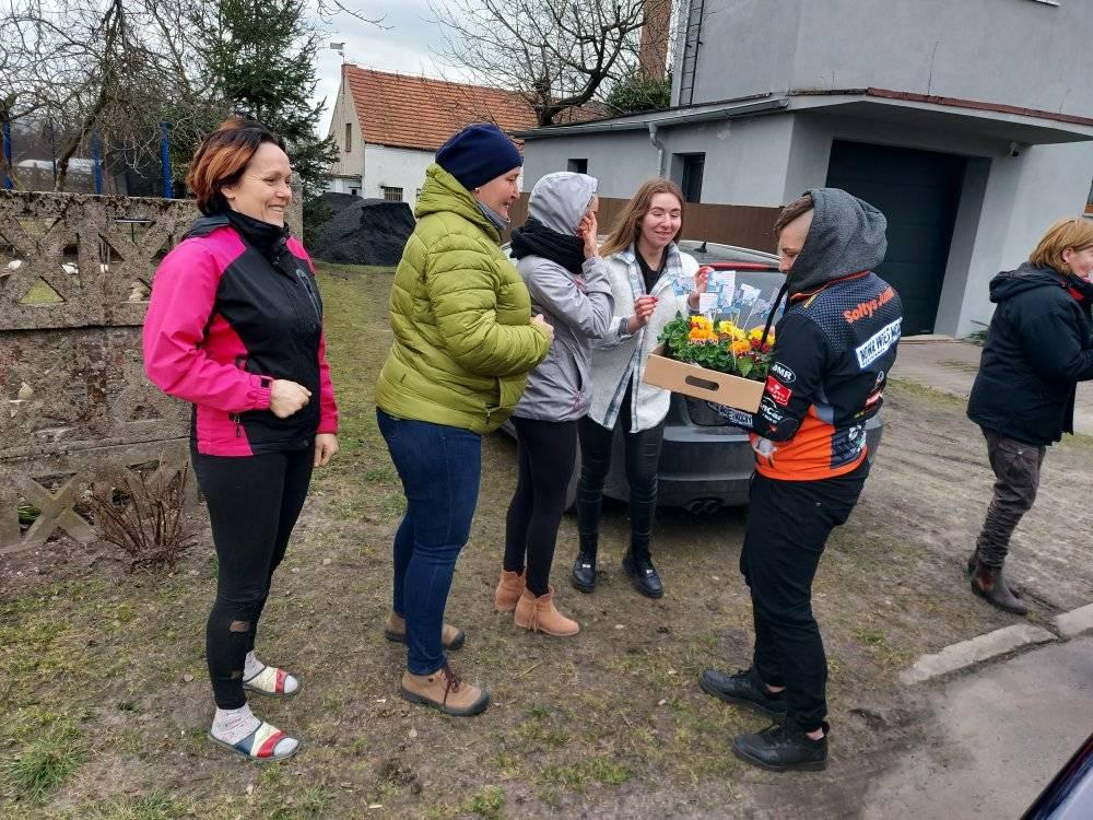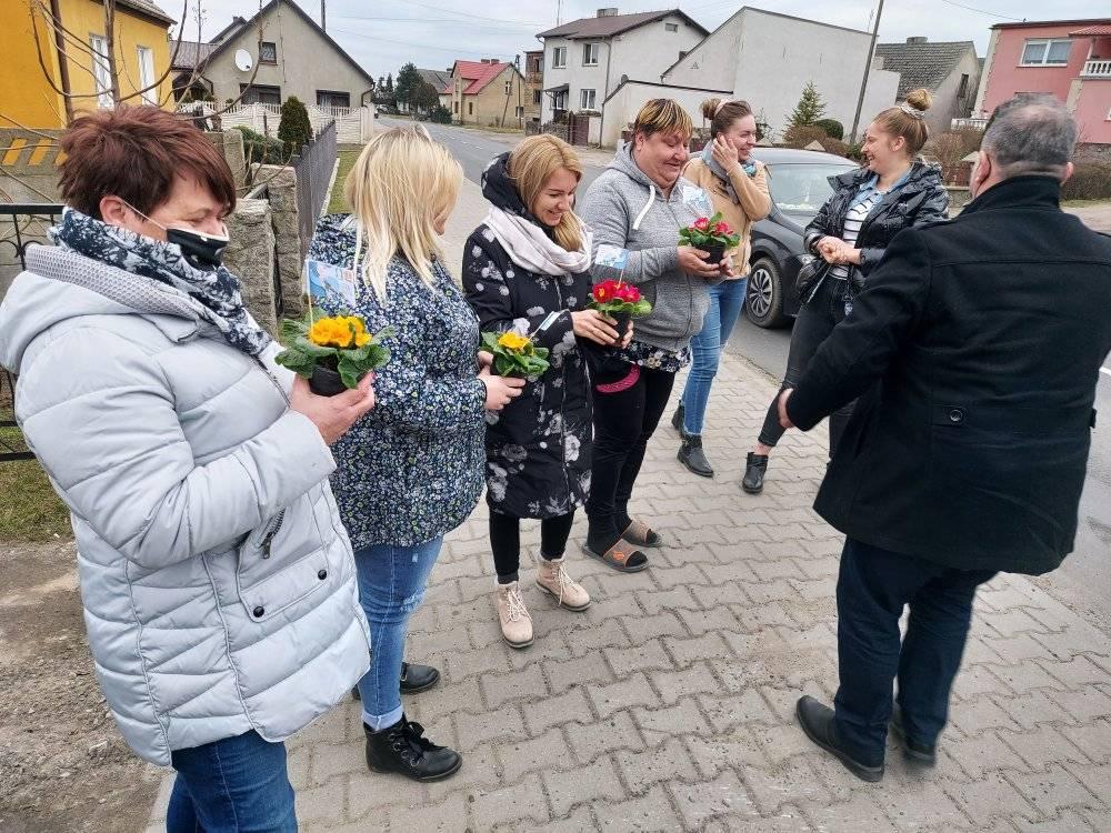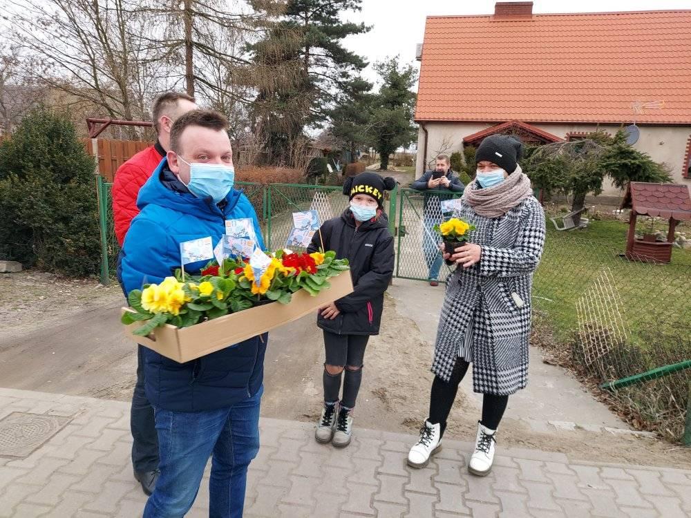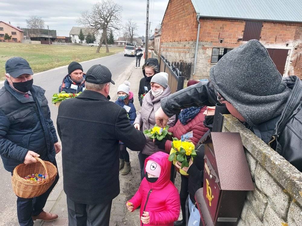 ODJAZDOWY DZIEŃ KOBIET w Gminie Przemęt już za nami! Dziękujemy za obecność i udział w naszej akcji. Razem można wiele! I tak przyszedł czas podziękowań za udział w kwiatowym konwoju. Nieocenieni okazali się być WRAK RACE NOWA WIEŚ-MOCHY – sołtys Mariusz oraz Kasia i Marcin z synem Kubą oraz „Sołtysem Juniorem” fenomenalnymi chłopakami, którzy zaangażowali się w akcję. Na duże uznanie zasługuje też Pan Eugeniusz z PPK Przemęt, który dzielnie znosił znoje zaopatrzenia. Dziękujemy przedstawicielom sołectw – sołtysom, członkom rad sołeckim oraz strażakom OSP za zaangażowanie się w rozdawanie kwiatów na terenie swoich miejscowości. Odzew mieszkańców Gminy Przemęt na ODJAZDOWY DZIEŃ KOBIET przeszedł nasze najśmielsze oczekiwania! Rozdaliśmy kilka tysięcy kwiatów. I choć po godzinie 14:00 zaczęliśmy być w „niedoczasie” to dziękujemy za wyrozumiałość i za to, że Panie chciały na nas zaczekać. Finałową miejscowością naszego konwoju była Nowa Wieś i tu z inicjatywy KGW Nowa Wieś mogliśmy liczyć na ciepłą strawę za co serdecznie dziękujemy! W imieniu pracowników GCKiB w Przemęcie dziękuję za miłe przyjęcie, miłe słowa i uśmiech obdarowywanych Pań! Marcowa aura okazała się w niedzielę 7 marca niezbyt łaskawa, ale… gorąca i życzliwa atmosfera podczas konwoju, rozgrzewała nas i motywowała do działania! W imieniu organizatorów: Gminy Przemęt – z Wójtem Januszem Frąckowiakiem na czele oraz całego zespołu GCKiB raz jeszcze SERDECZNIE DZIĘKUJEMY!!!