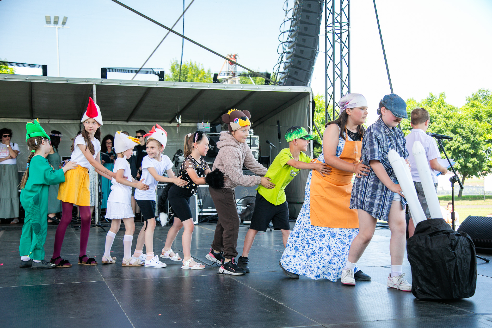 W tym samym czasie na scenie trwały występy artystyczne przygotowane przez dzieci i młodzież z terenu gminy. Szkoła Podstawowa w Mochach zaprezentowała inscenizację „Zasadził dziadek szparaga” oraz piosenkę „Słoneczko”. Maluchy z przedszkoli w Mochach i Przemęcie zaprezentowały barwne układy taneczne. Ich występy zebrały gorące brawa.