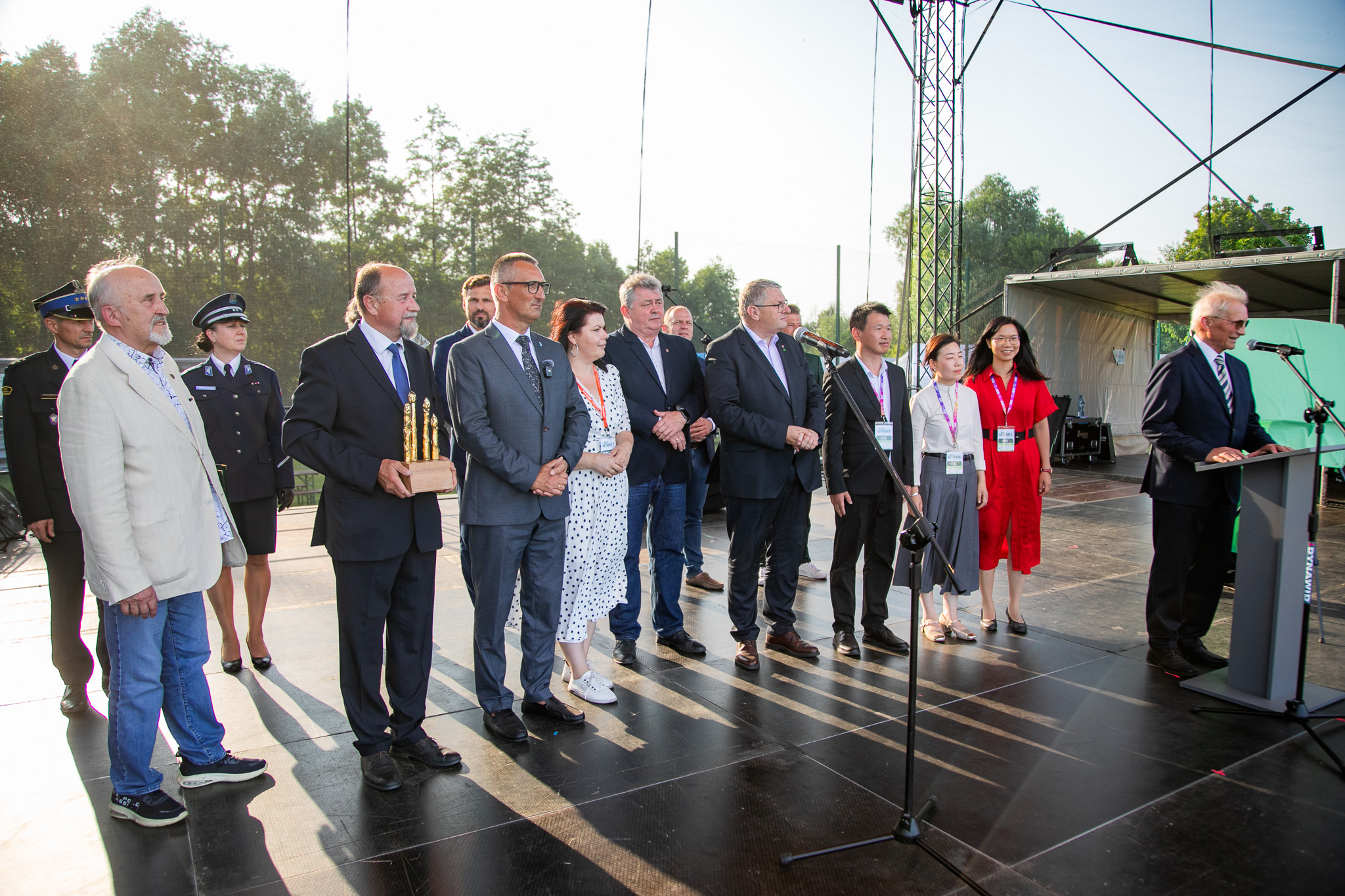 Uroczystości rozpoczęły się punktualnie. Publiczność powitała Agnieszka Klugiewicz p.o. dyrektora GCKiB w Przemęcie, a na scenie pojawili się: Wójt Janusz Frąckowiak, Wicemarszałek Województwa Wielkopolskiego Krzysztof Grabowski, Sekretarz Stanu MSWiA Wiesław Szczepański, senator Jan Filip Libicki, Starosta Powiatu Wolsztyńskiego Jacek Skrobisz, Komendant Powiatowy Państwowej Straży Pożarnej w Wolsztynie kpt. Damian Glapiak, Komendant Powiatowy Policji w Wolsztynie mł. insp. Katarzyna Sobczak-Kukawka, Burmistrz Wolsztyna Dominik Tomiak, Wójt Gminy Siedlec Artur Walczak-Mortezai, Przewodnicząca Rady Gminy Monika Maćkowiak, Zastępca Wójta Gminy Przemęt Waldemar Kalitka, Zastępca Wójta Gminy Siedlec Damian Wita, Prezes Polskiego Związku Producentów Szparaga Marian Jakobsze, prof. dr hab. Mikołaj Knaflewski oraz delegacja producentów szparaga z Chin.