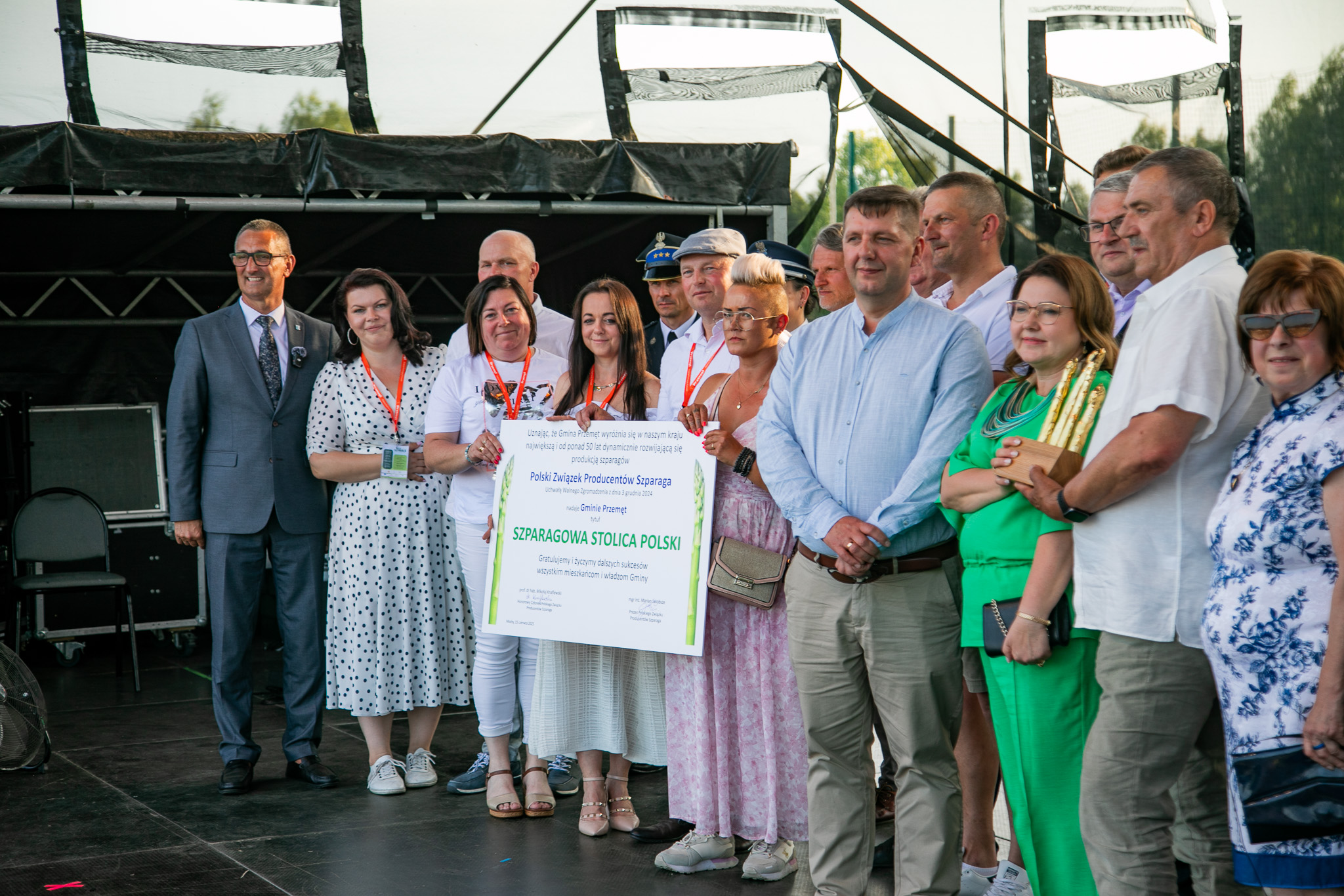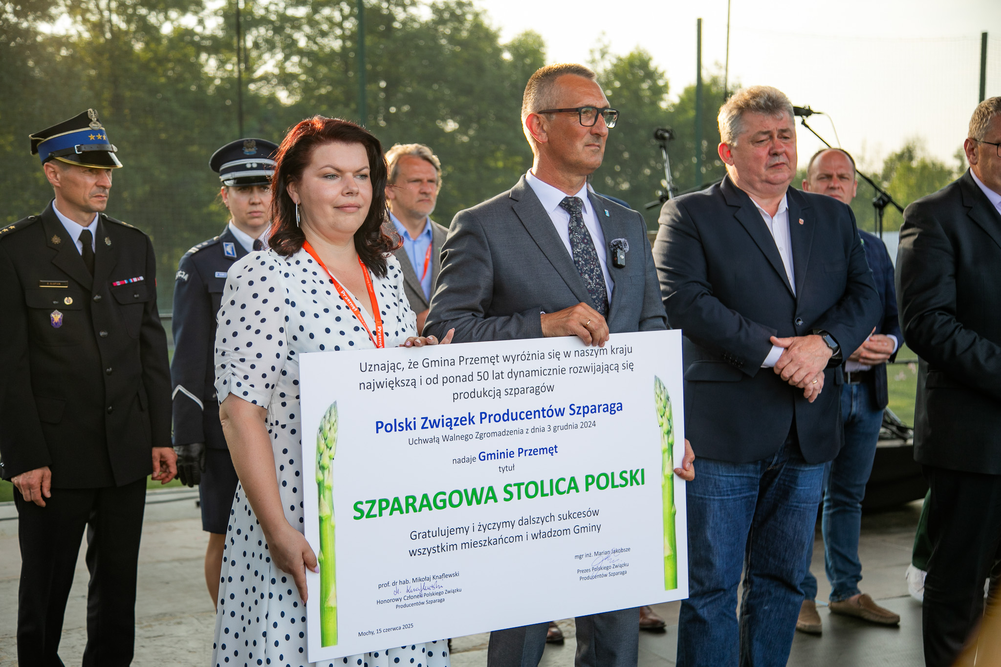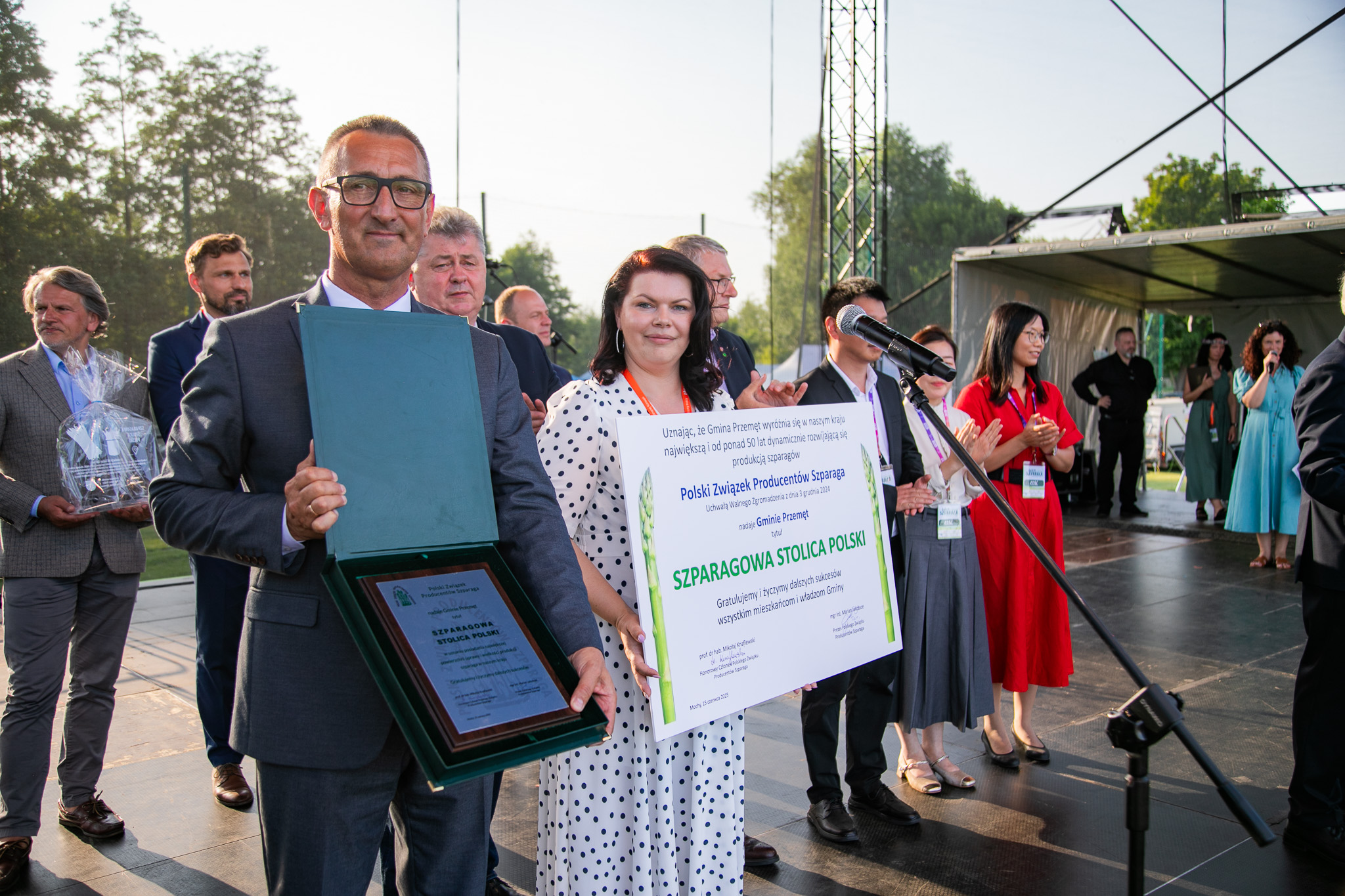 Podczas części oficjalnej przekazano symboliczny akt nadania tytułu, a także wręczono statuetkę Złotych Szparagów dla Gminy Przemęt. Po uroczystym wręczeniu dokumentu głos zabrał wójt Janusz Frąckowiak, który nie krył wzruszenia: – To zasługa naszych mieszkańców – ich pracy, wytrwałości i pasji. Ten tytuł to nie nagroda za jedną kampanię promocyjną, ale efekt lat wspólnej pracy na polach, w kuchniach, na jarmarkach i scenach. Dziś cała Polska wie, że szparag ma swoje serce w Gminie Przemęt.