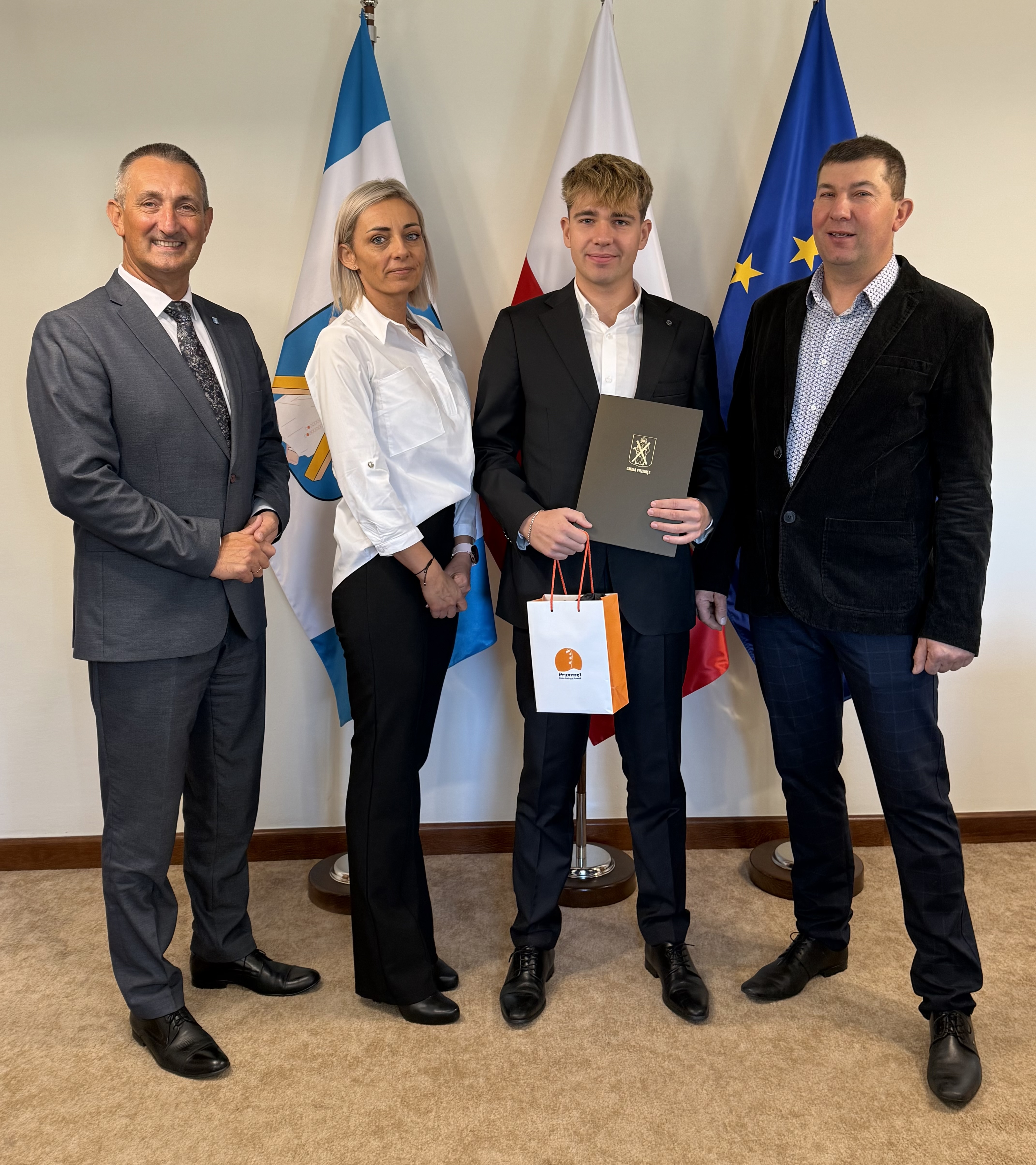 Z inicjatywy wójta Janusza Frąckowiaka Alan wraz z rodzicami został zaproszony do Urzędu Gminy Przemęt. Spotkanie odbyło się w piątek, 31 października. Wójt pogratulował młodemu mieszkańcowi oraz jego rodzicom, dziękując im za zaangażowanie i za to, że swoją postawą promują gminę Przemęt. W dowód uznania wręczył Alanowi czek finansowy oraz pamiątkowe gadżety.
