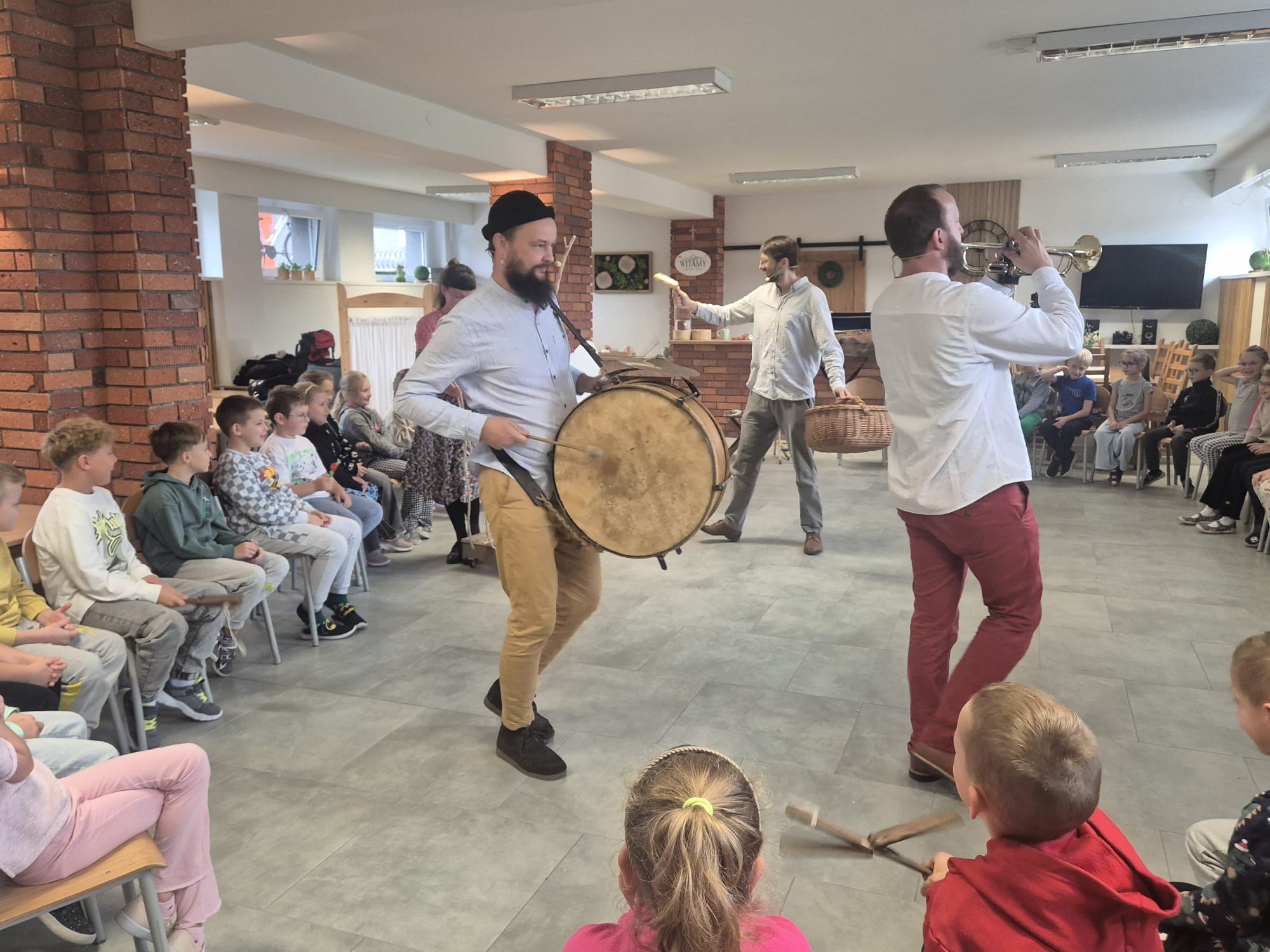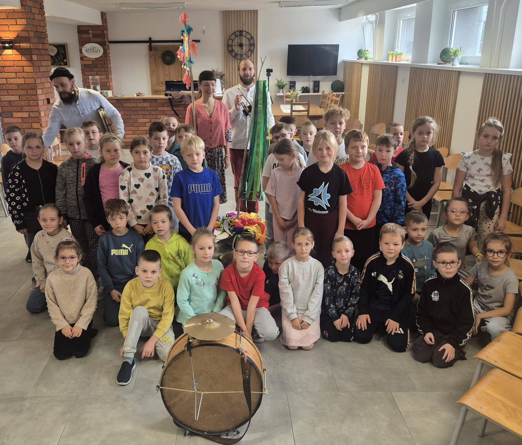 Gośćmi szkoły byli muzycy: Joanna Sucholas, Karol Majerowski, Witold Roj-Zalewski i Marcin Małecki, którzy w ciekawy i pełen energii sposób opowiedzieli o wielkopolskich tradycjach. Dzieci poznały instrumenty charakterystyczne dla regionu, dawne pieśni oraz zwyczaje towarzyszące mieszkańcom przez cały rok – od wiosny aż po zimę.