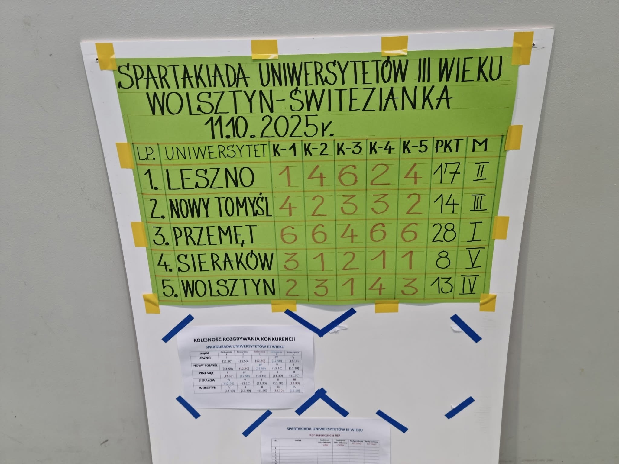 W sobotę 11 października br. drużyna Uniwersytetu Trzeciego Wieku z Przemętu po raz pierwszy wzięła udział w Spartakiadzie „Senior potrafi”, organizowanej przez Stowarzyszenie UTW w Wolsztynie. Wydarzenie odbyło się w Miejskiej Sali Sportowej „Świtezianka” i zgromadziło drużyny z pięciu Uniwersytetów Trzeciego Wieku: Leszna, Nowego Tomyśla, Przemętu, Sierakowa i Wolsztyna.
