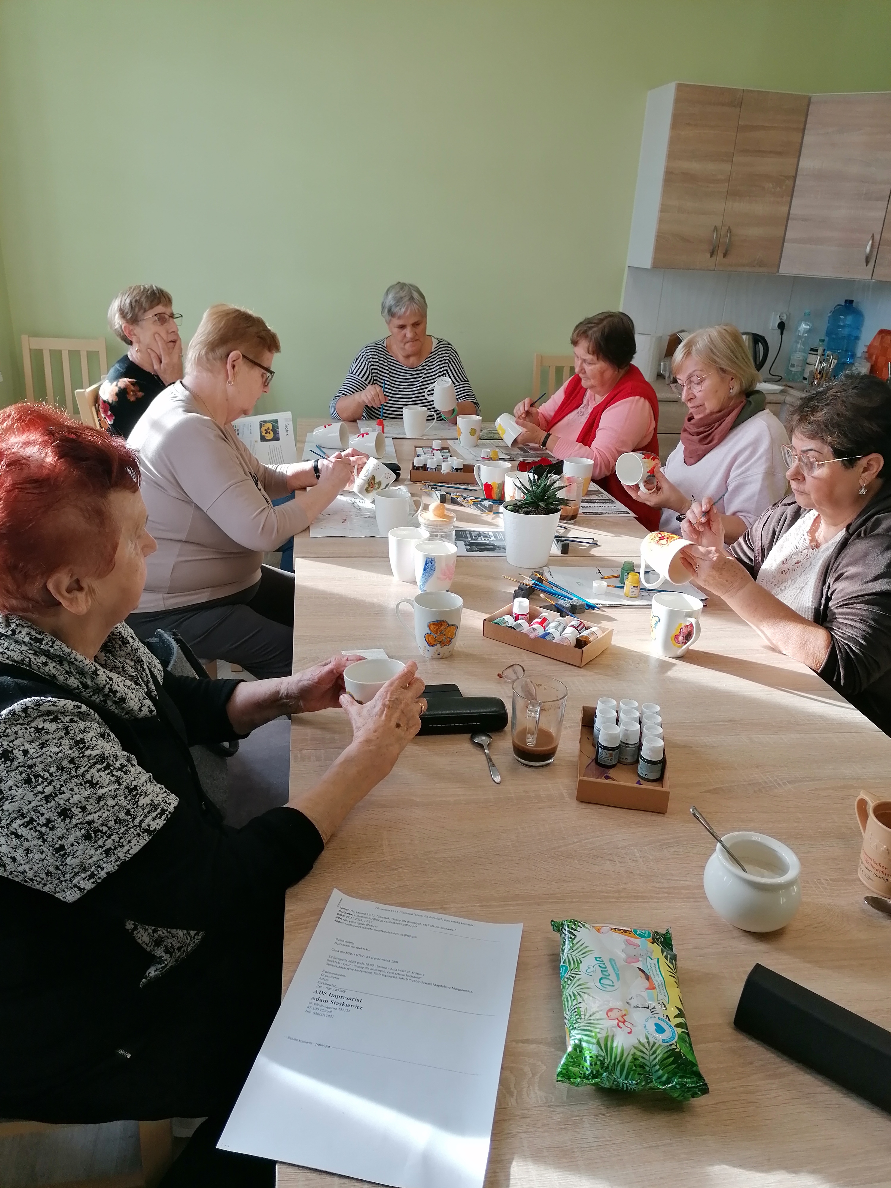 Podczas regularnych zajęć seniorzy z energią i zaangażowaniem uczestniczą w różnorodnych warsztatach. Malowanie ceramiki, ozdabianie lnianych toreb według własnych pomysłów, tworzenie obrazów czy szydełkowanie – to tylko część aktywności, które cieszą się dużą popularnością. Szeroki wybór zajęć sprzyja temu, by każdy mógł spróbować czegoś nowego i odkryć w sobie ukryte talenty.