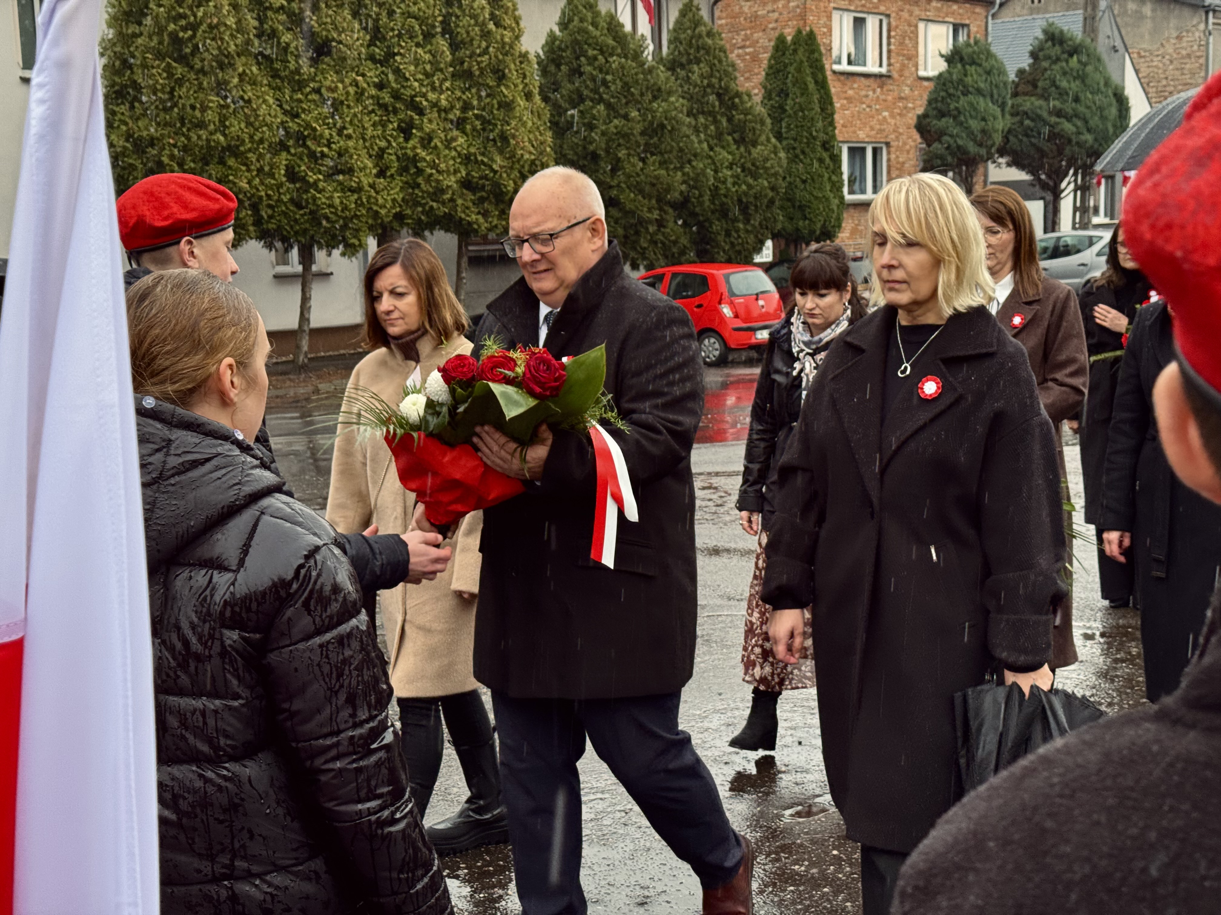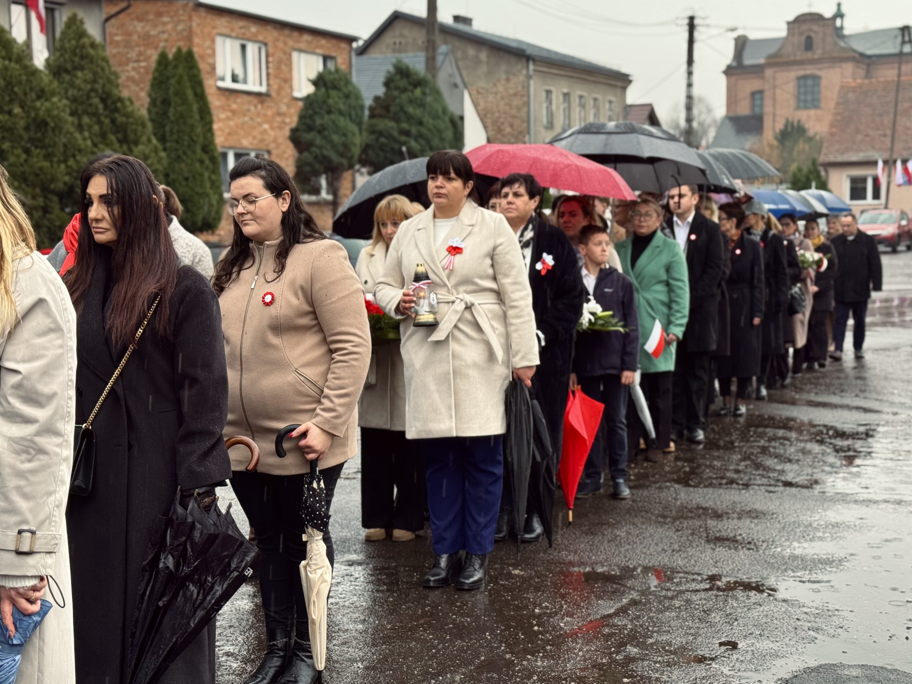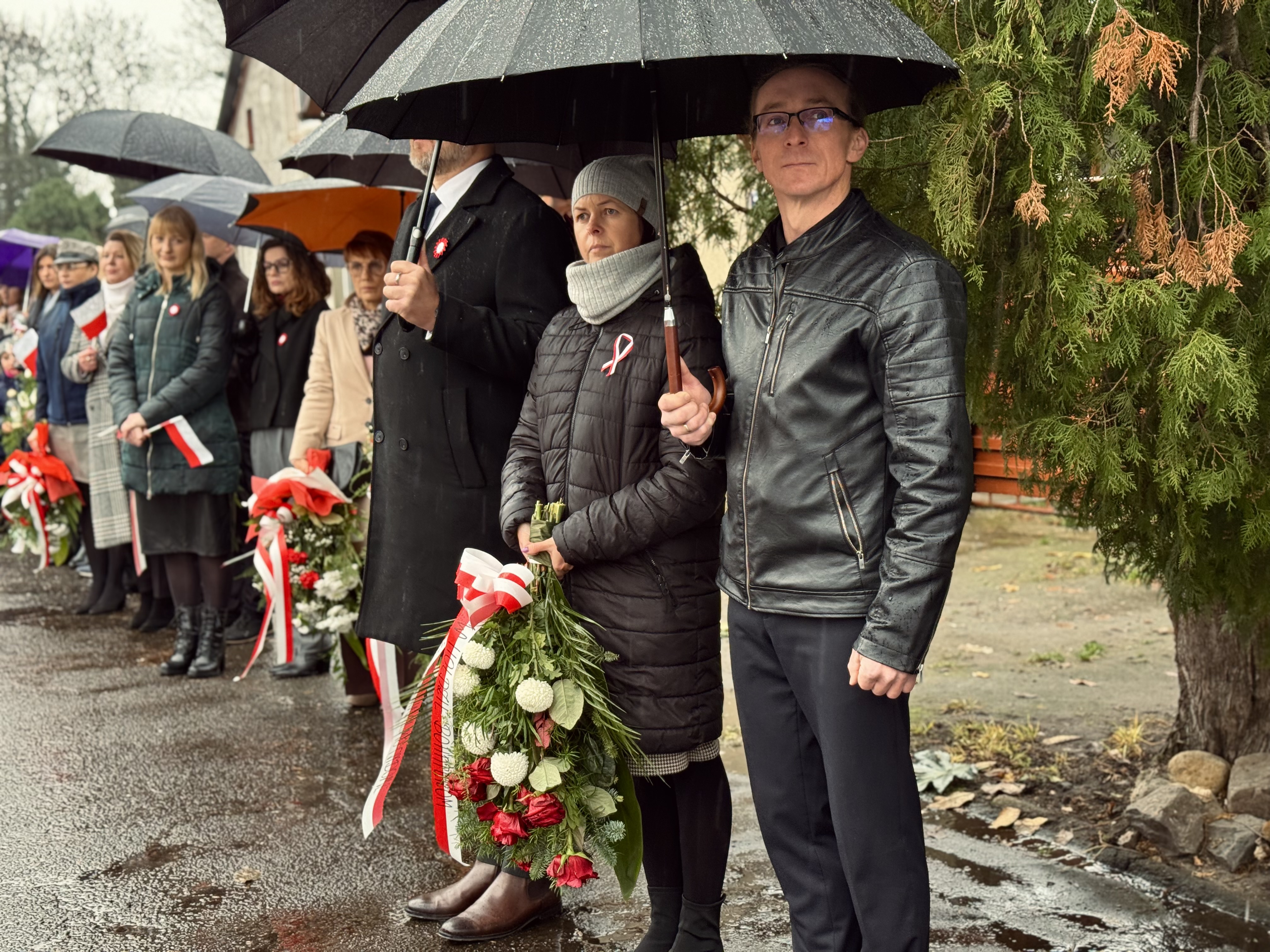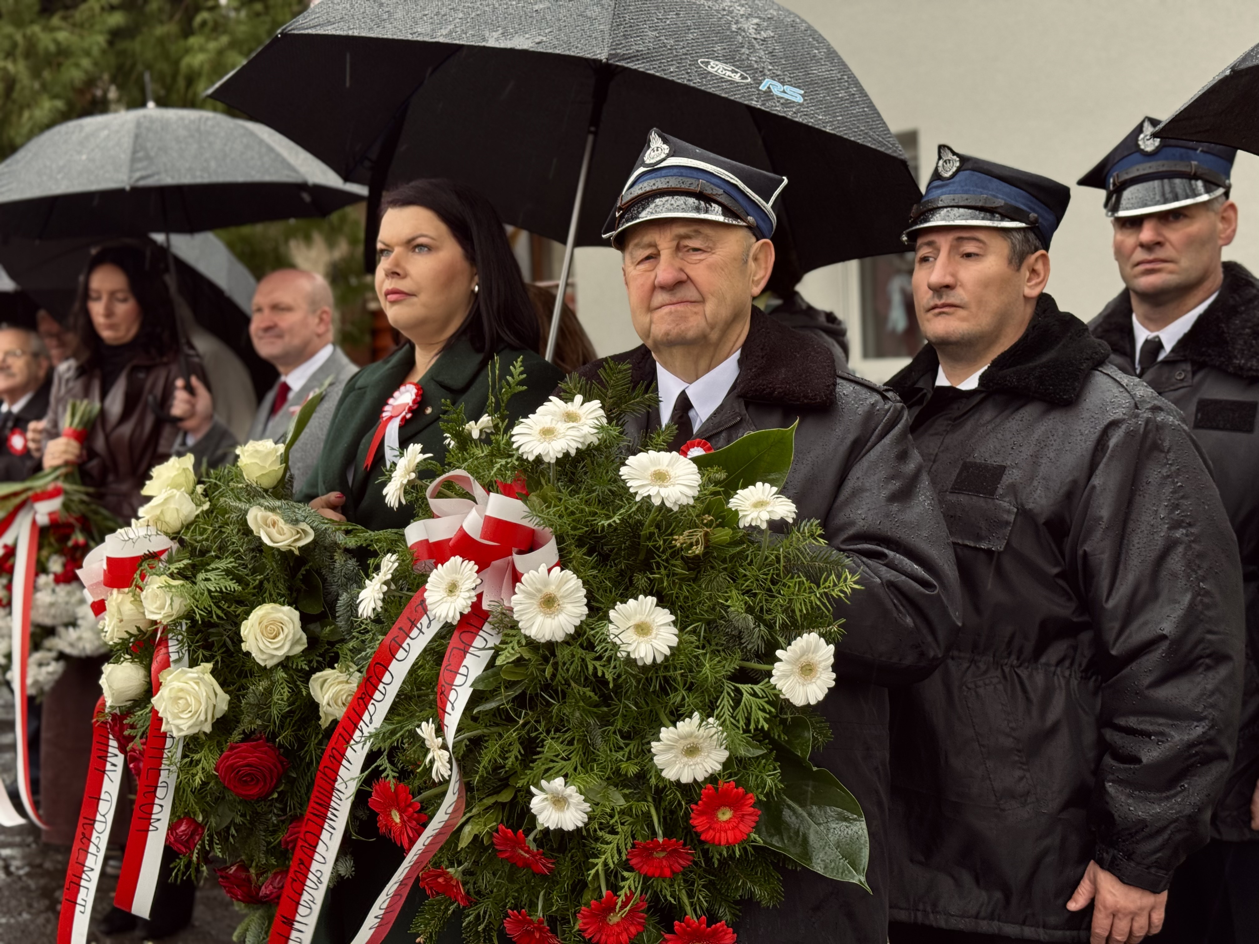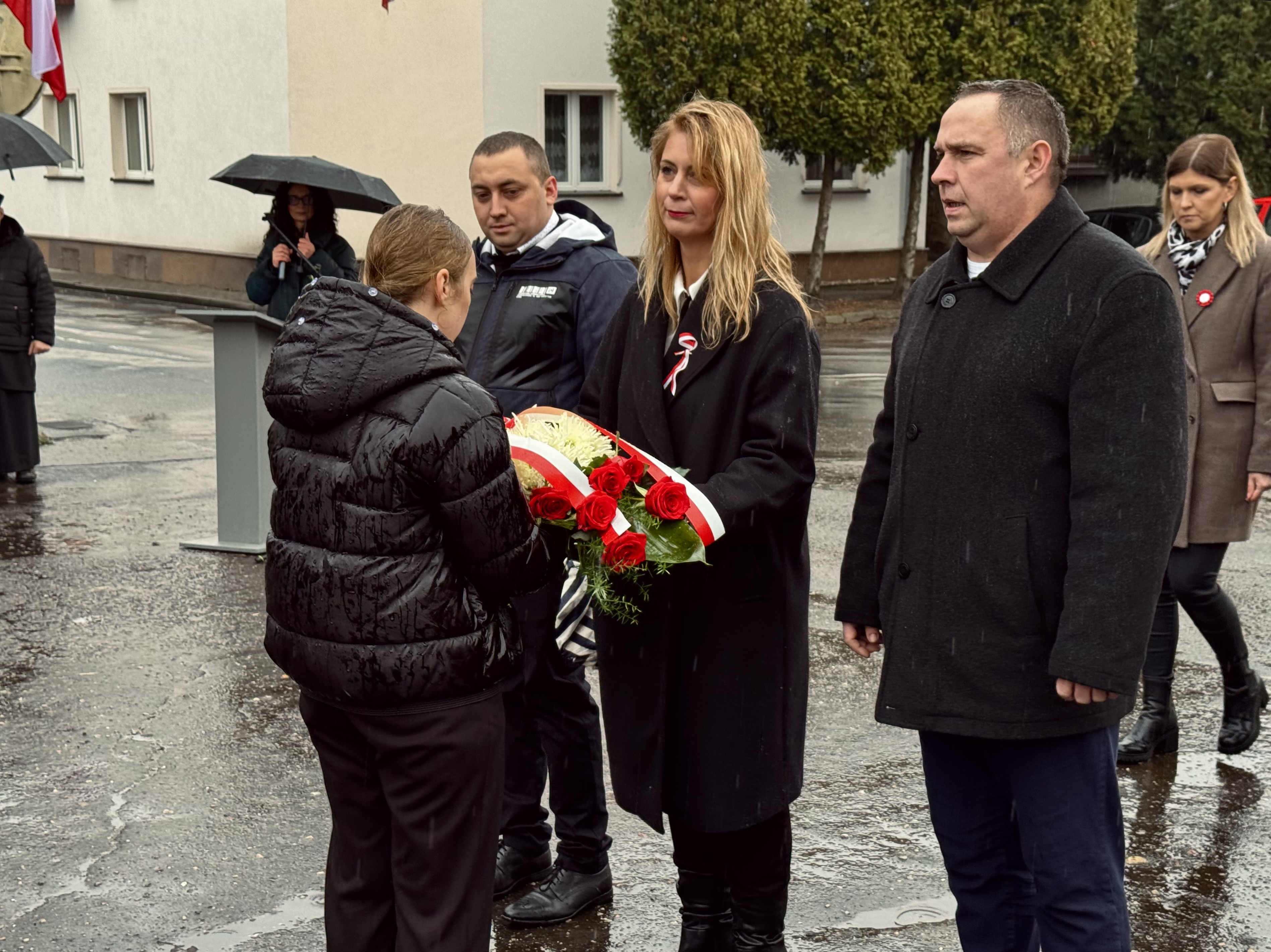 Przy pomniku poświęconym bohaterom walk o wolność Polski zgromadzonych powitała prowadząca uroczystość Agnieszka Klugiewicz. Następnie wspólnie odśpiewano Hymn Państwowy, a delegacje samorządowe, szkolne i społeczne złożyły wieńce i zapaliły znicze pamięci. W tle rozbrzmiewały patriotyczne utwory w wykonaniu orkiestry – „Mazurek Dąbrowskiego”, „Rota” oraz wiązanka pieśni ułańskich, które nadały wydarzeniu wyjątkowo podniosły charakter.