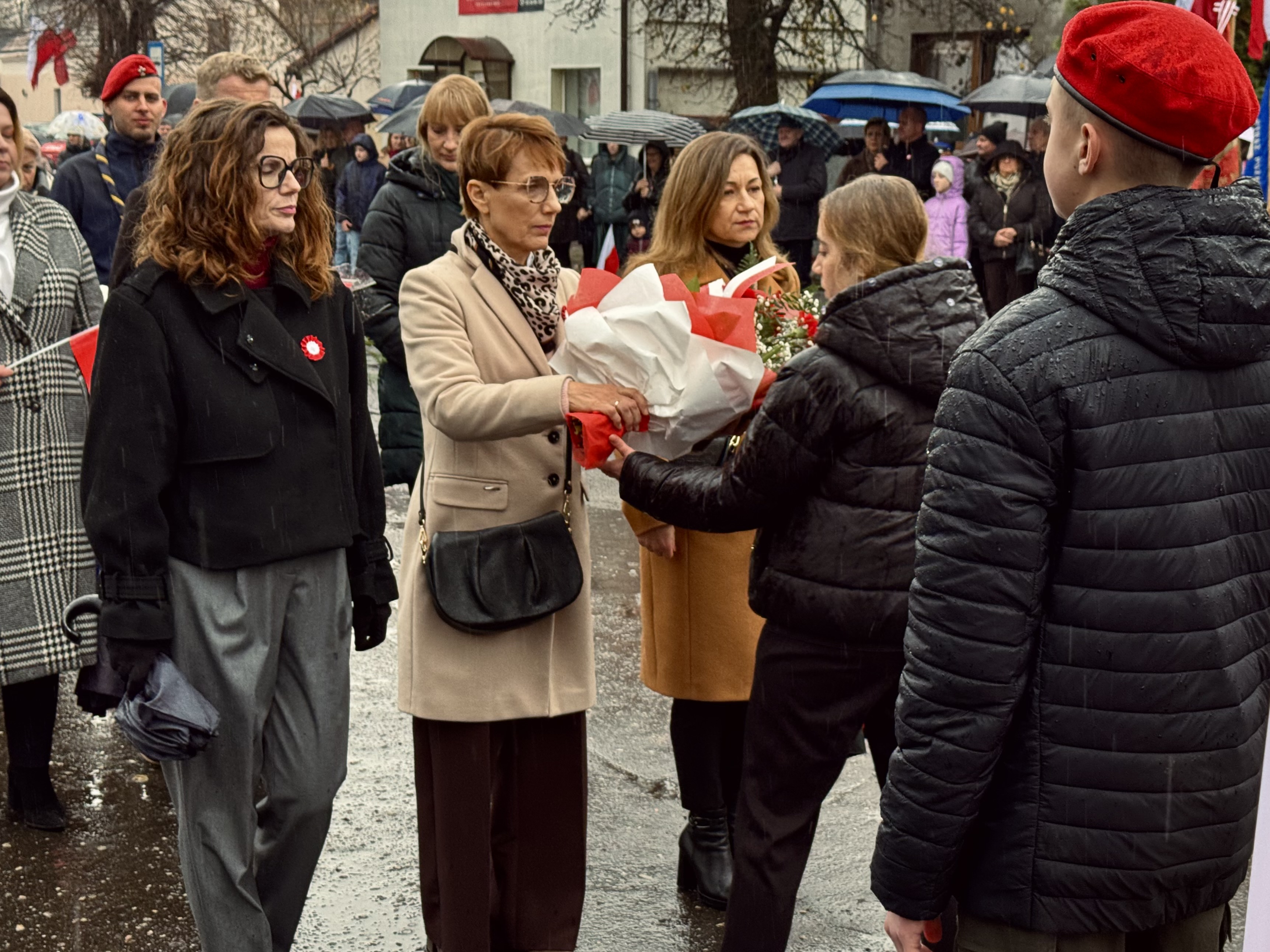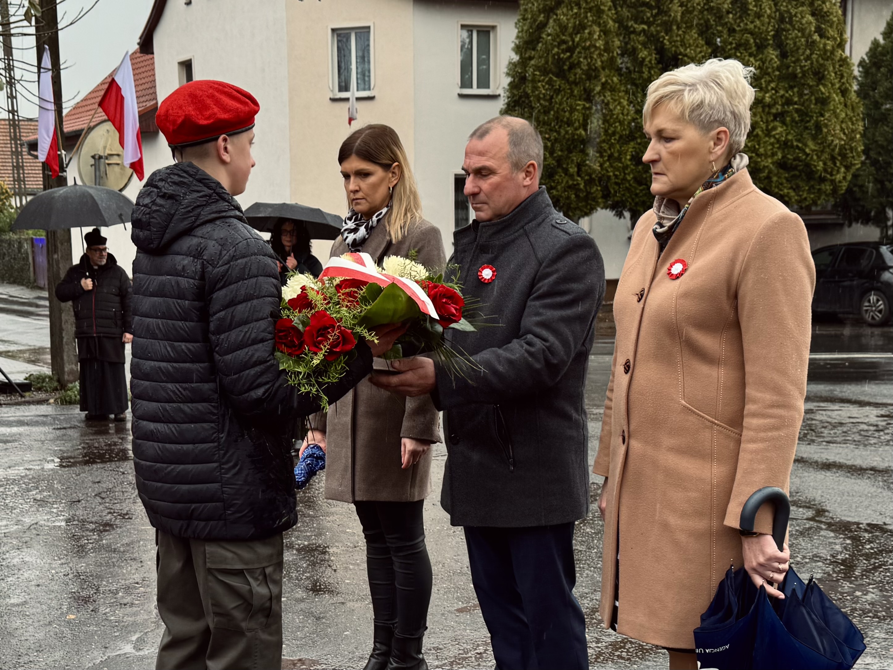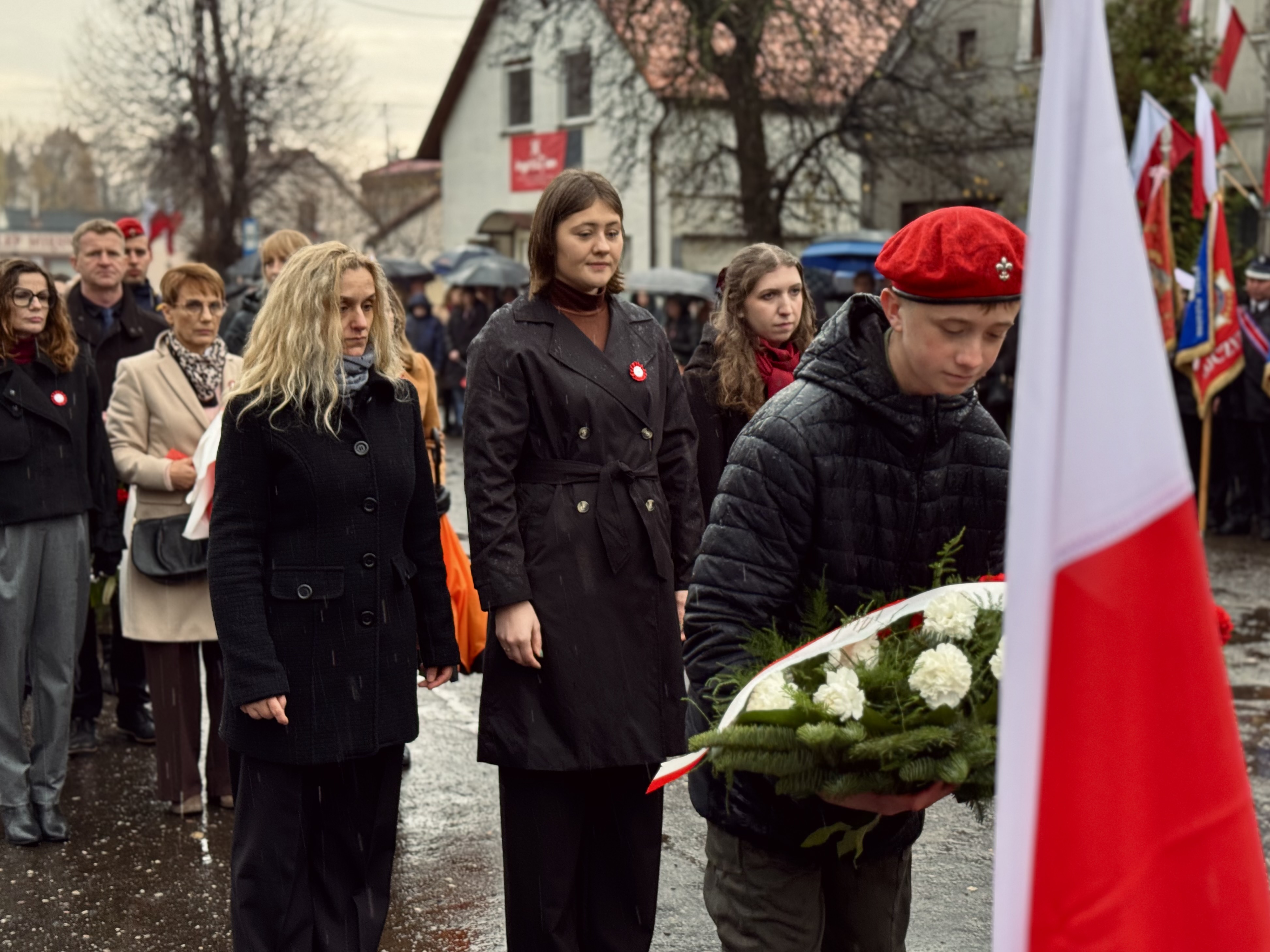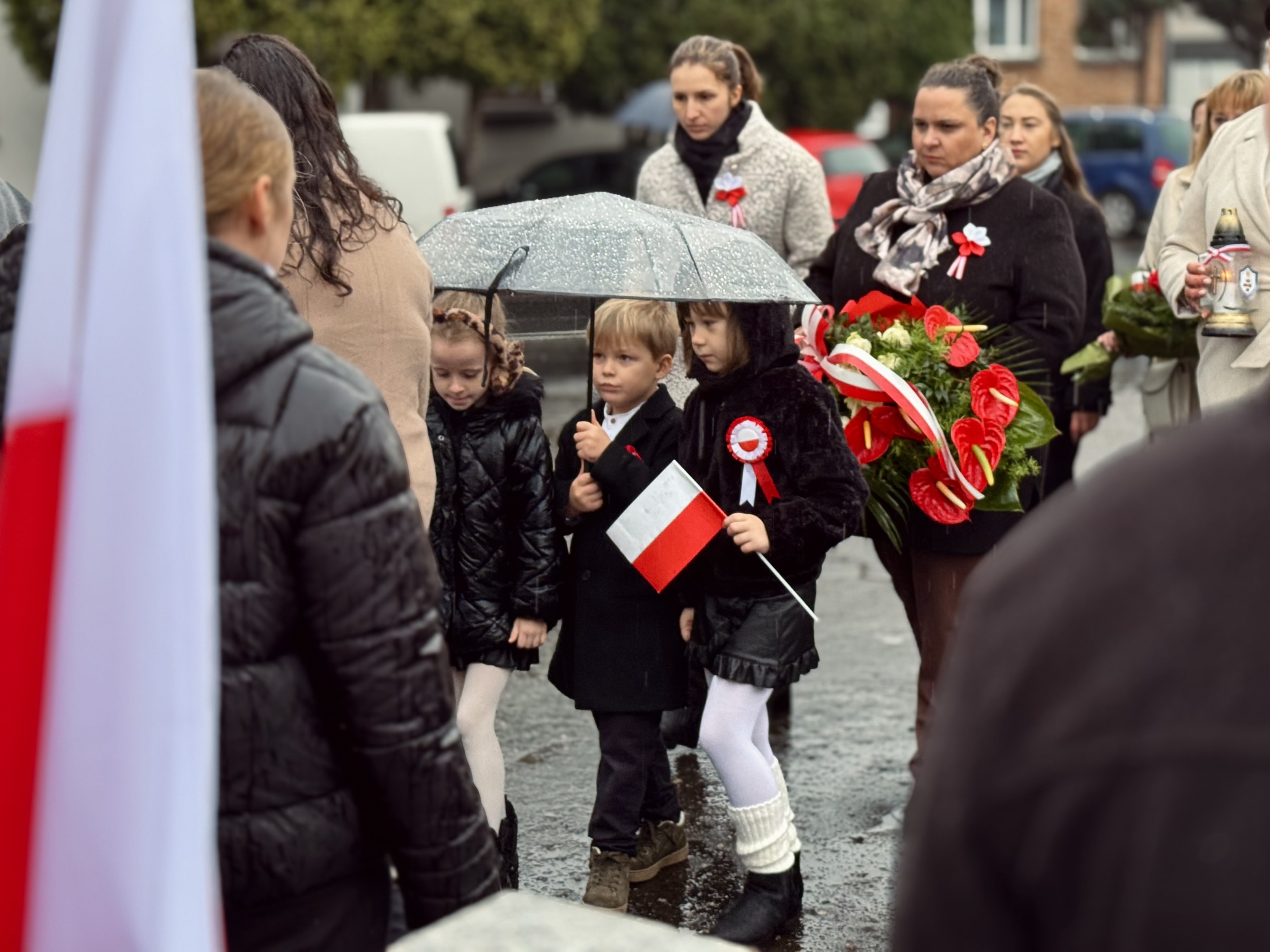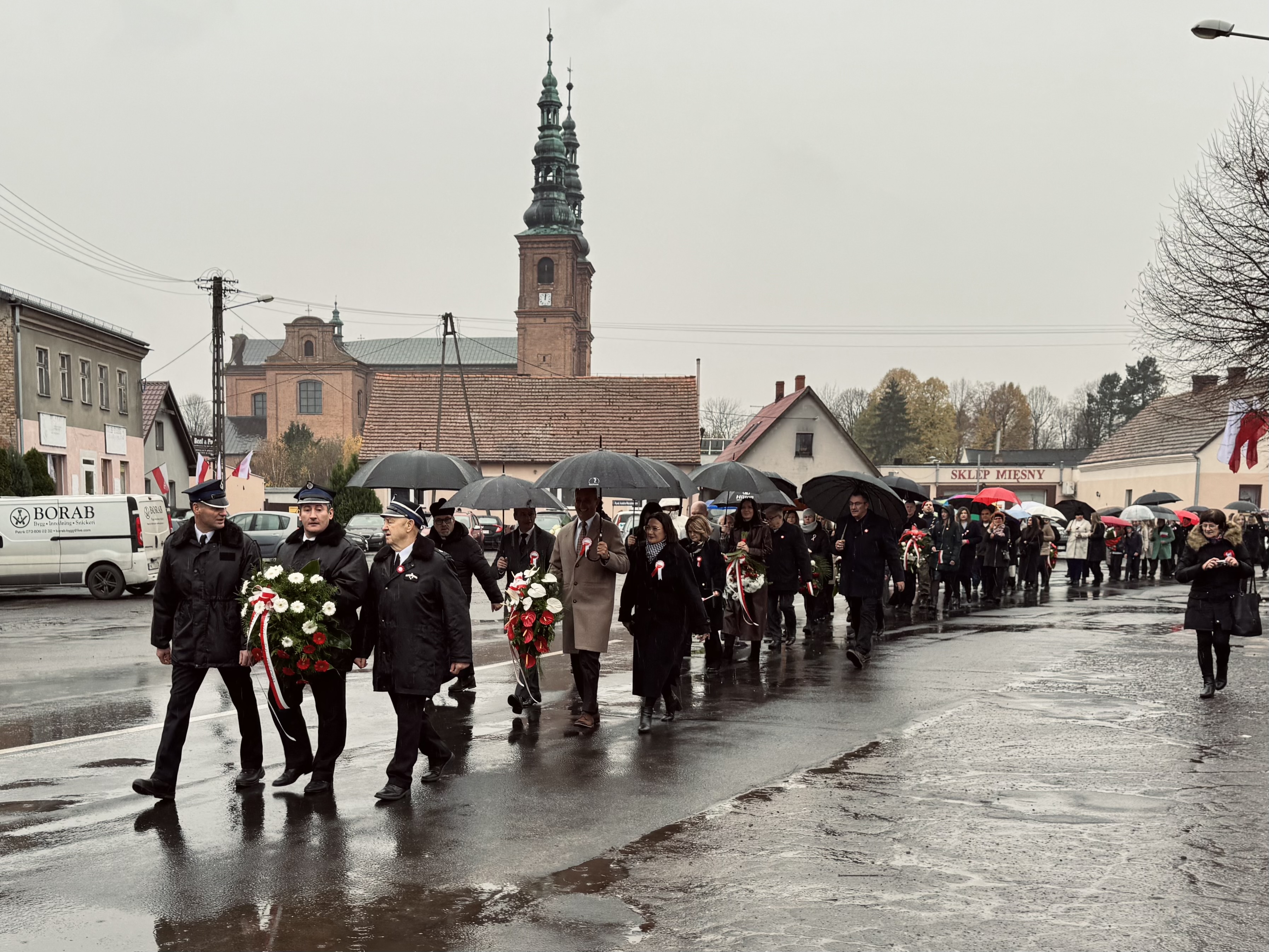 Przy pomniku poświęconym bohaterom walk o wolność Polski zgromadzonych powitała prowadząca uroczystość Agnieszka Klugiewicz. Następnie wspólnie odśpiewano Hymn Państwowy, a delegacje samorządowe, szkolne i społeczne złożyły wieńce i zapaliły znicze pamięci. W tle rozbrzmiewały patriotyczne utwory w wykonaniu orkiestry – „Mazurek Dąbrowskiego”, „Rota” oraz wiązanka pieśni ułańskich, które nadały wydarzeniu wyjątkowo podniosły charakter.