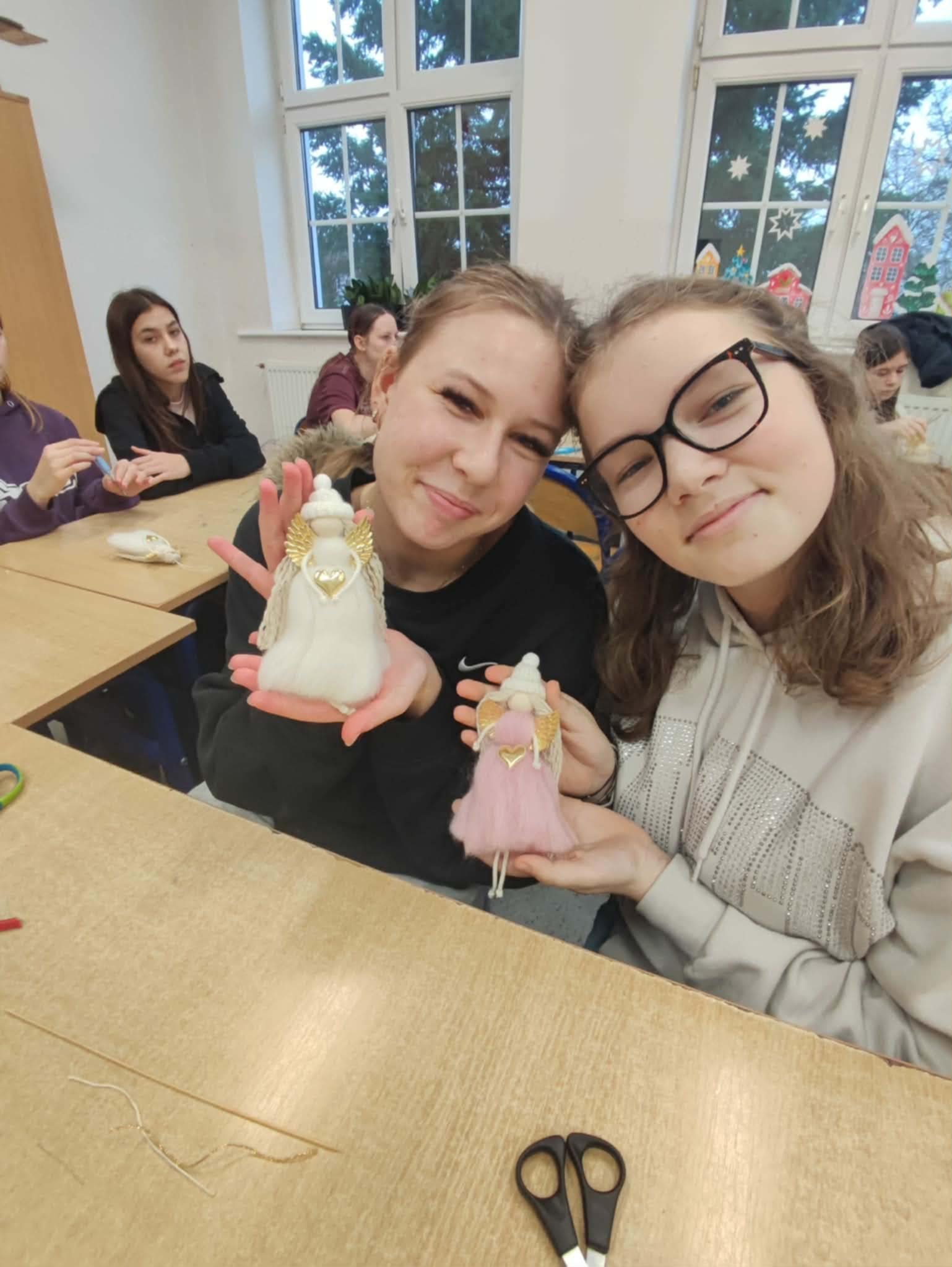 W dniach 10 i 12 grudnia uczniowie uczestniczyli w wydarzeniach o charakterze kulturalnym i twórczym. Klasy V obejrzały spektakl profilaktyczny „Ten inny” w WDK, poruszający temat akceptacji, empatii i przeciwdziałania wykluczeniu. Z kolei uczennice klas VII i VIII wzięły udział w warsztatach rękodzielniczych prowadzonych przez panią Ritę Kruk, podczas których poznawały technikę makramy i własnoręcznie wykonywały ozdobne aniołki i breloczki.