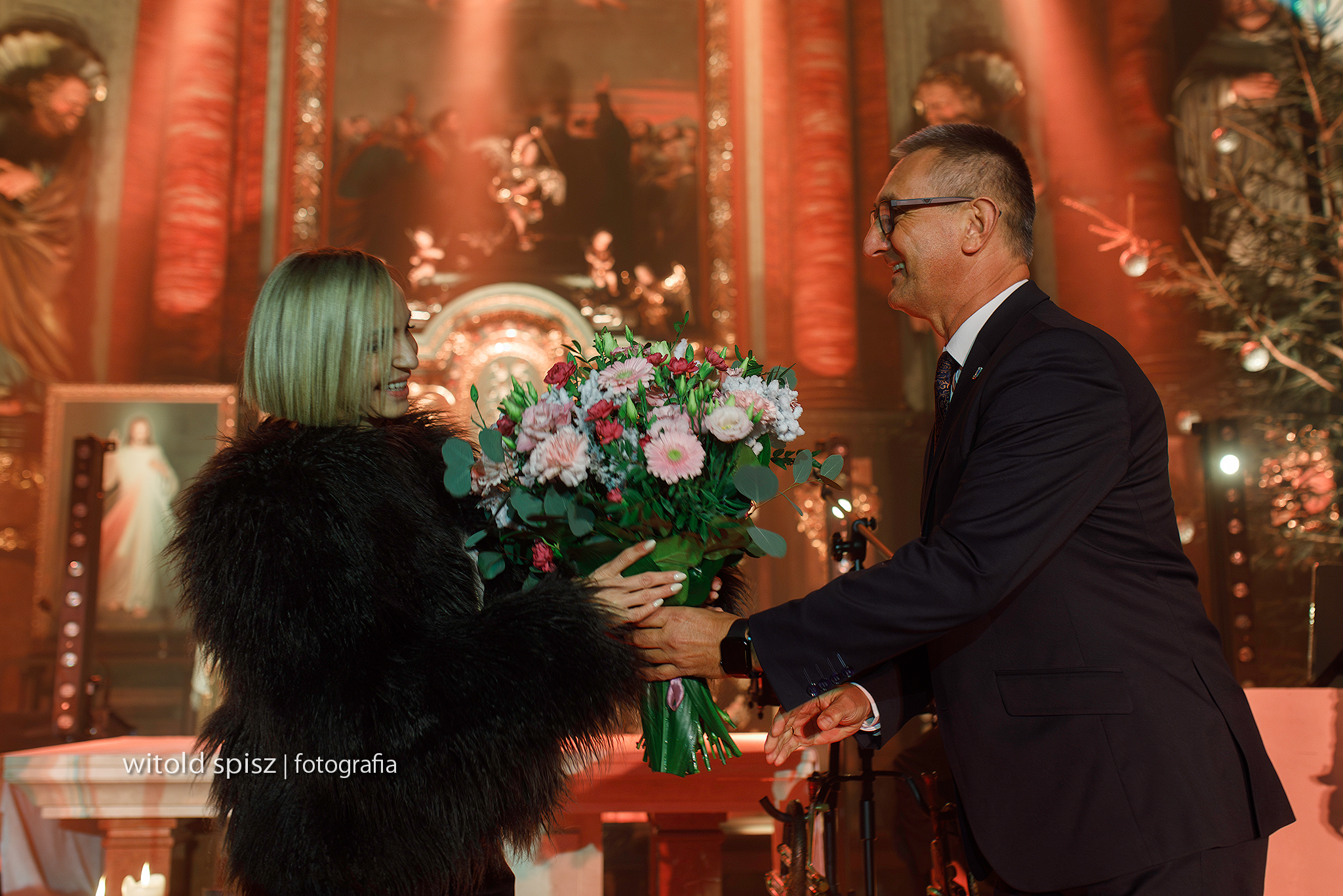 Tuż przed zakończeniem koncertu na scenie ponownie pojawił się wójt Janusz Frąckowiak, który w imieniu samorządu podziękował Annie Wyszkoni oraz zespołowi za niezwykły, pełen emocji występ. Wokalistka otrzymała okazały bukiet kwiatów, a każdy z muzyków symbolicznie czerwoną różę. Wójt skierował także słowa podziękowania do GCKiB z dyrektor Agnieszką Klugiewicz, proboszcza ks. Jarosława Kaczmarka, Mecenasów Kultury oraz wszystkich uczestników koncertu za obecność i wsparcie tego wydarzenia poprzez zakup biletów. Wieczór zakończyły serdeczne życzenia świąteczne.