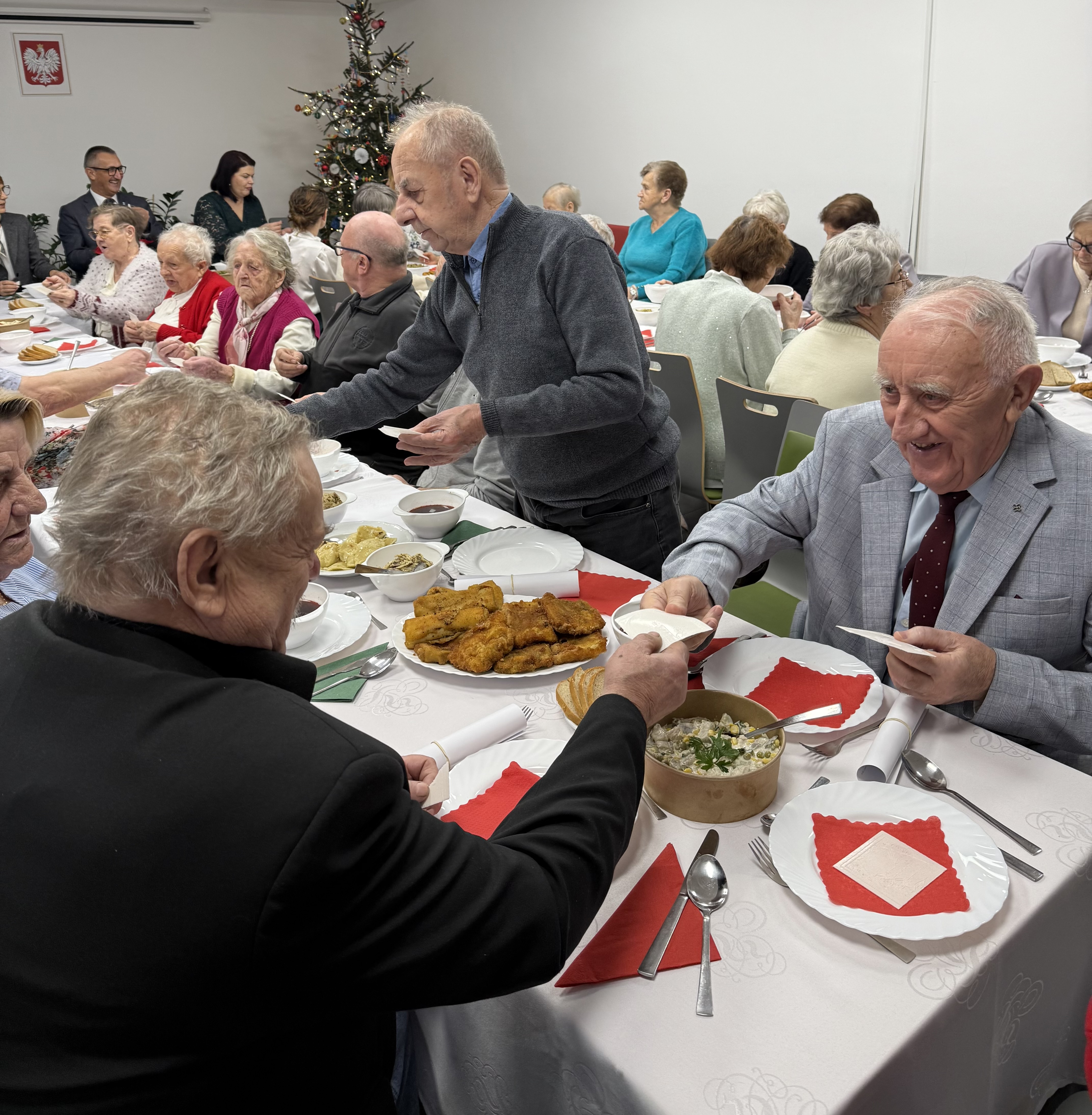 Spotkanie zakończyło się rozmowami przy świątecznie udekorowanych stołach, na których nie zabrakło tradycyjnych potraw. Był to czas, który pozwolił na chwilę zatrzymania, wymianę wspomnień i wspólne cieszenie się atmosferą nadchodzących świąt.