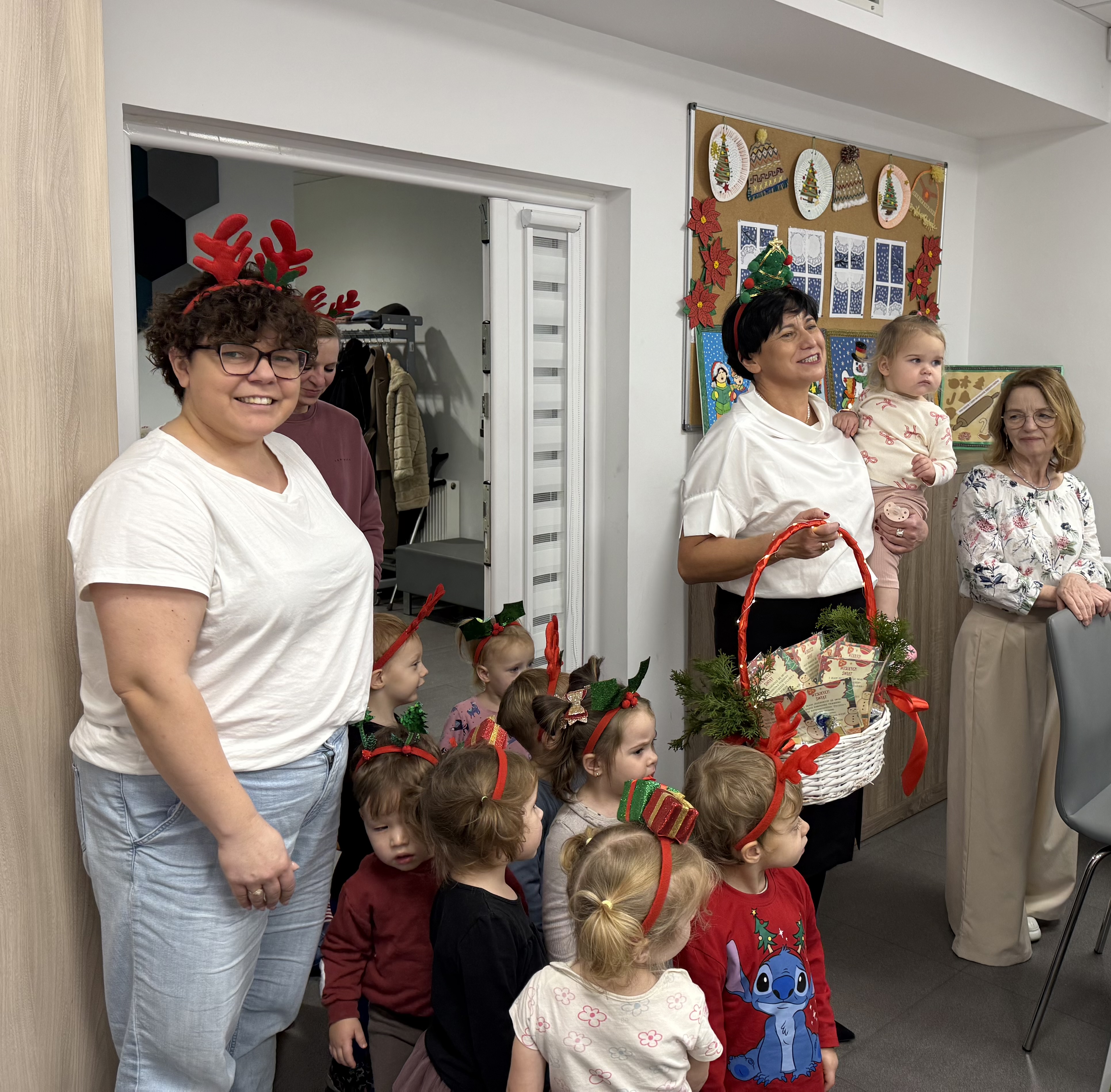 Wyjątkowym i wzruszającym momentem spotkania była także wizyta dzieci ze żłobka, które odwiedziły seniorów, wnosząc do sali radość i uśmiech.