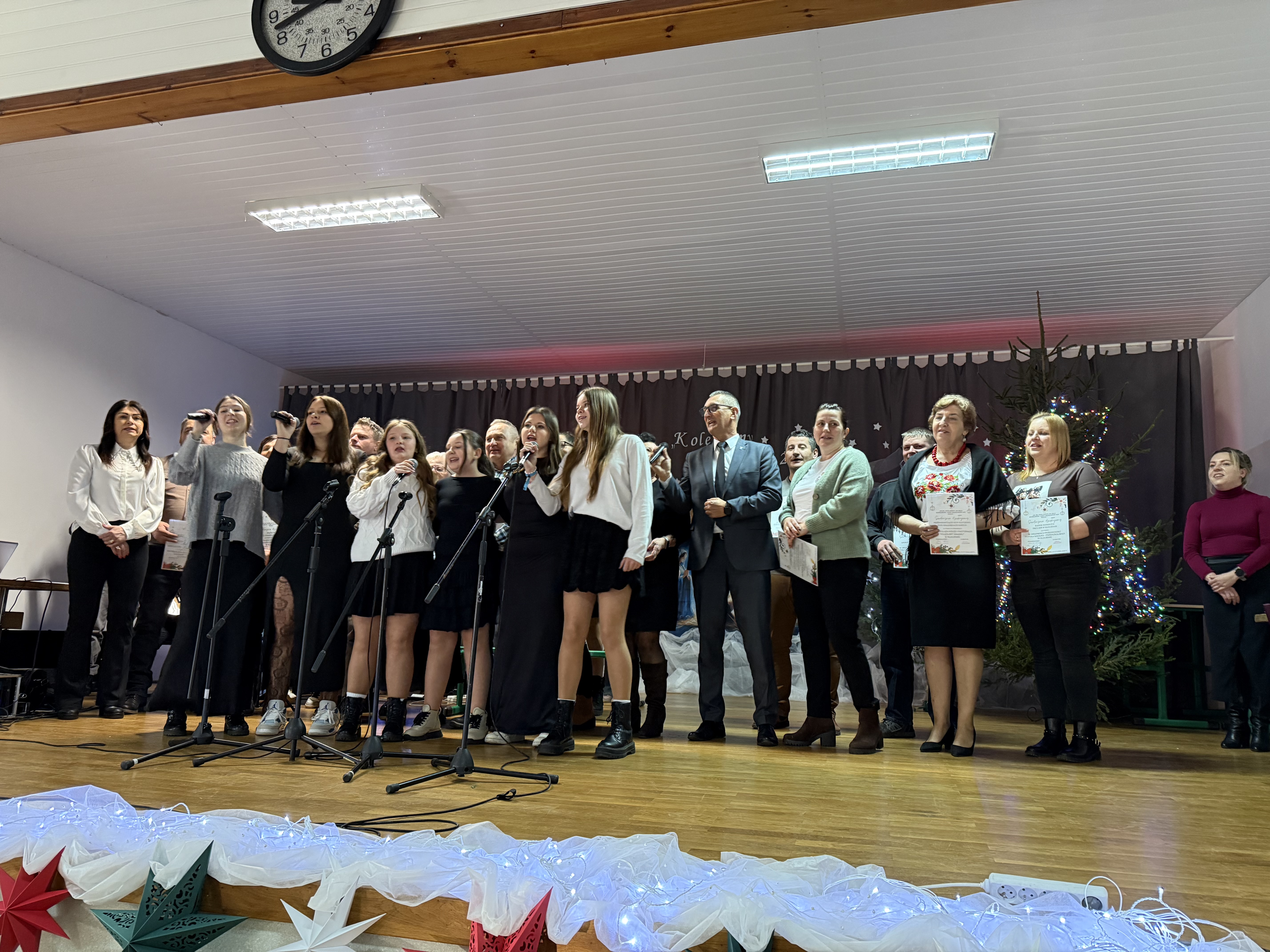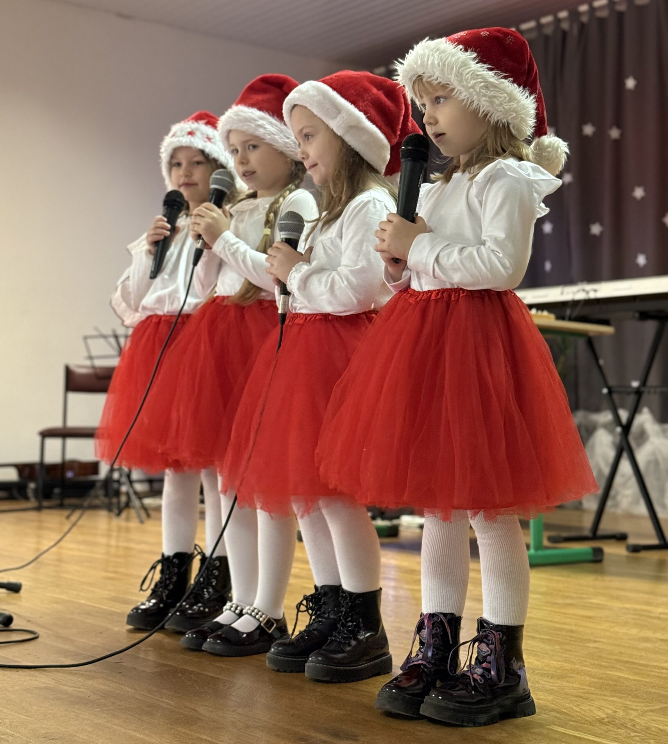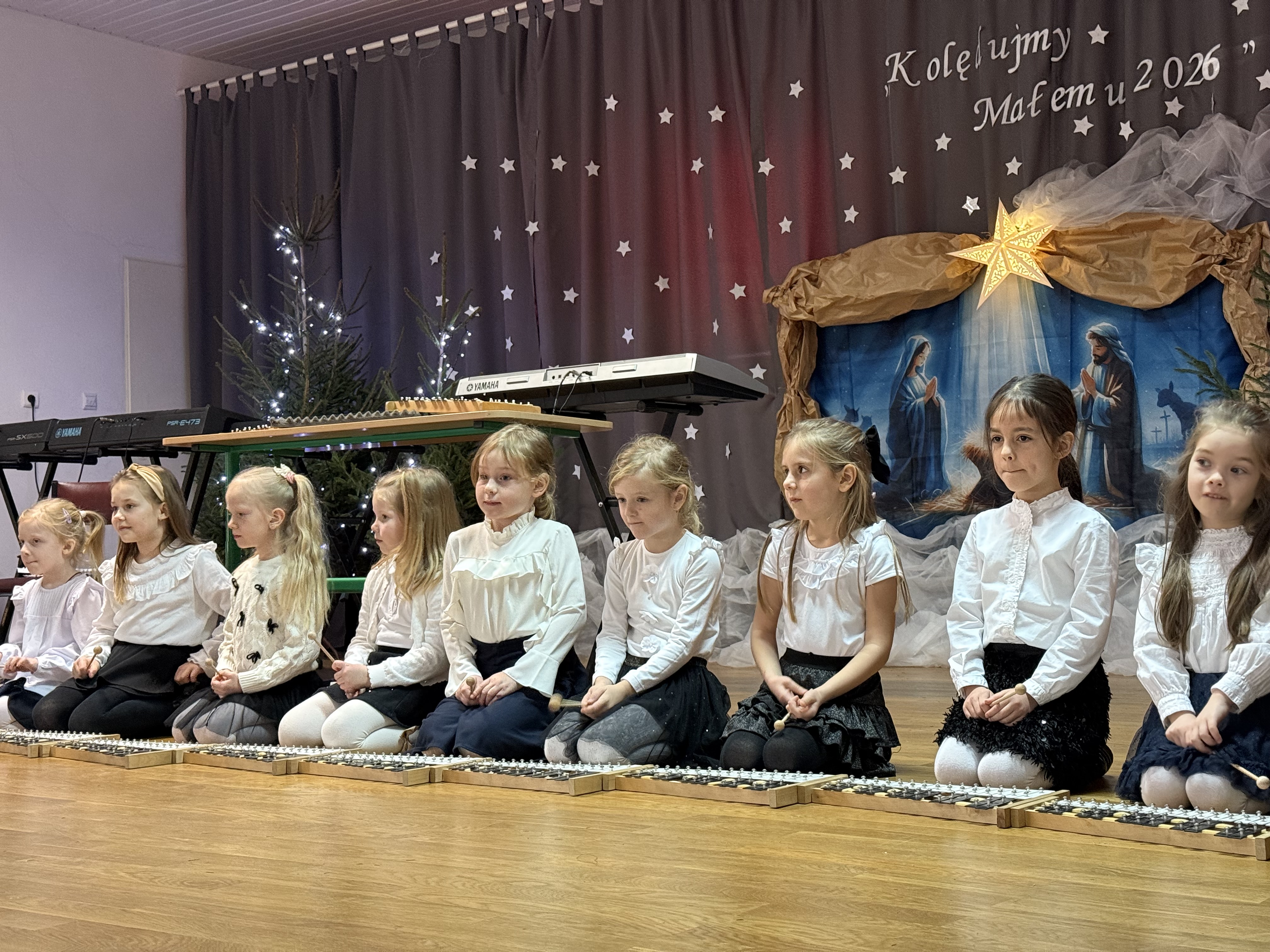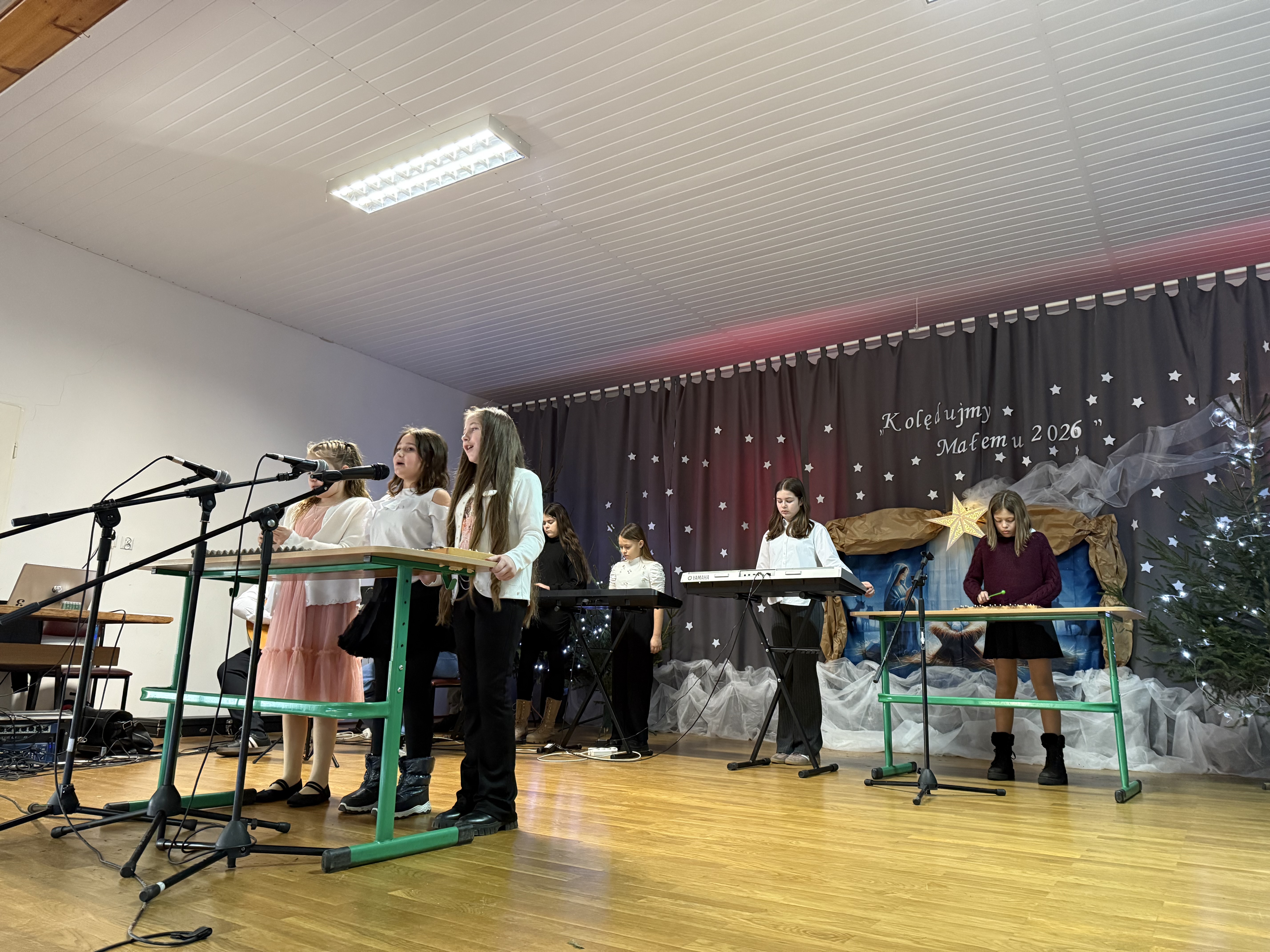 Jako pierwsi na scenie zaprezentowali się najmłodsi uczestnicy. Przedszkolacy swoją naturalną radością, szczerością i dziecięcym entuzjazmem szybko zdobyli sympatię publiczności. Następnie wystąpiły starsze klasy, prezentując dopracowane aranżacje oraz umiejętności wokalne i instrumentalne, będące efektem wielu tygodni prób i przygotowań. Na scenie zaprezentowali się również seniorzy, którzy wykonali piękną kolędę „Józefie, stajenki nie szukaj”.