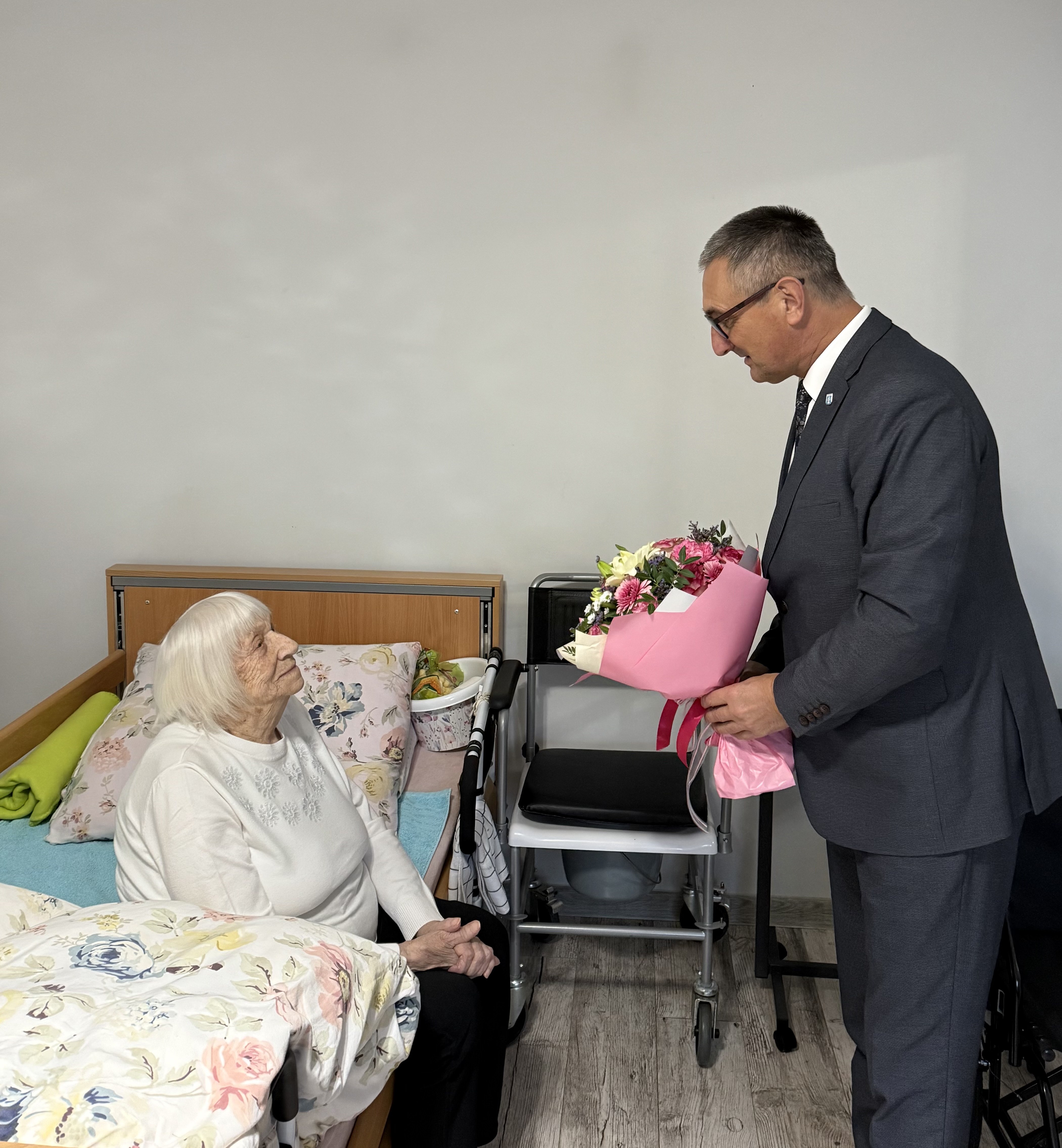 Z tej okazji w czwartek, 15 stycznia, Jubilatkę odwiedził wójt gminy Przemęt Janusz Frąckowiak. Tradycyjnie przybył z bukietem kwiatów, życzeniami oraz upominkiem. Wizyta przebiegała w ciepłej, rodzinnej atmosferze i była okazją do rozmów o bogatym życiu Pani Jadwigi, jej doświadczeniach oraz codziennych radościach.