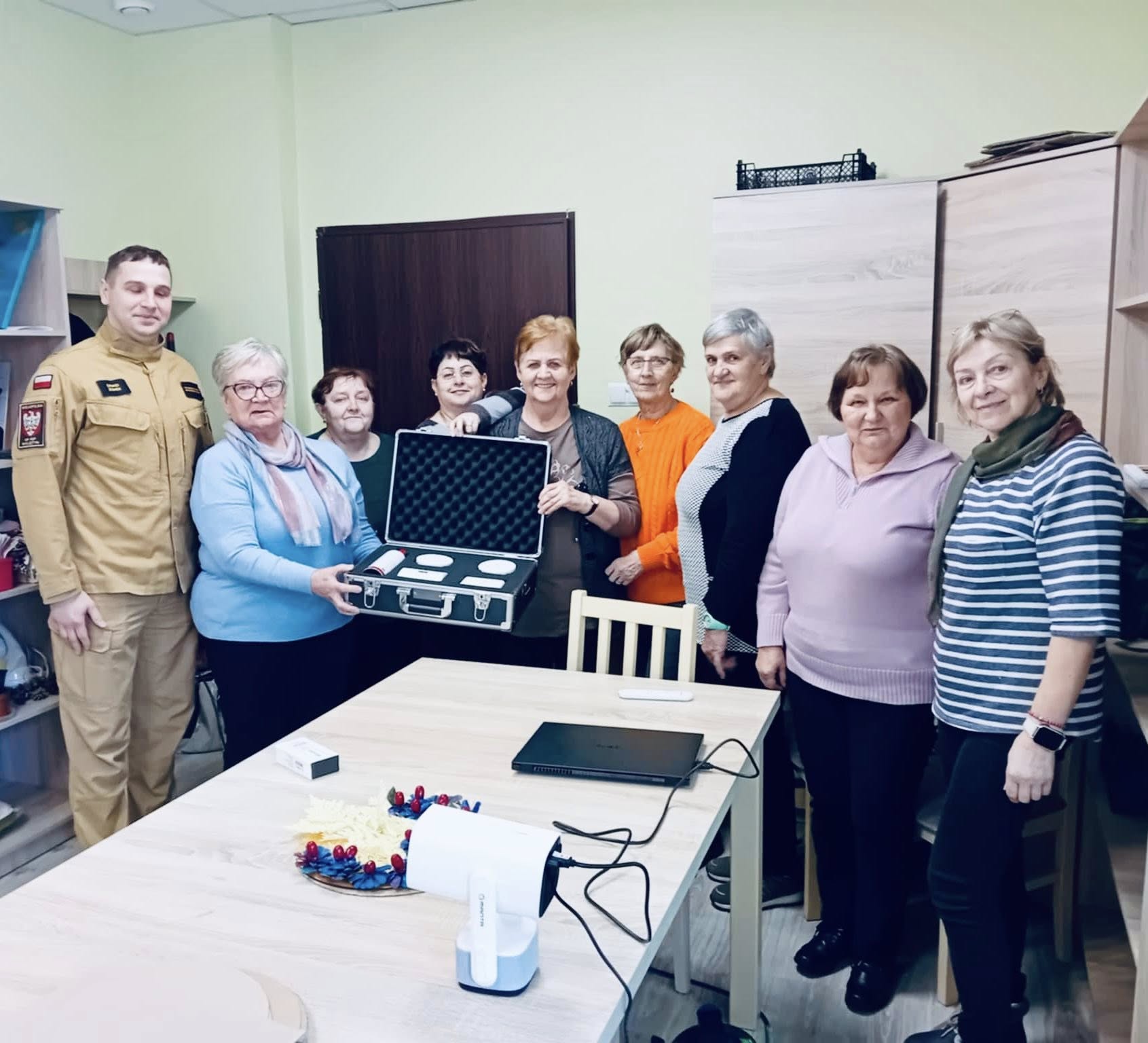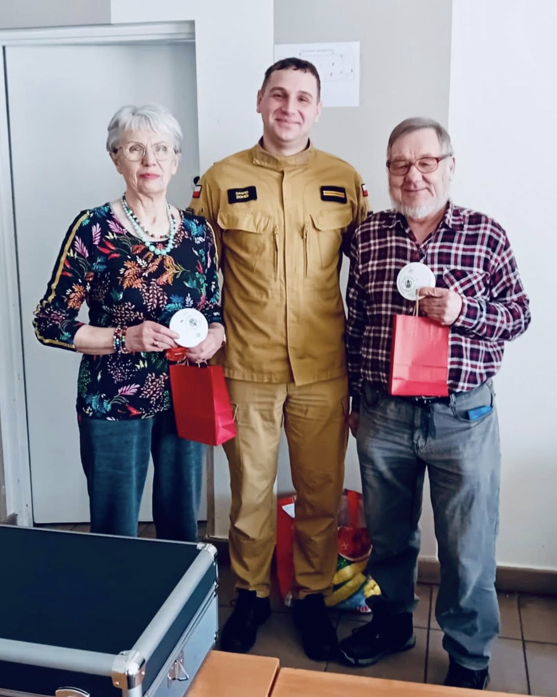 Strażacy przedstawili zasady bezpiecznego postępowania w codziennych sytuacjach, omówili najczęstsze przyczyny pożarów w domach oraz zaprezentowali działanie i sposób obsługi czujek. Uczestnicy mieli okazję z bliska przyjrzeć się urządzeniom, poznać ich zastosowanie oraz dowiedzieć się, gdzie najlepiej je montować. Nie zabrakło również czasu na pytania – seniorzy chętnie dzielili się swoimi doświadczeniami i wątpliwościami, a prowadzący udzielali szczegółowych odpowiedzi.