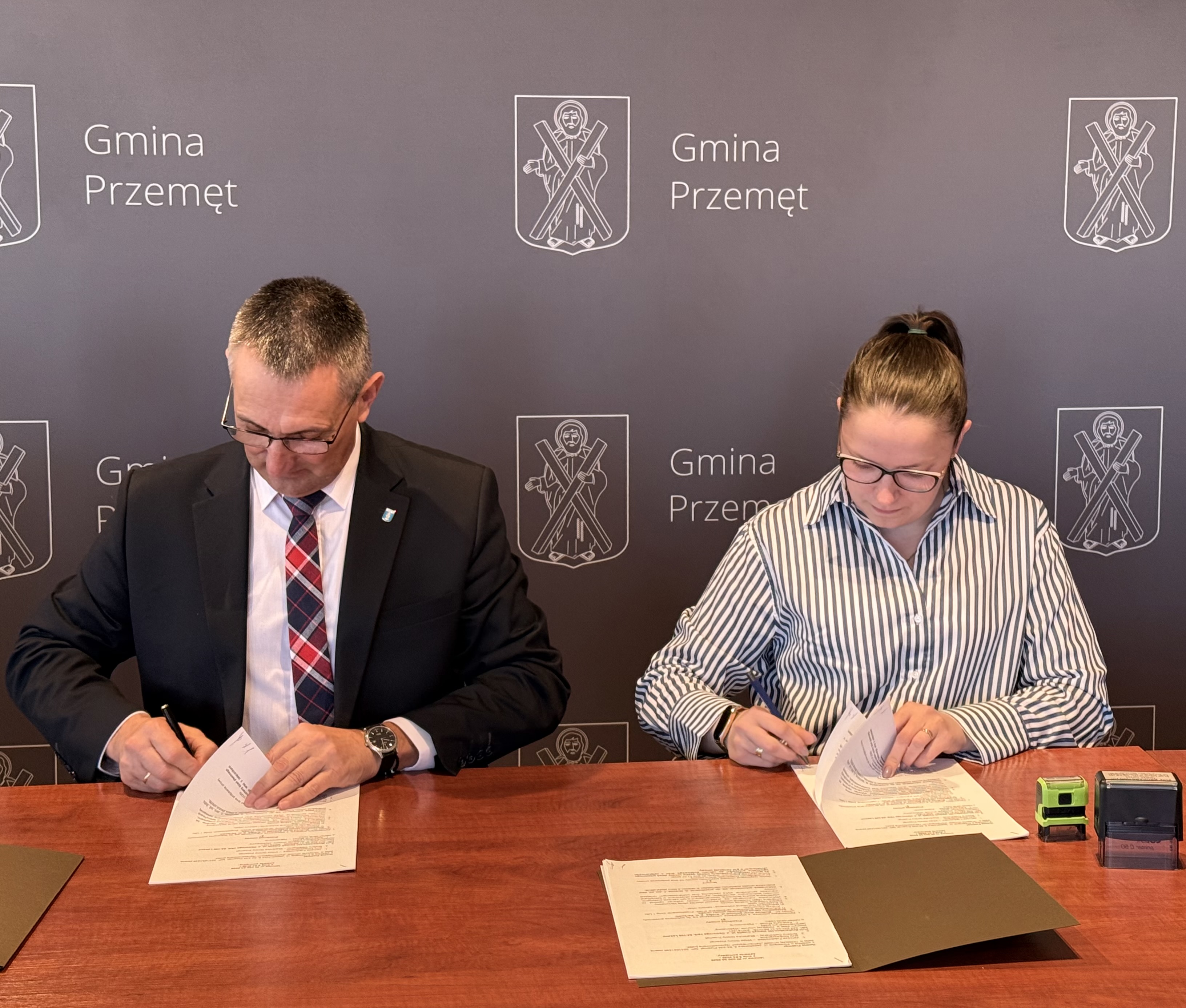 Dwie z zaplanowanych inwestycji zostaną zrealizowane w Perkowie. Pierwsza z nich dotyczy budowy drogi gminnej przy ul. Krętej. Zadanie wykona firma FUH Brukarstwo-HC Henryk Cieplik z Leszna, reprezentowana przez pełnomocnik Katarzynę Mocek. Wartość zawartej umowy wynosi 49 607,13 zł brutto.