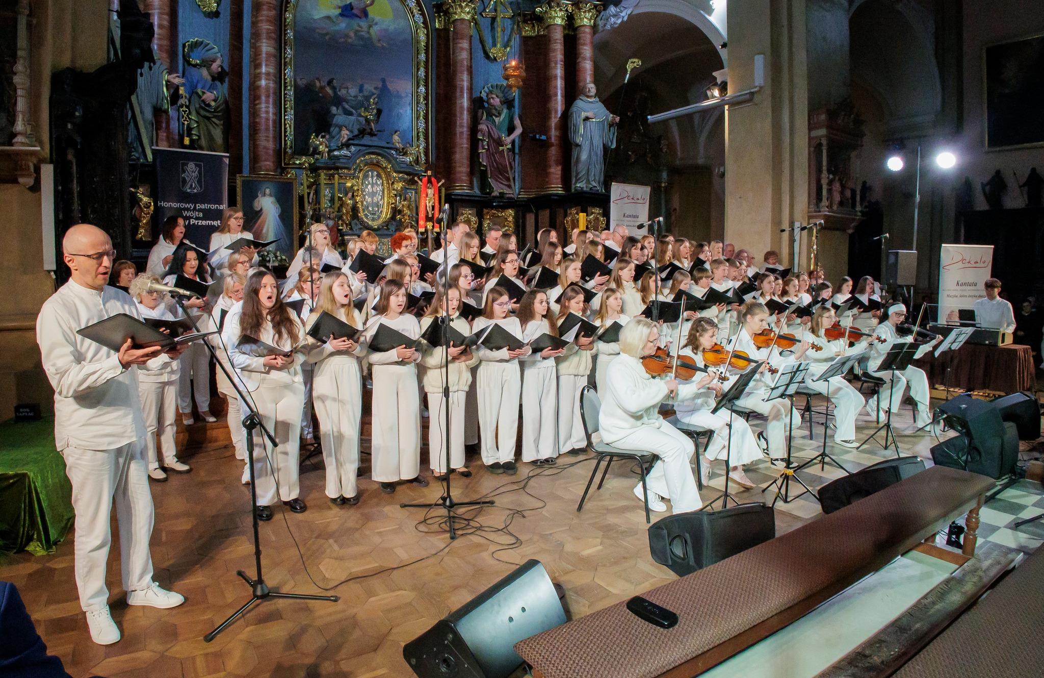 Kantata „Dekalog” to dzieło autorstwa Igora Jankowskiego, który podczas koncertu stanął również za pulpitem dyrygenckim. Utwór, skomponowany na chór, solistę, organy, smyczki i narratorów, stanowi muzyczną interpretację dziesięciu przykazań – uniwersalnych zasad będących fundamentem życia społecznego i duchowego. Wykonanie w przestrzeni świątyni dodatkowo wzmocniło jego przekaz, tworząc atmosferę skupienia i refleksji.
