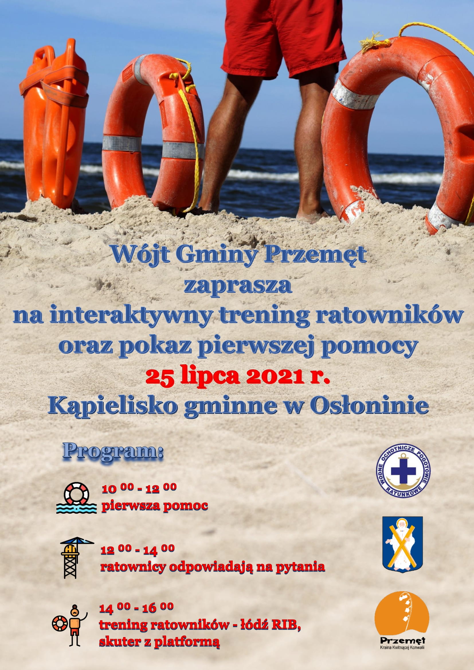 Interaktywny trening ratowników oraz pokaz pierwszej pomocy na kąpielisku gminnym w Osłoninie